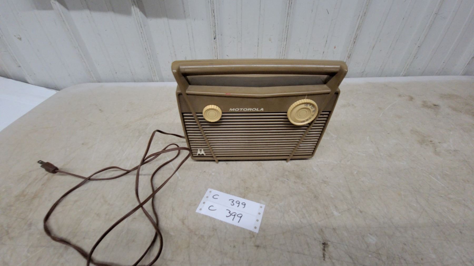 Lot 399 Motorola Vintage Portable Tube Radio with Carrying Handle, Am Band