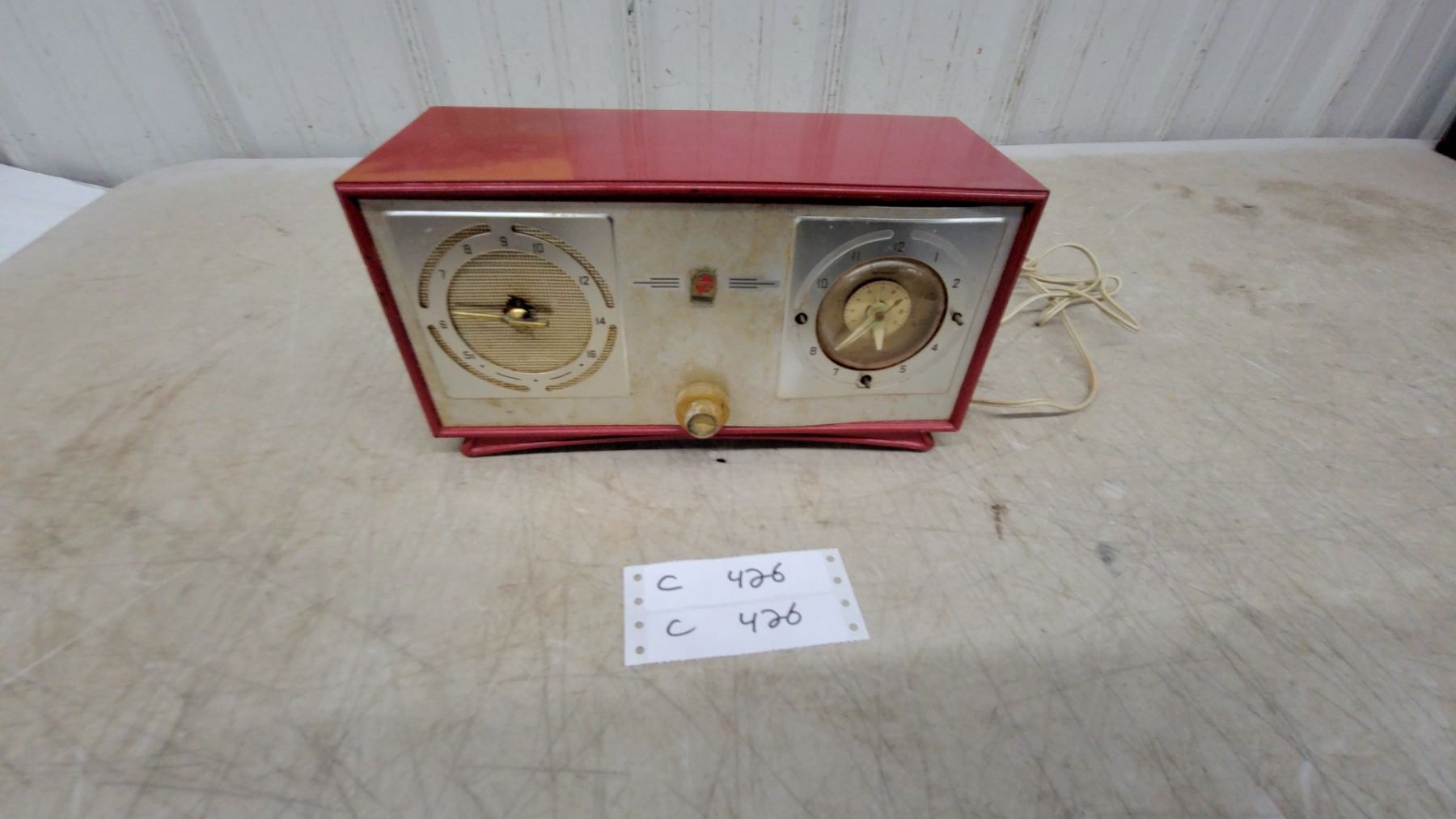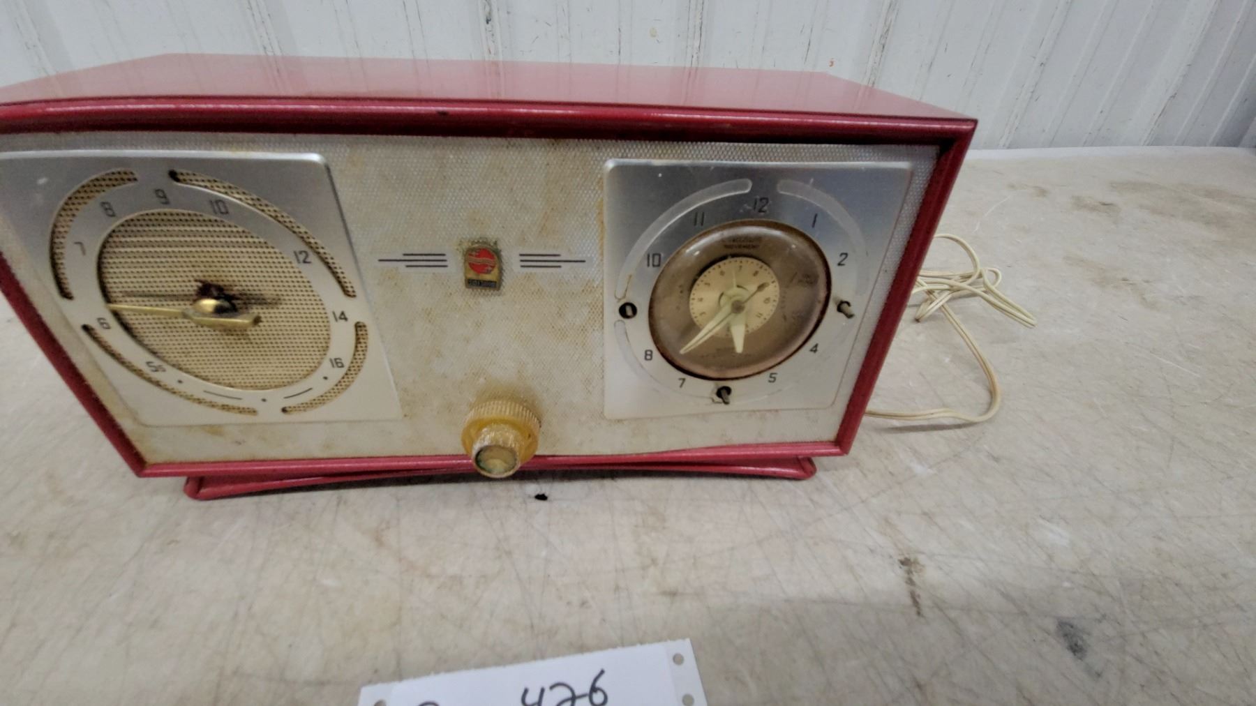 Lot 426 Philips Vintage Clock Radio, Red Bakelight Case, Am Dial, Analog Clock Face, Electric Cord