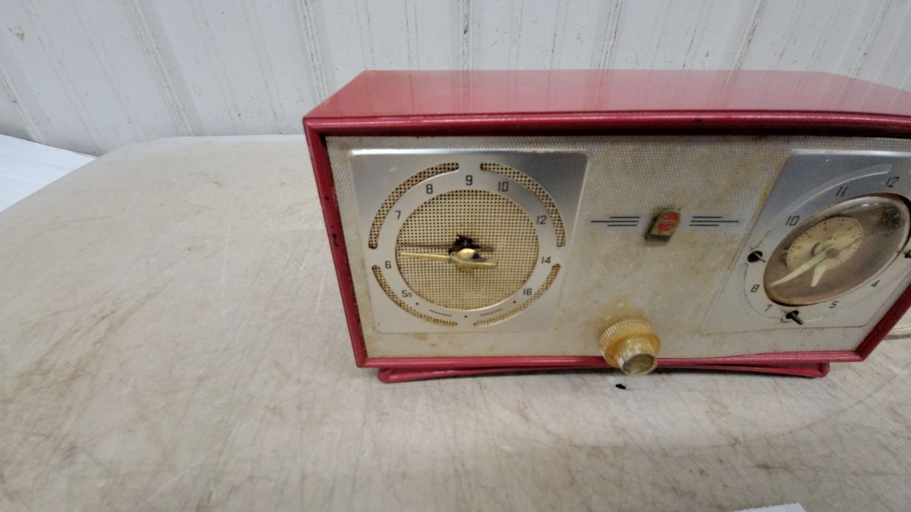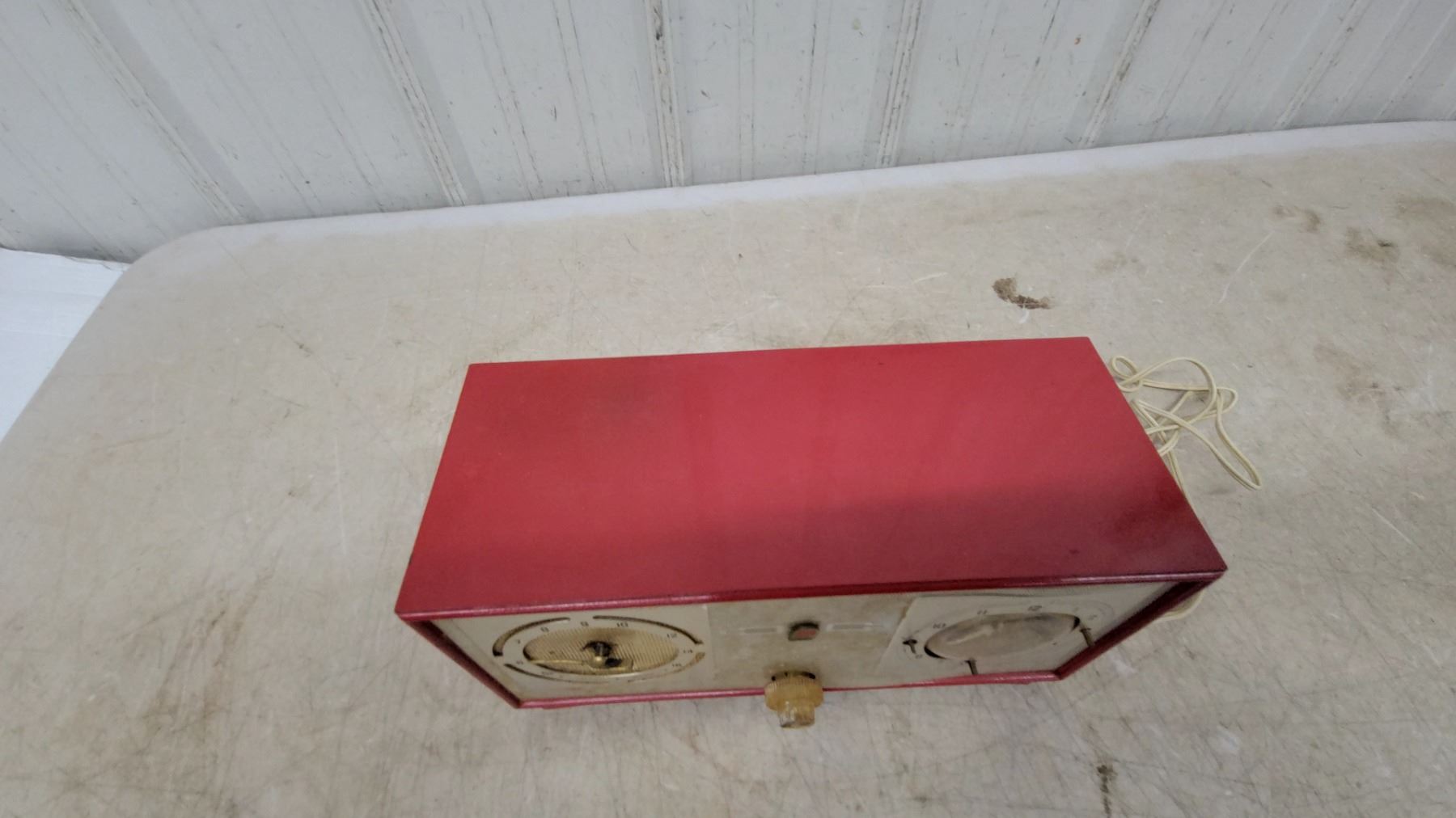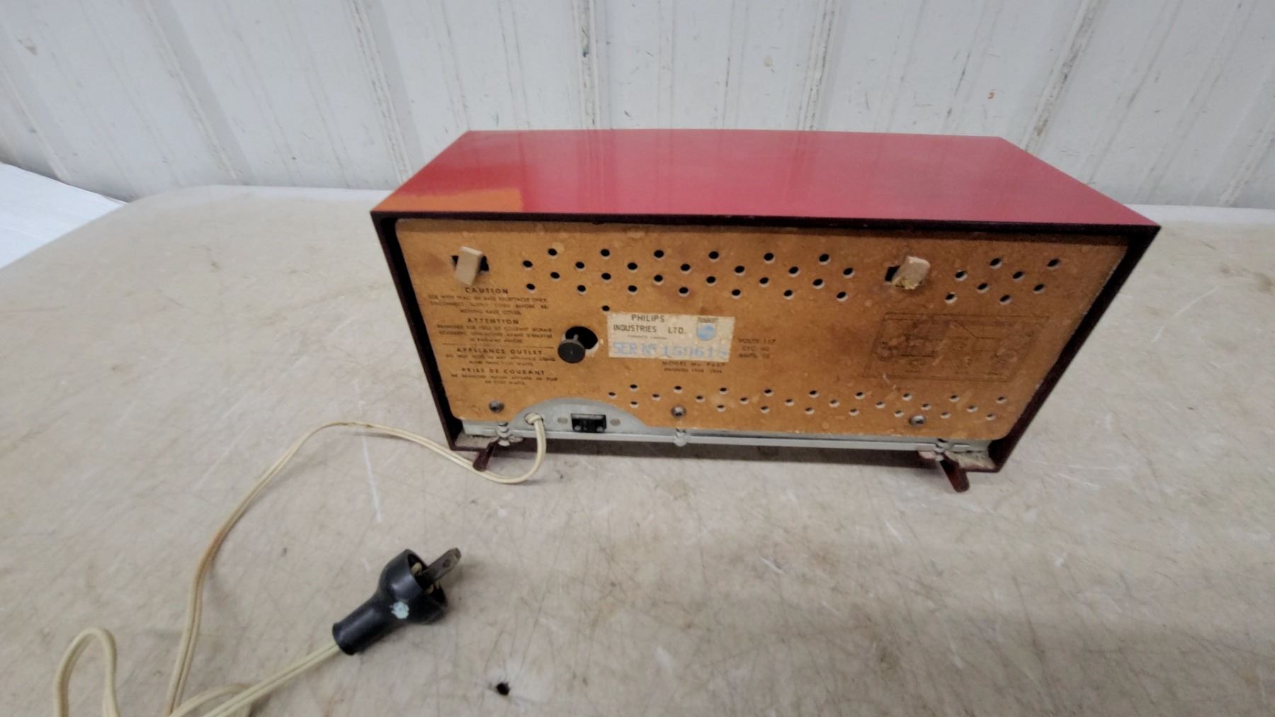 Philips Vintage Clock Radio, Red Bakelight Case, Am Dial, Analog Clock Face, Electric Cord