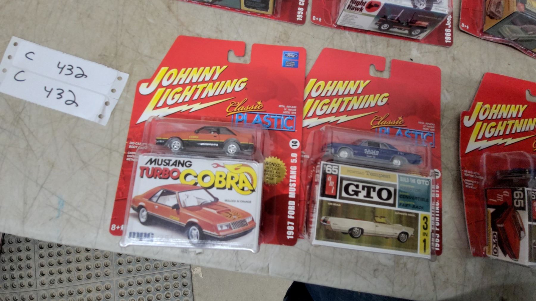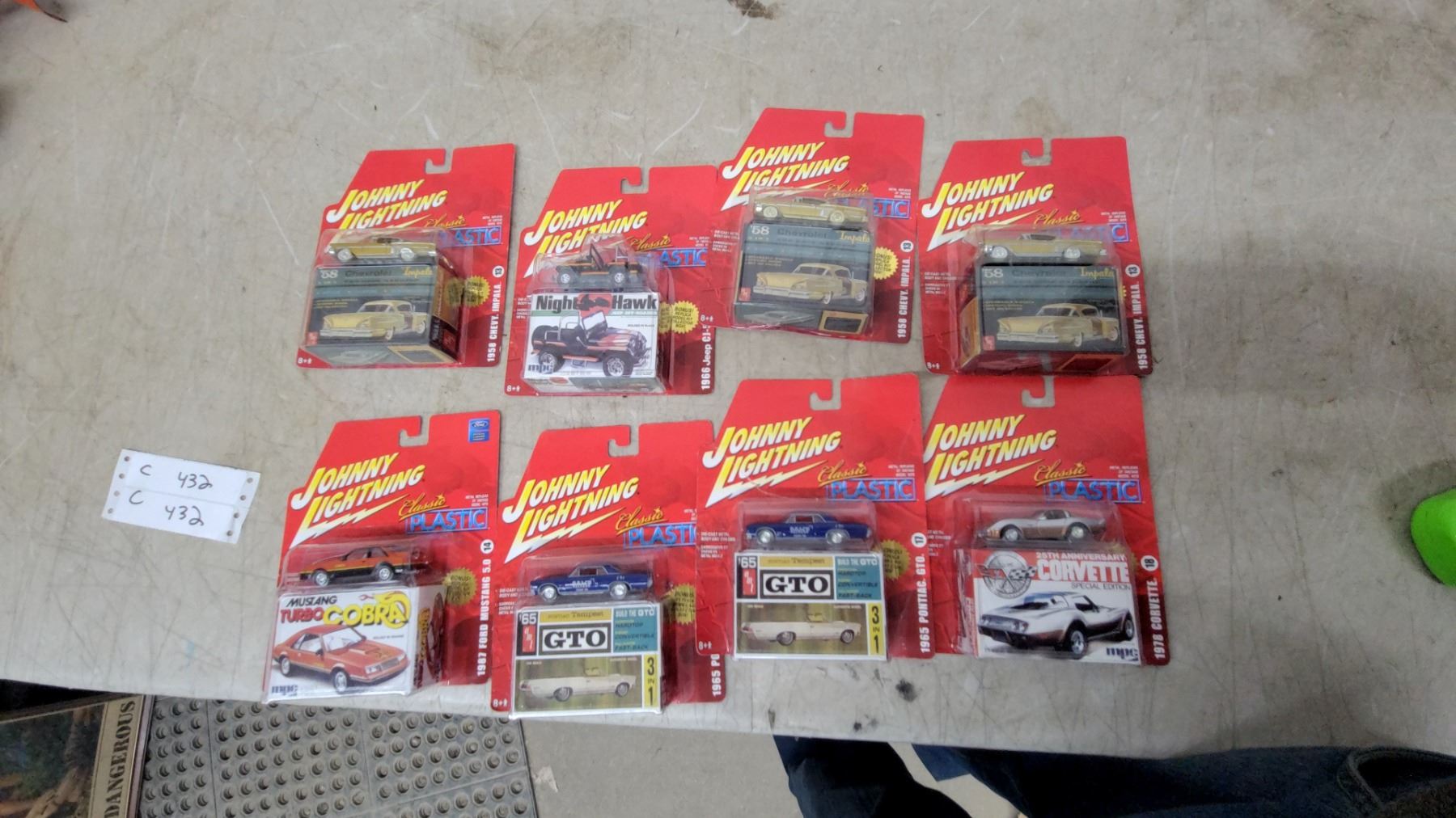 Lot 432 Johnny Lightning Classic Plastic Diecast Cars Lot of 8 - Impala, GTO, Corvette, Mustang, Jeep CJ-5