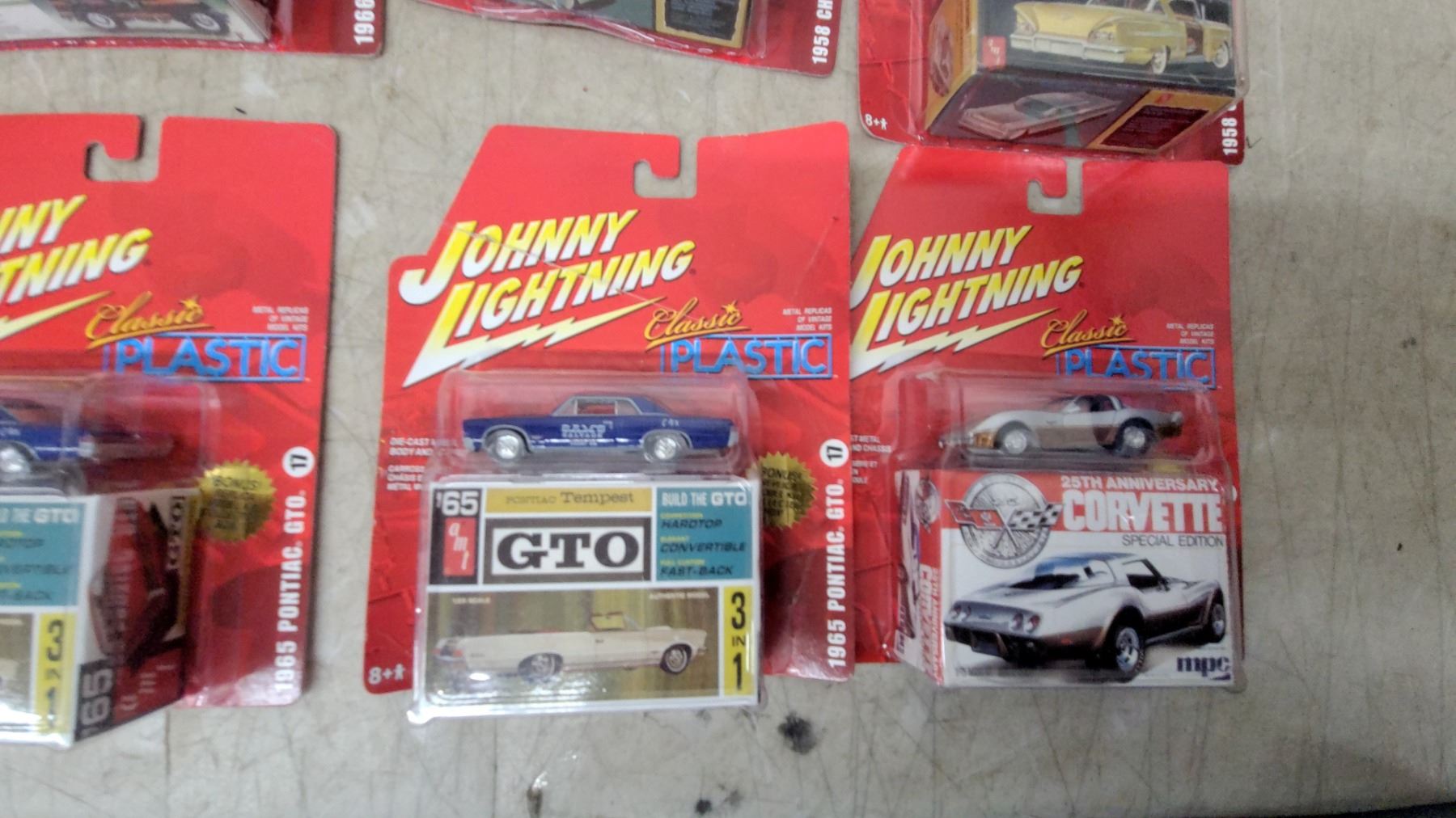 Johnny Lightning Classic Plastic Diecast Cars Lot of 8 - Impala, GTO, Corvette, Mustang, Jeep CJ-5