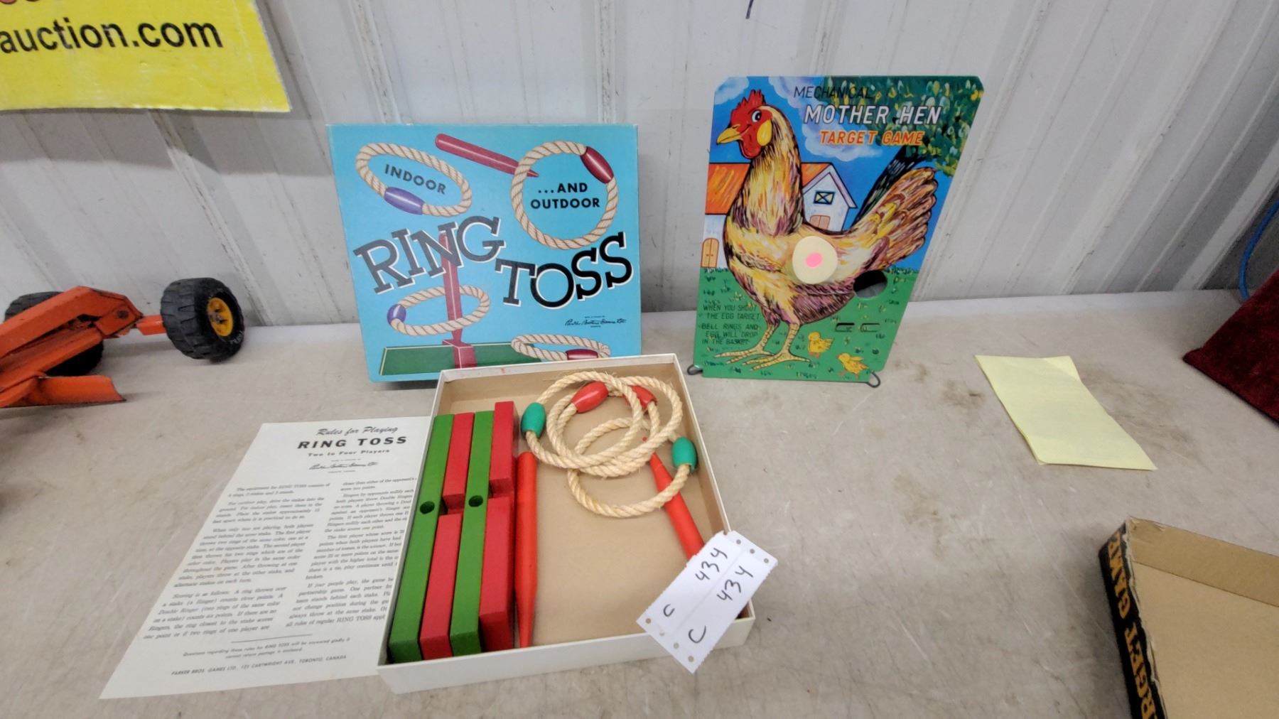 Lot 434 Ring Toss Indoor/Outdoor Game & Mechanical Mother Hen Target Game - Vintage Lot