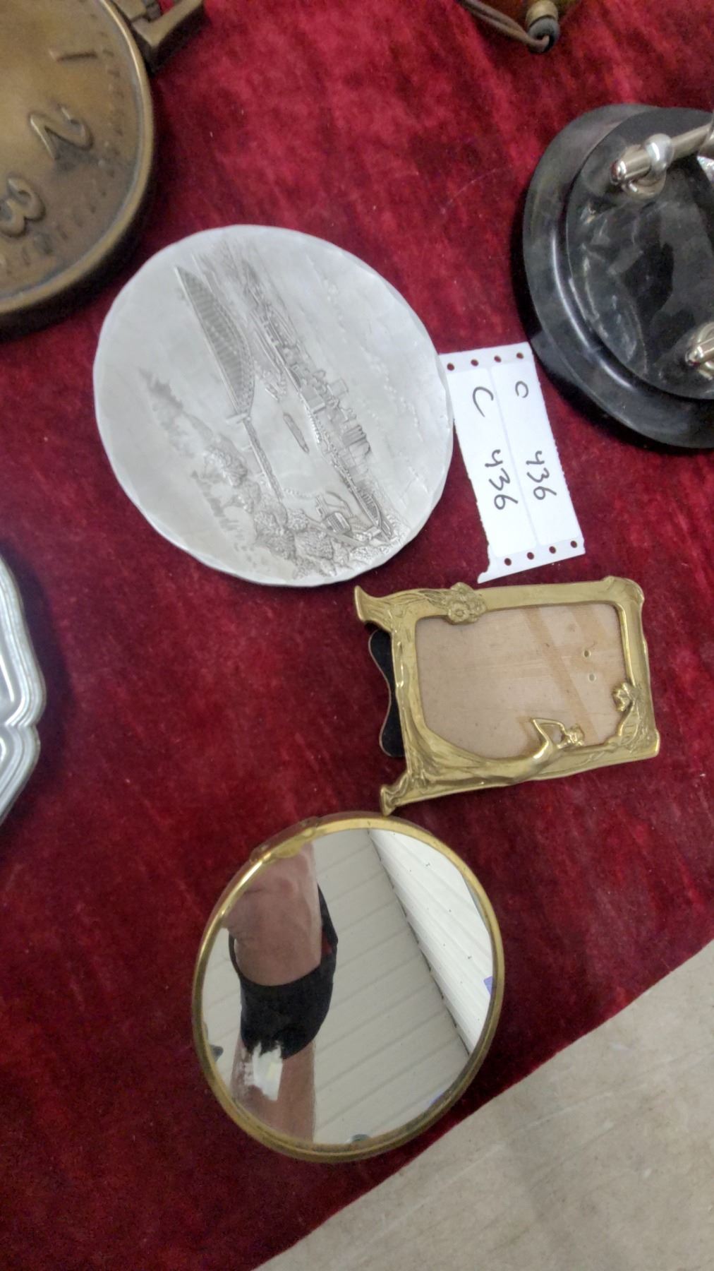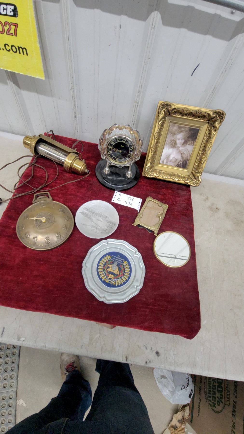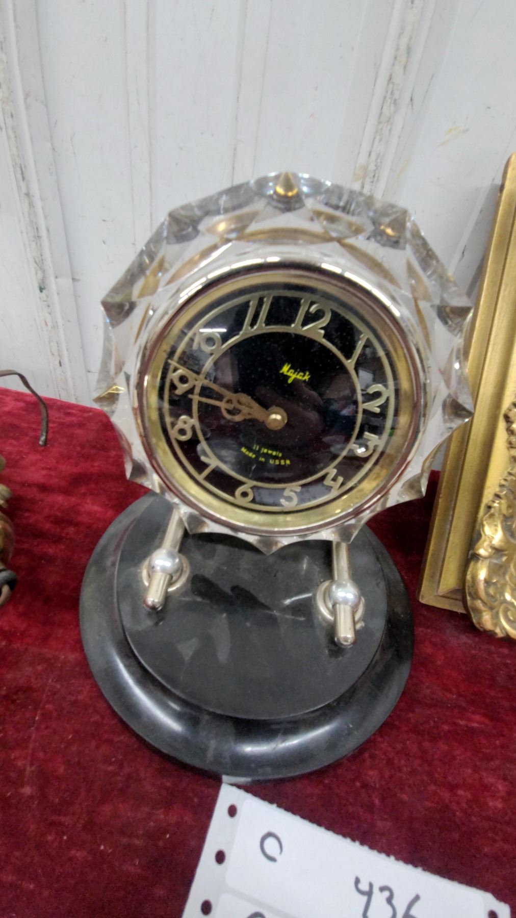 Lot 436 Majak 11-jewel USSR Crystal Clock, Brass Wall Clock, R22R Military Plate, Frames & Mirror Lot