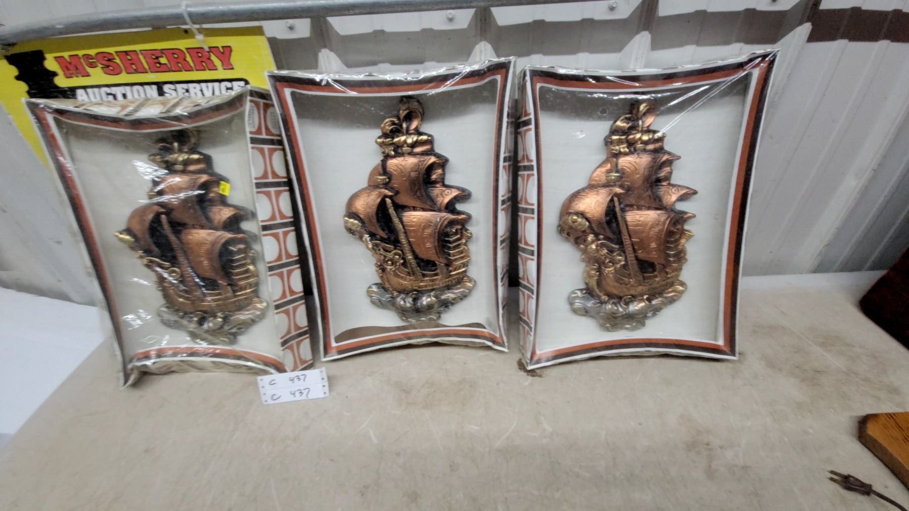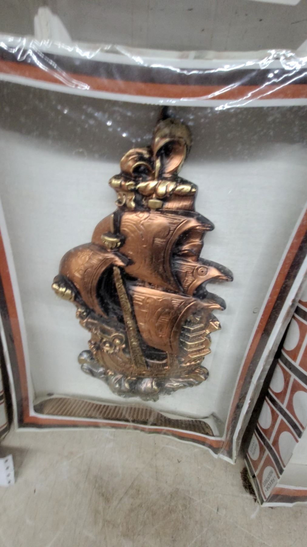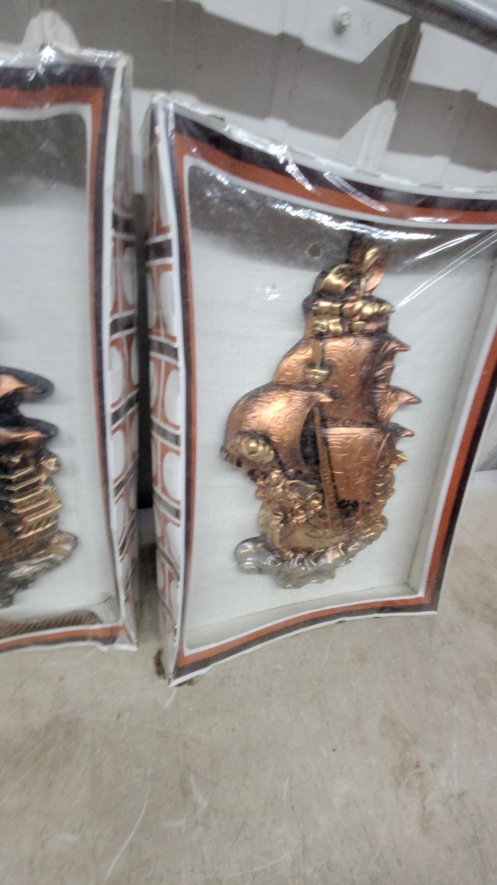 Lot 437 Favor Industries Copper-Tone Sailing Ship Wall Plaques, Set of 3, Winnipeg Canadan.O.S. in Package