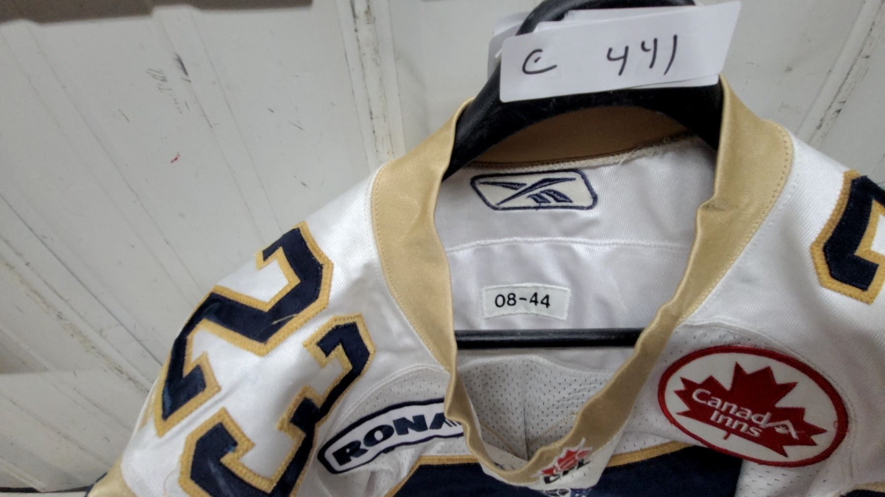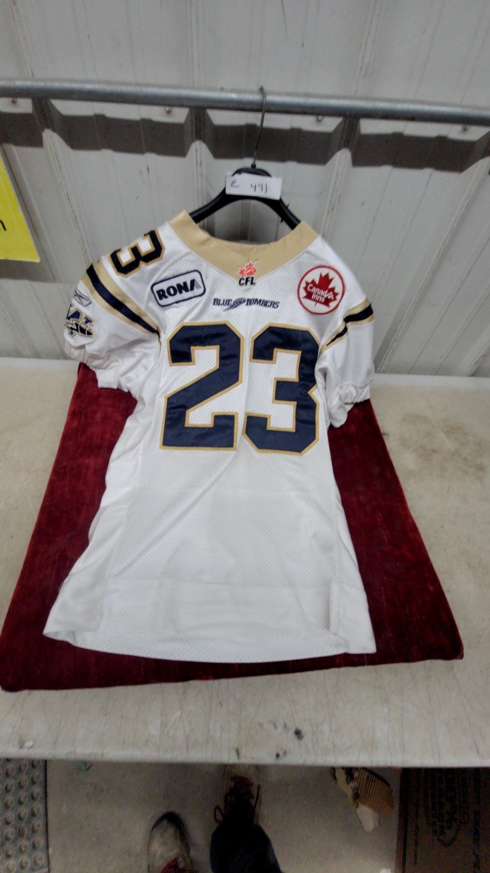 Lot 441 Reebok CFL Winnipeg Blue Bombers #23 Hefney Game Jersey, Size 44, 2008 Season