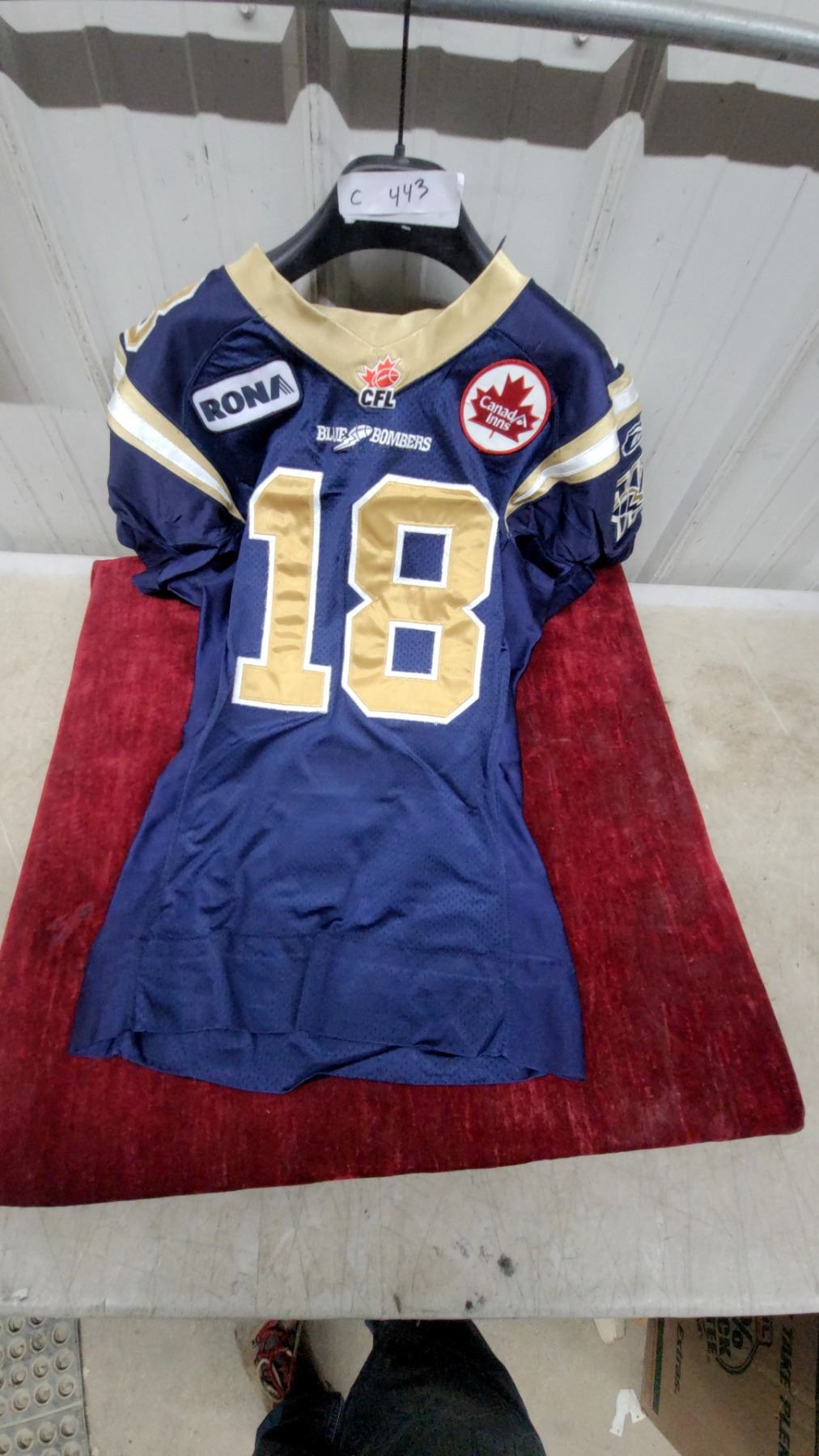 Lot 443 Winnipeg Blue Bombers CFL #18 Reebok Football Jersey Size 44 2008 Game Worn