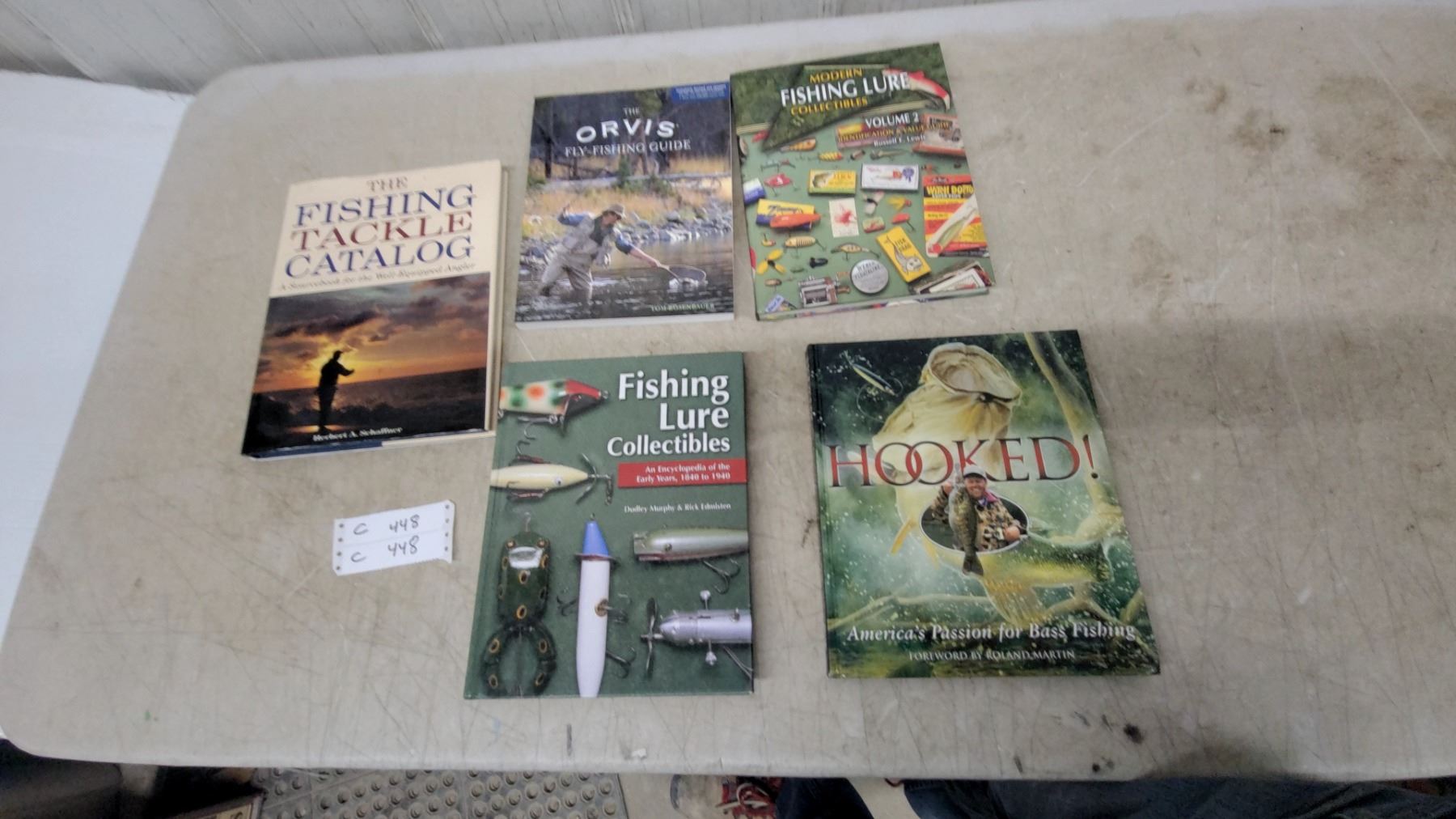 Lot 448 Collection of 5 Fishing Books: Tackle Catalog, Lure Collectibles, Orvis Fly-Fishing Guide, Hooked!