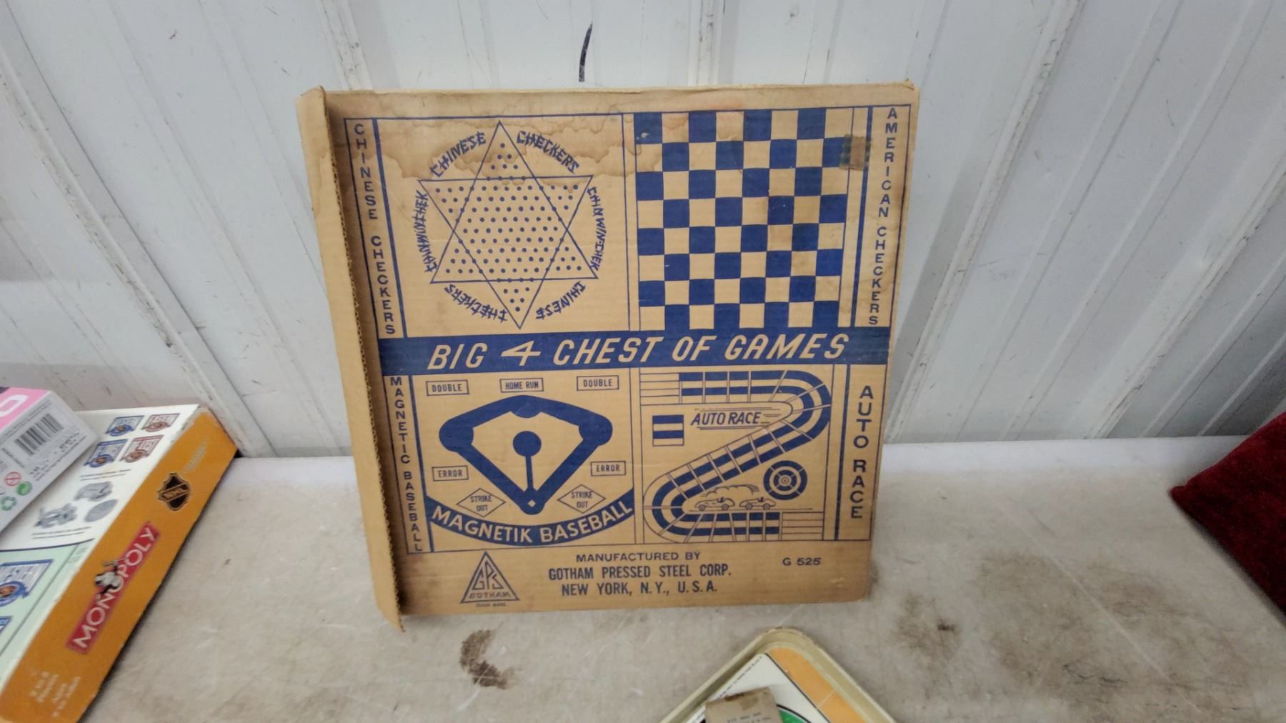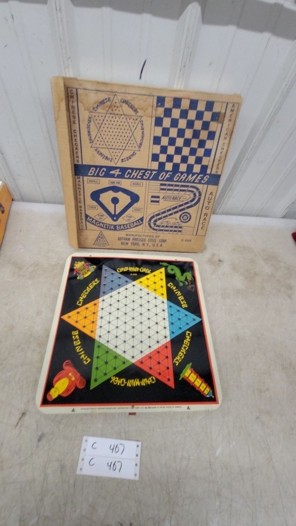 Lot 467 Gotham Pressed Steel Big 4 Chest of Games G-525 Chinese Checkers Baseball Auto Race Checkers