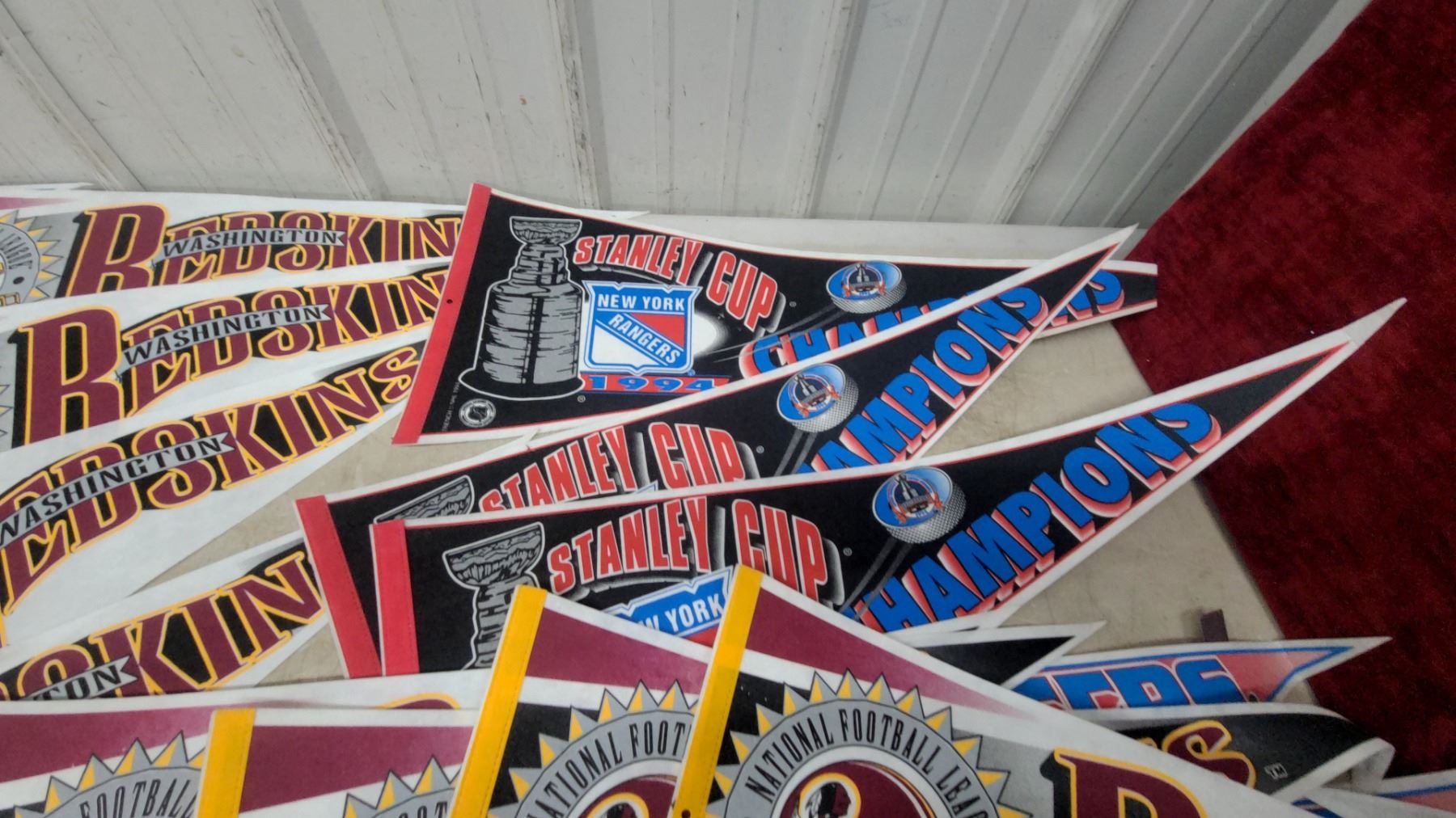 Lot of Sports Pennants - Washington Redskins NFL & Ny Rangers 1994 Stanley Cup Champions 21x