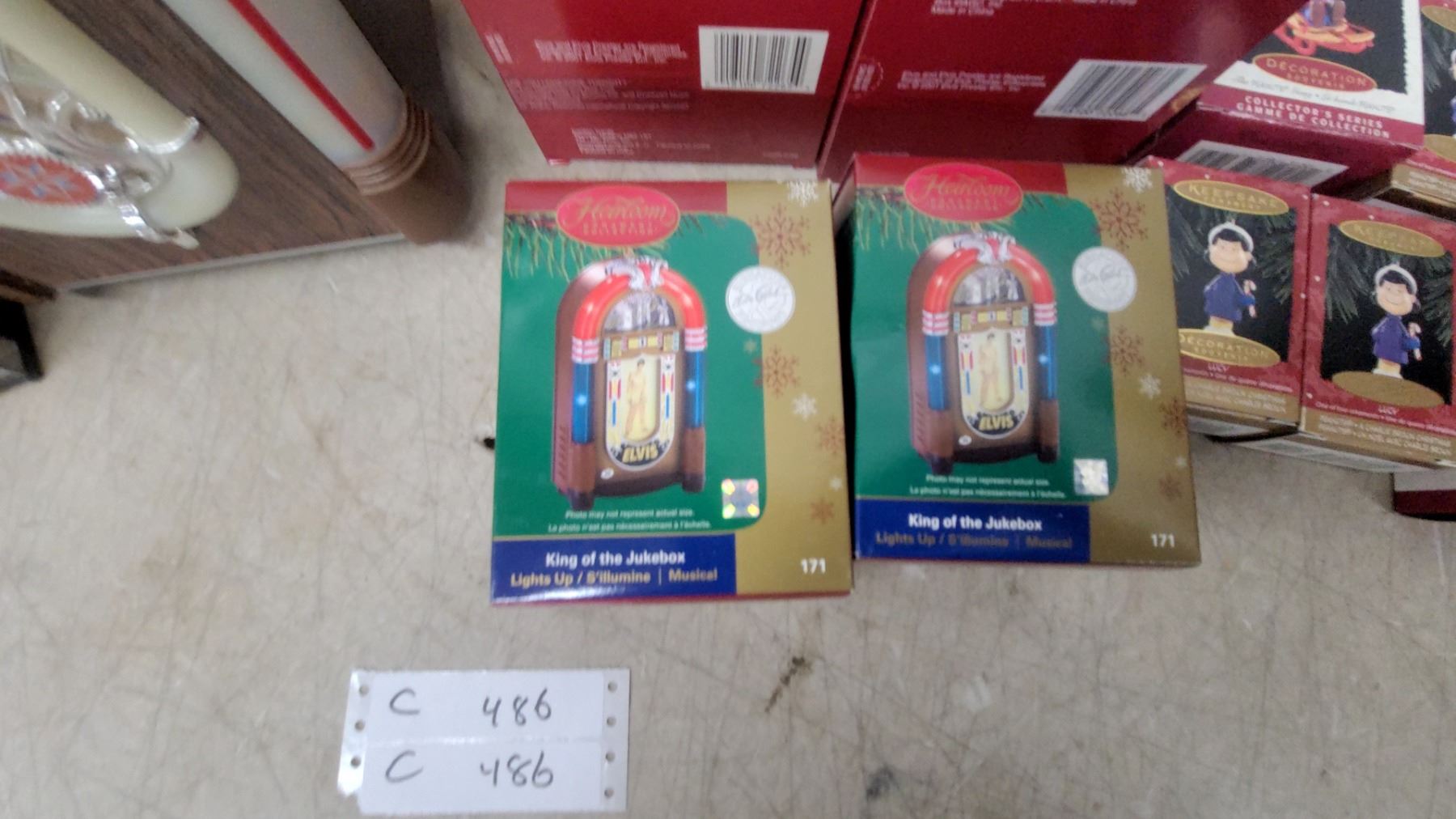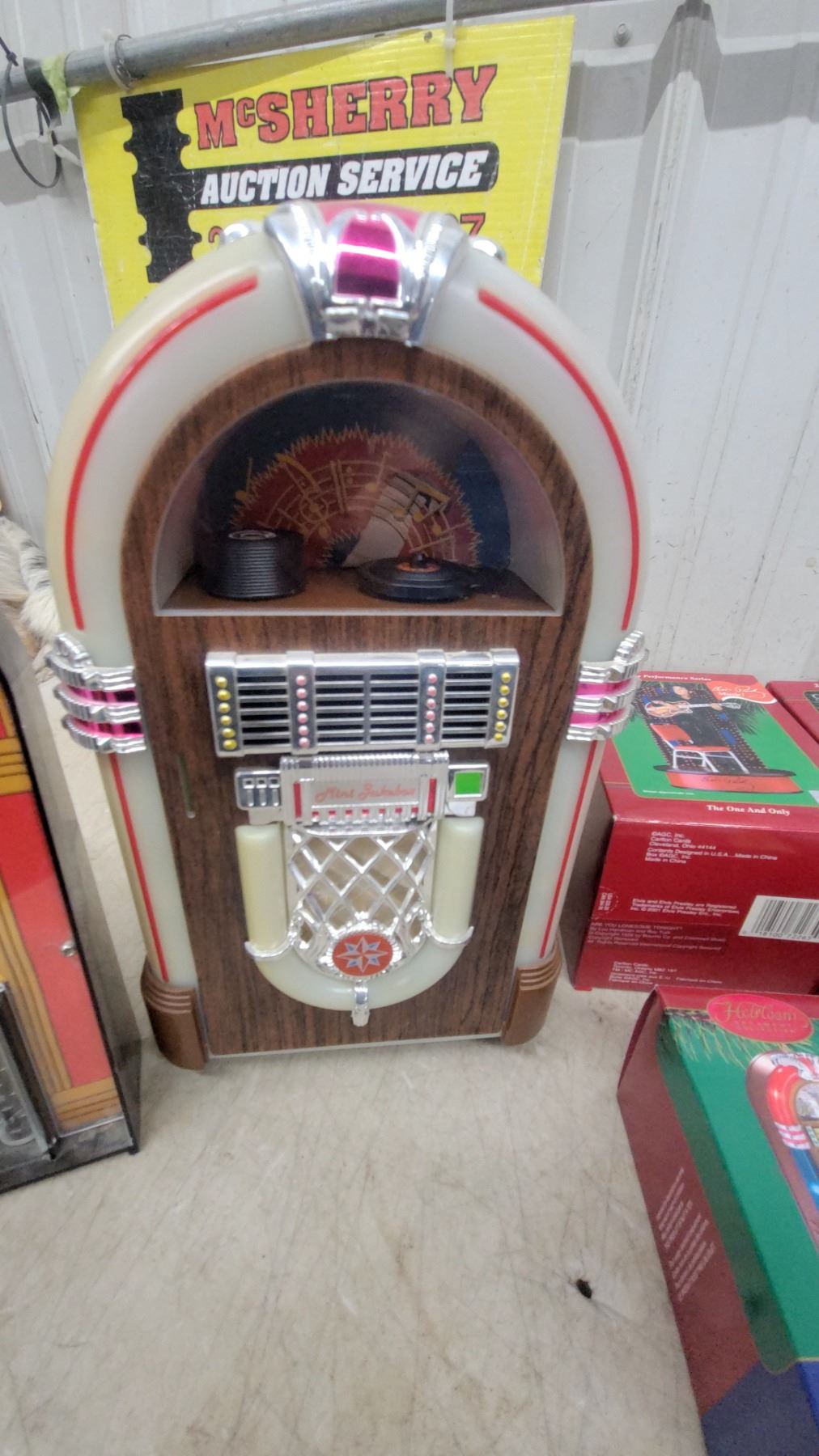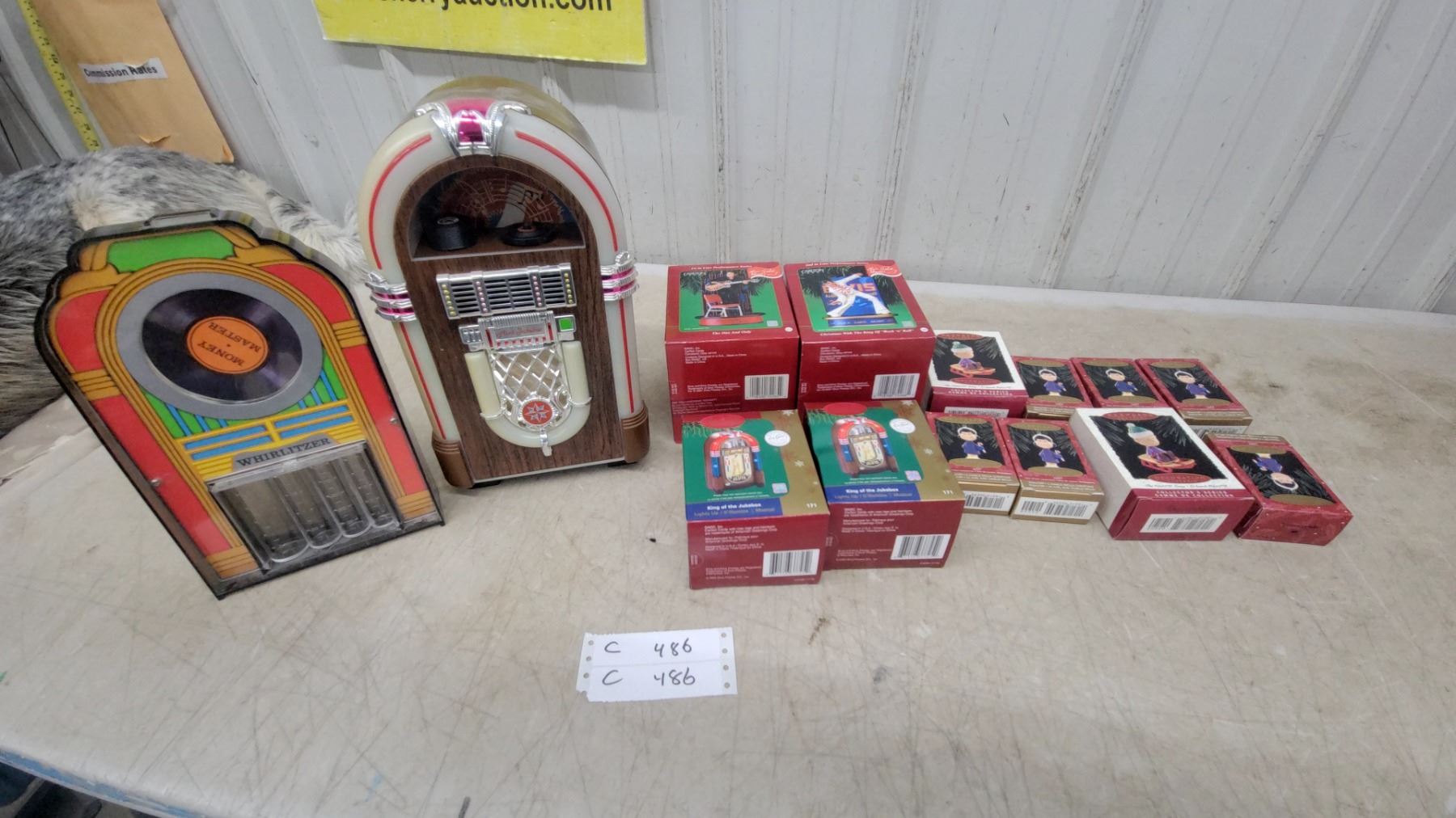 Lot 486 Jukebox Collectibles Lot: 2 Decorative Jukeboxes, Elvis Presley Carlton Ornaments & King of Jukebox