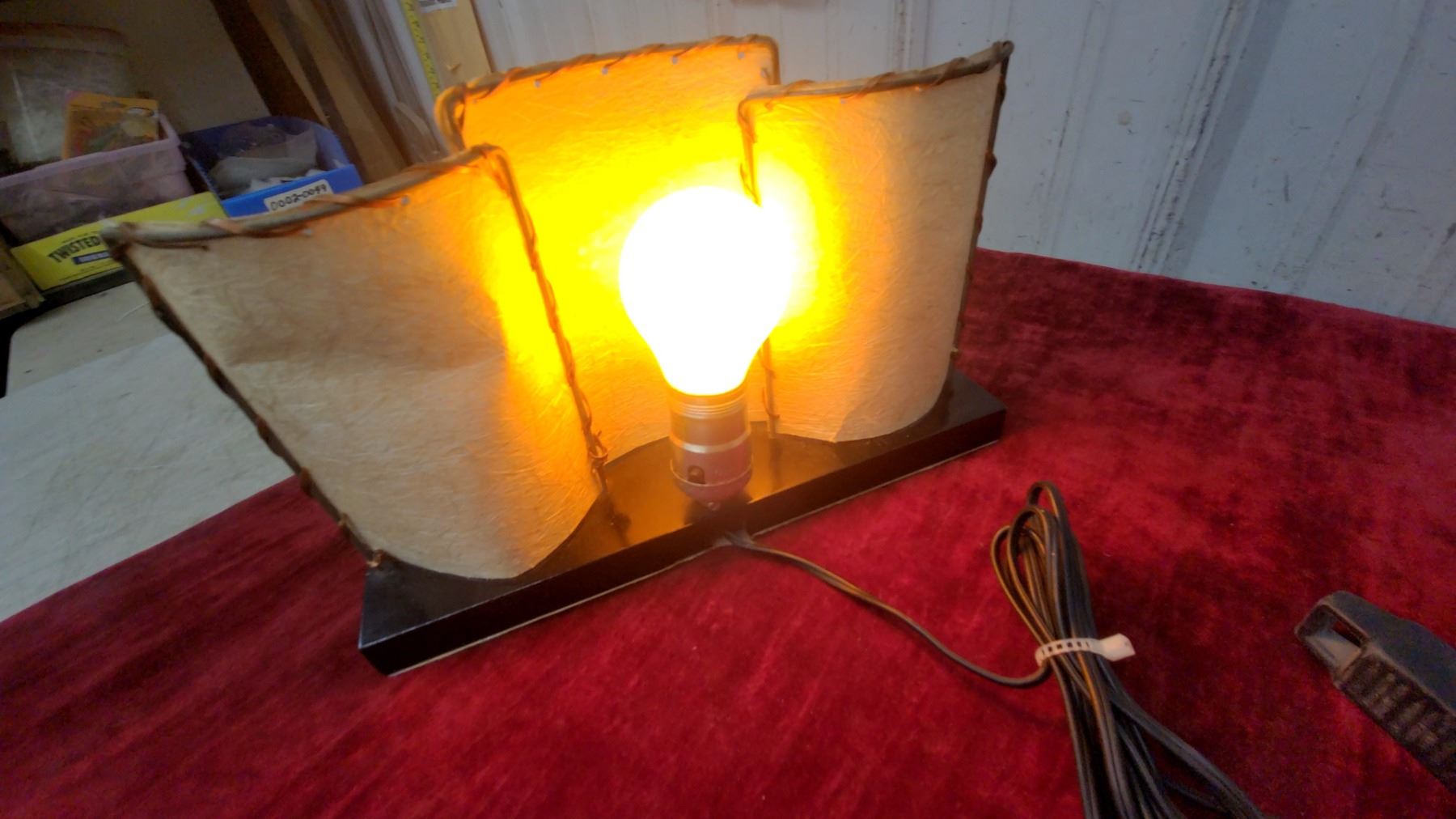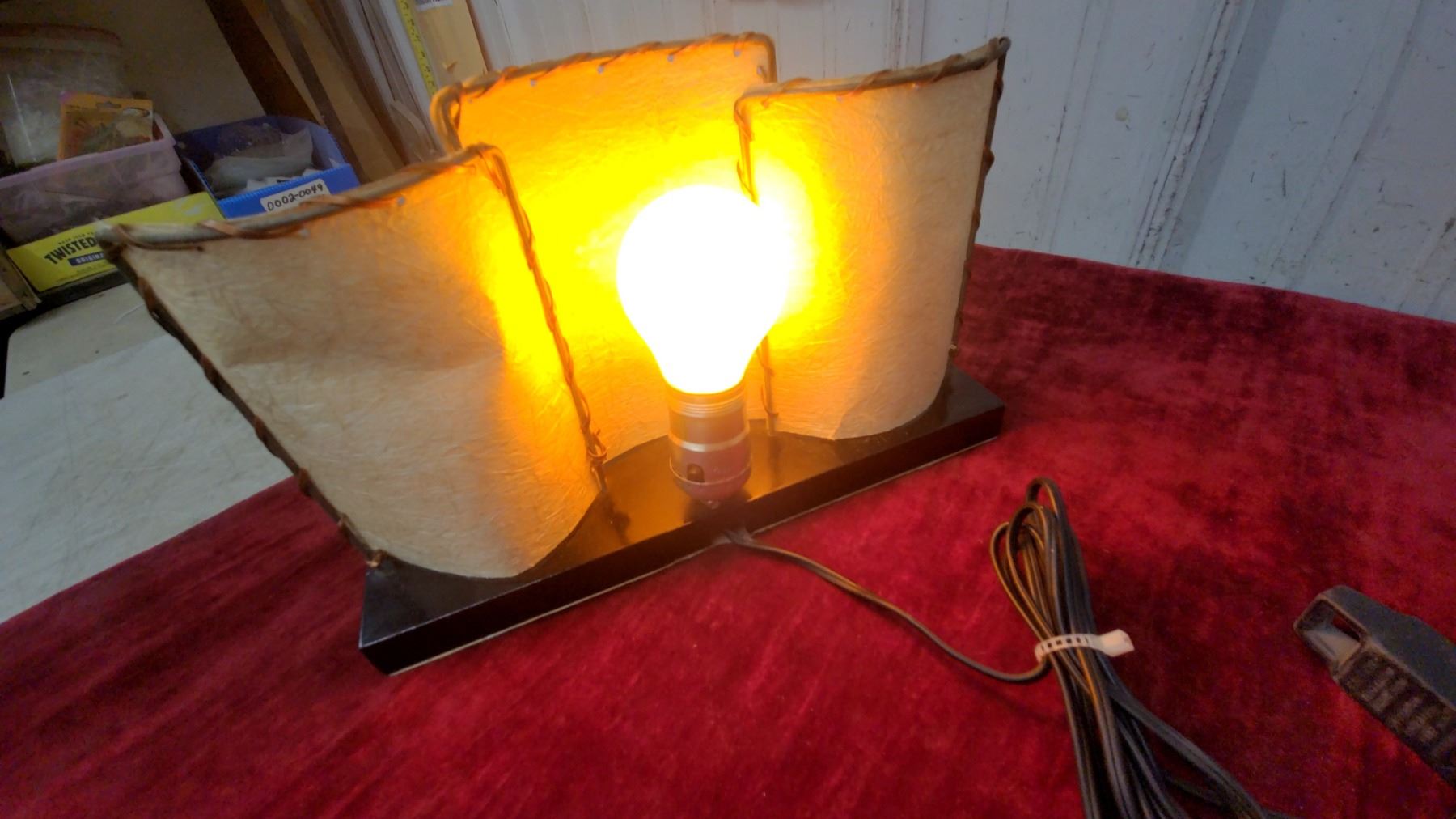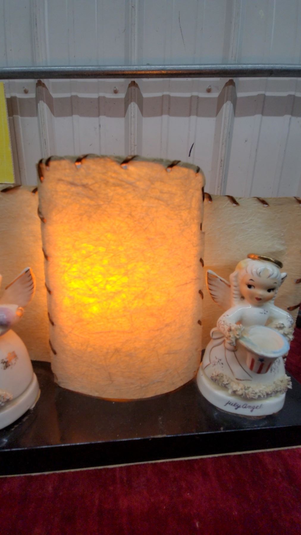 Vintage Table Lamp with Fiberglass Shade and Two Porcelain Angel Figurines (November & July Angels)
