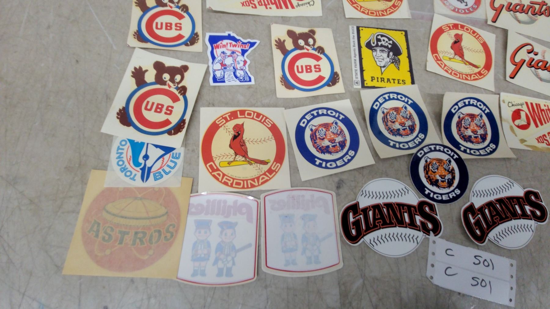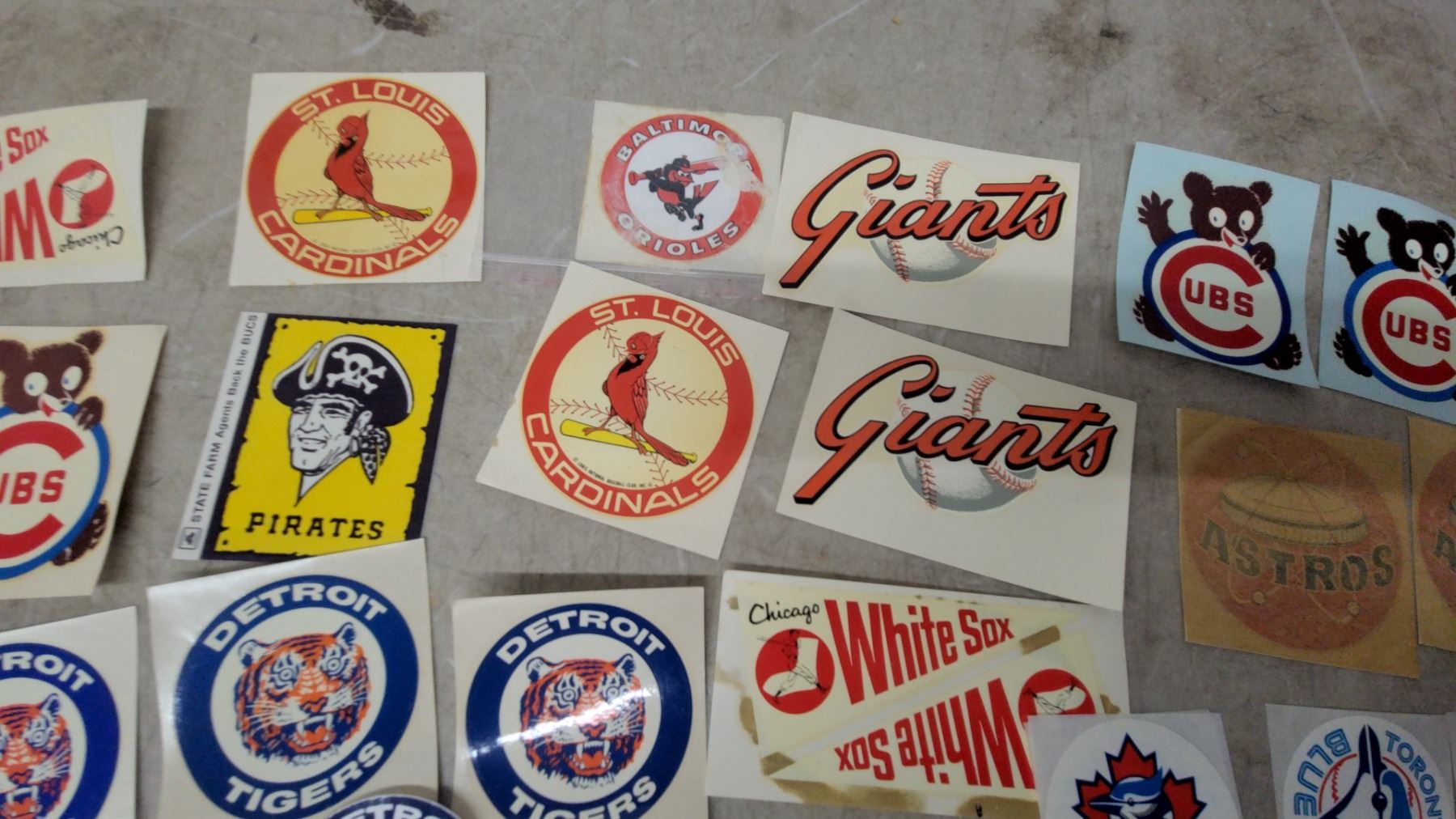Lot 501B Vintage MLB Baseball Team Logo Decals/Stickers Collection - Various Teams, Approx. 40 and More