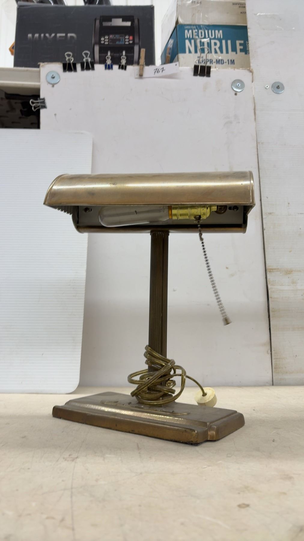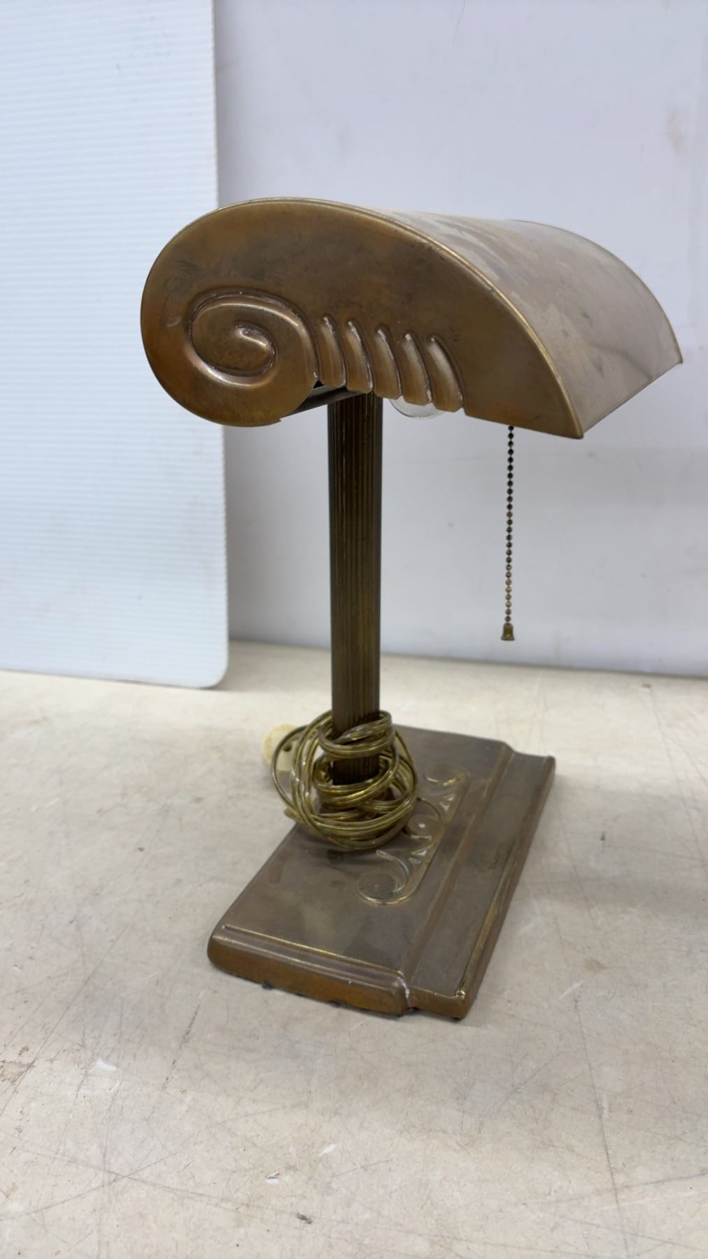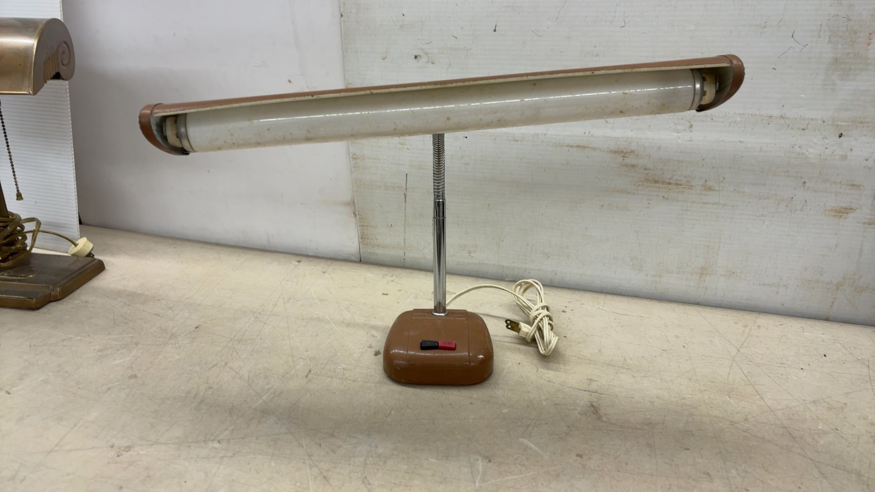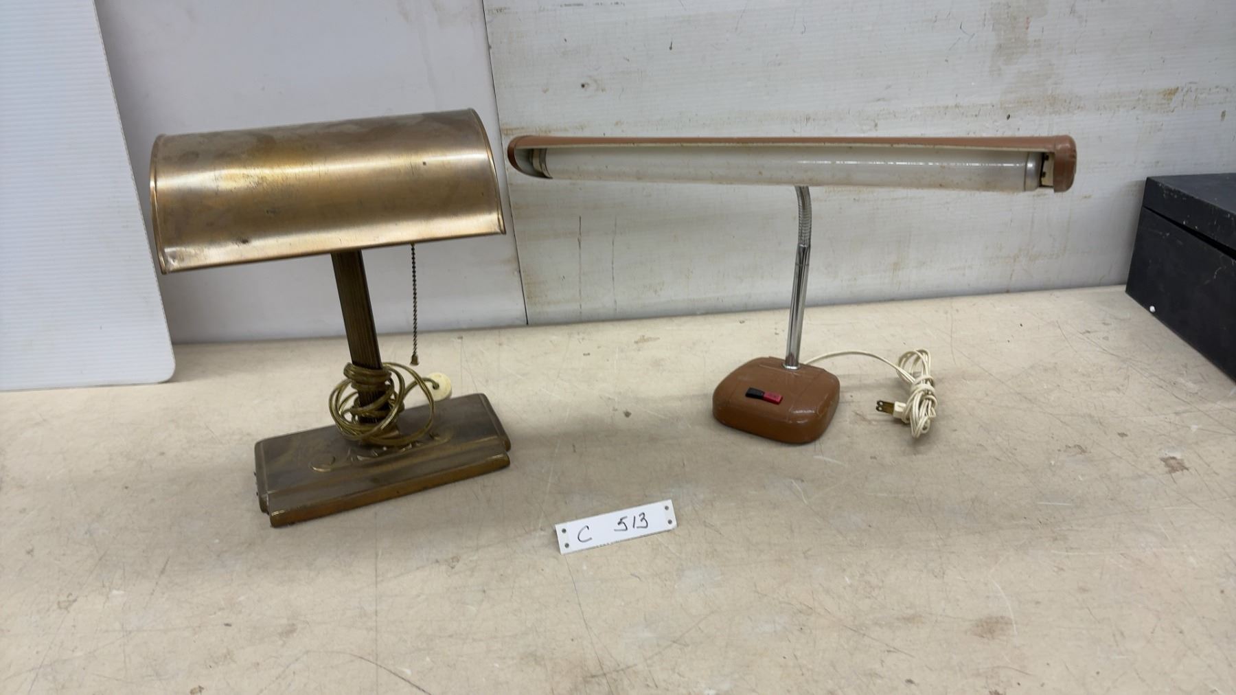 Lot 513 Vintage Art Deco Brass Banker's Desk Lamp with Pull Chain & Fluorescent Desk Lamp