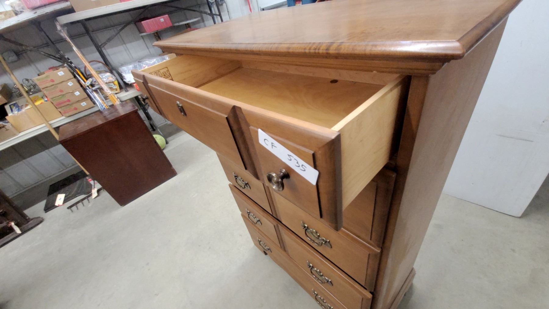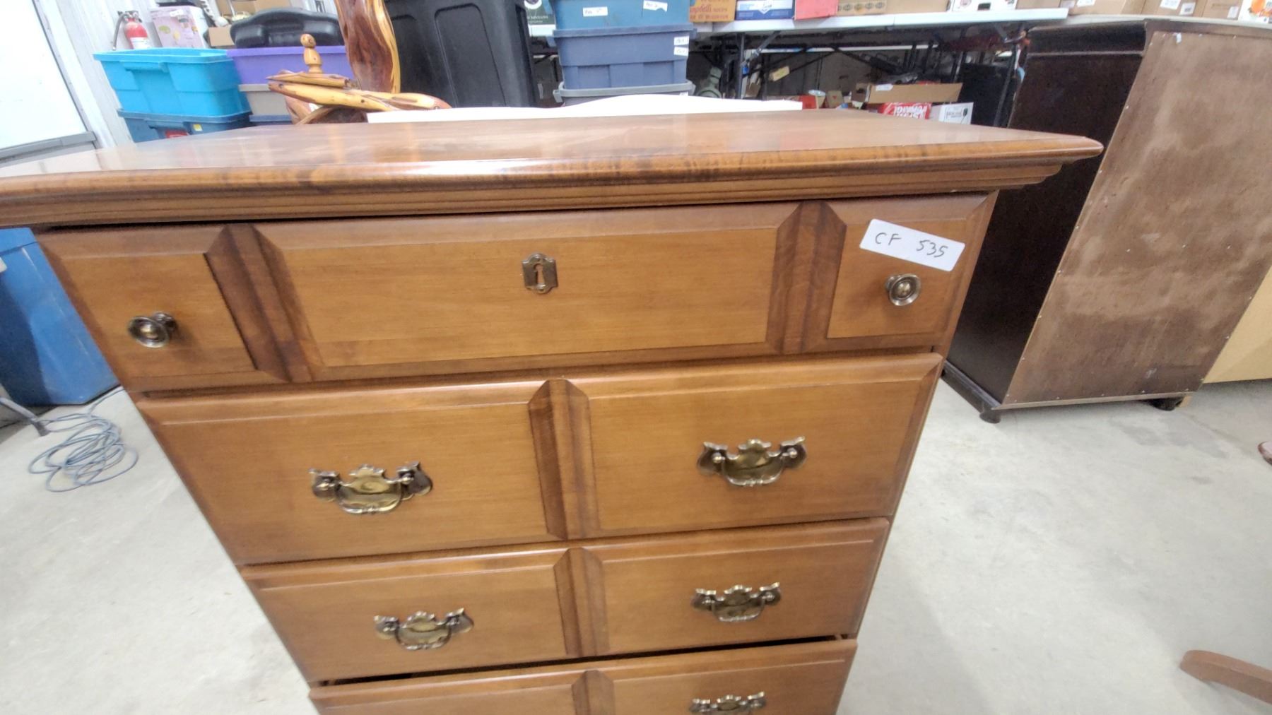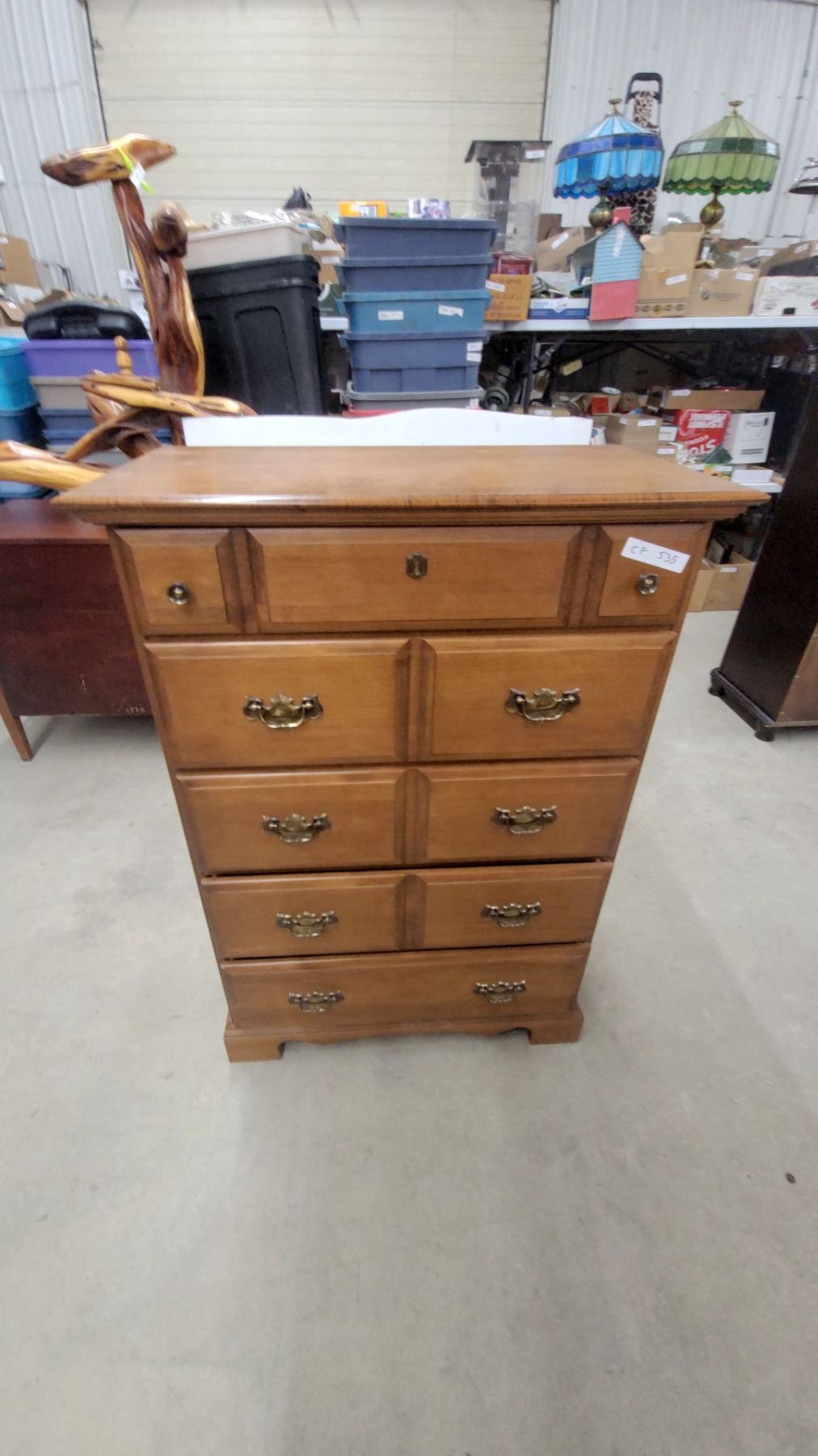 Lot 535 Vilas Maple 5-Drawer Chest of Drawers with Brass Bail Pulls, Colonial Style 48 x 33 x 17"