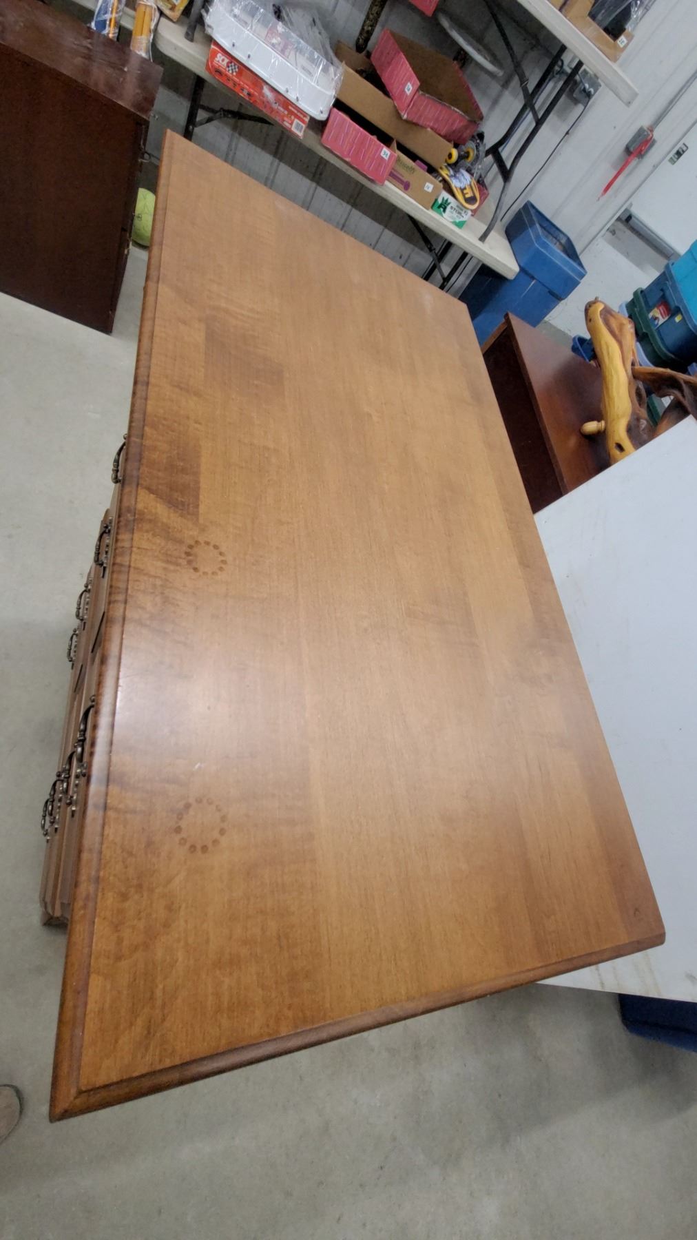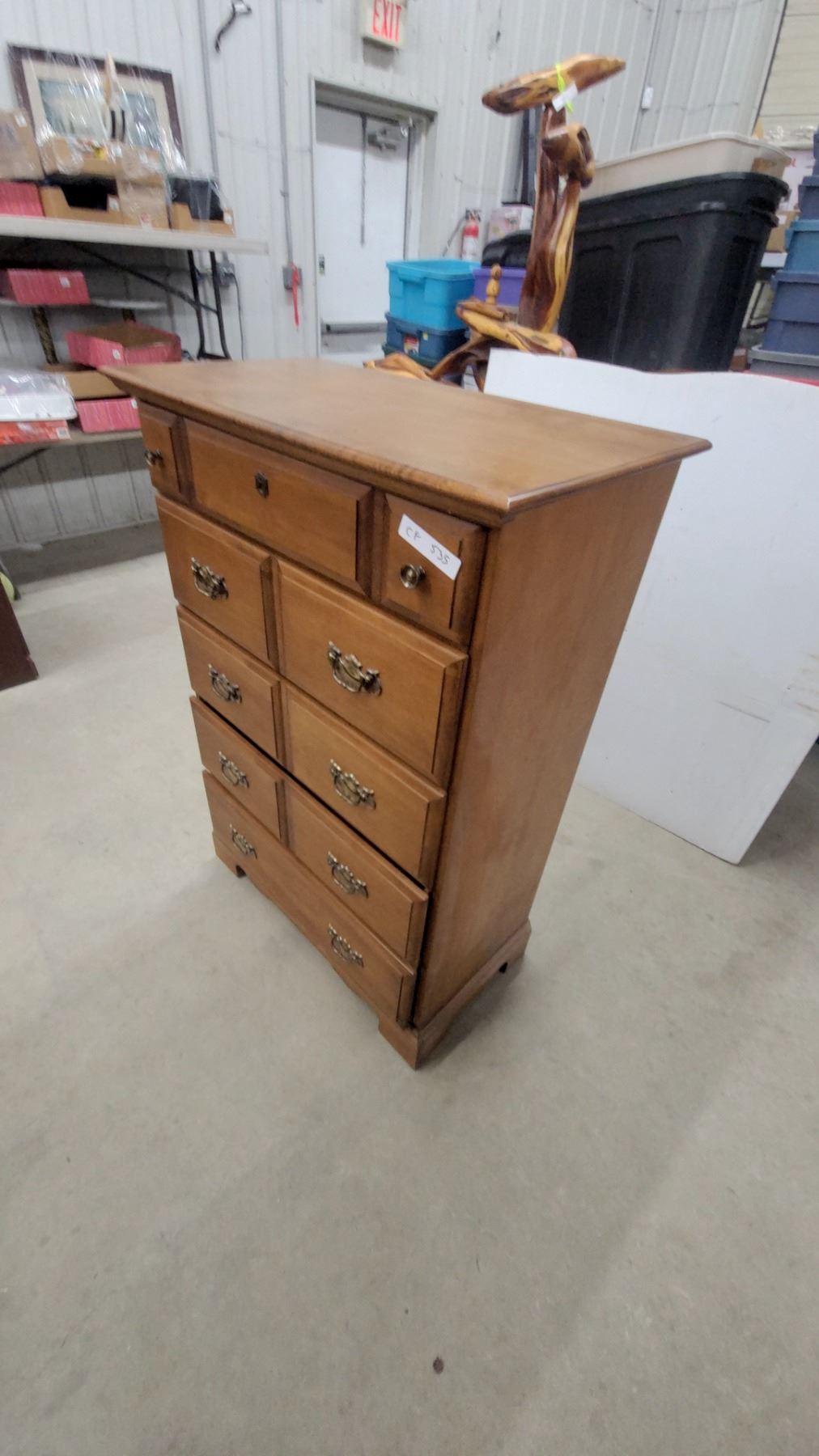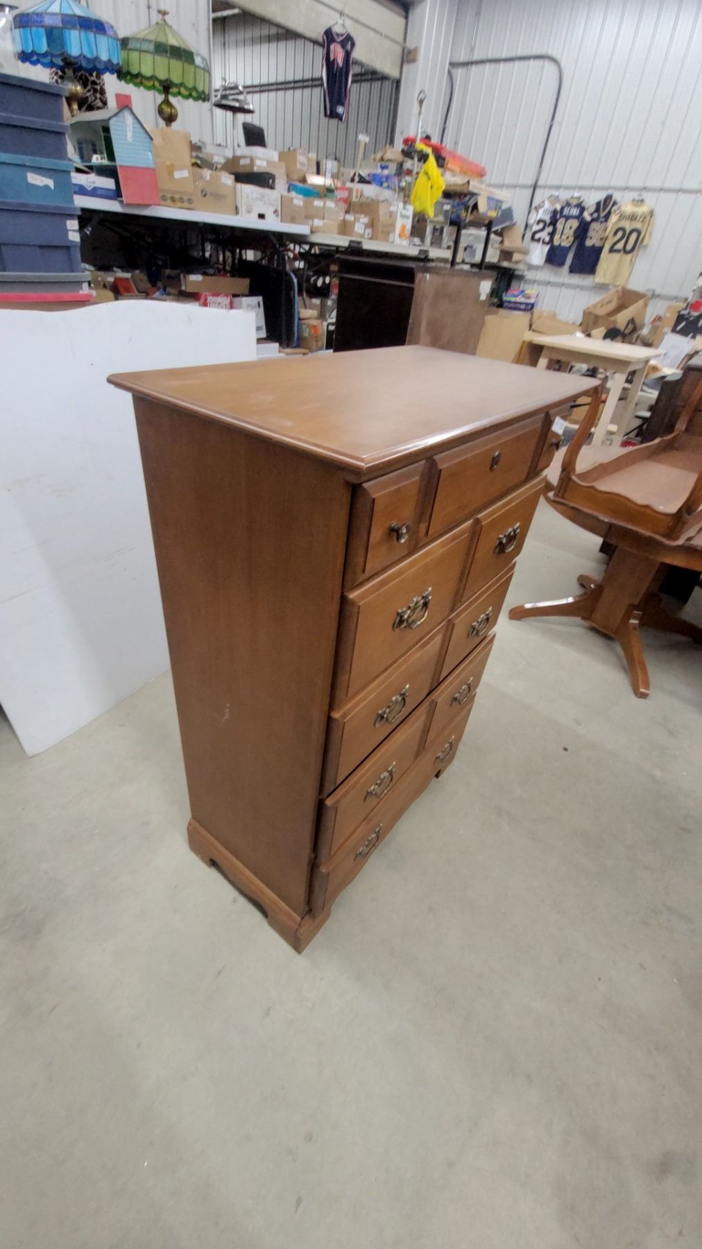 Lot 535 Vilas Maple 5-Drawer Chest of Drawers with Brass Bail Pulls, Colonial Style 48 x 33 x 17"