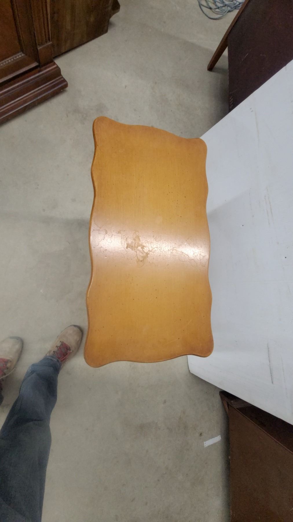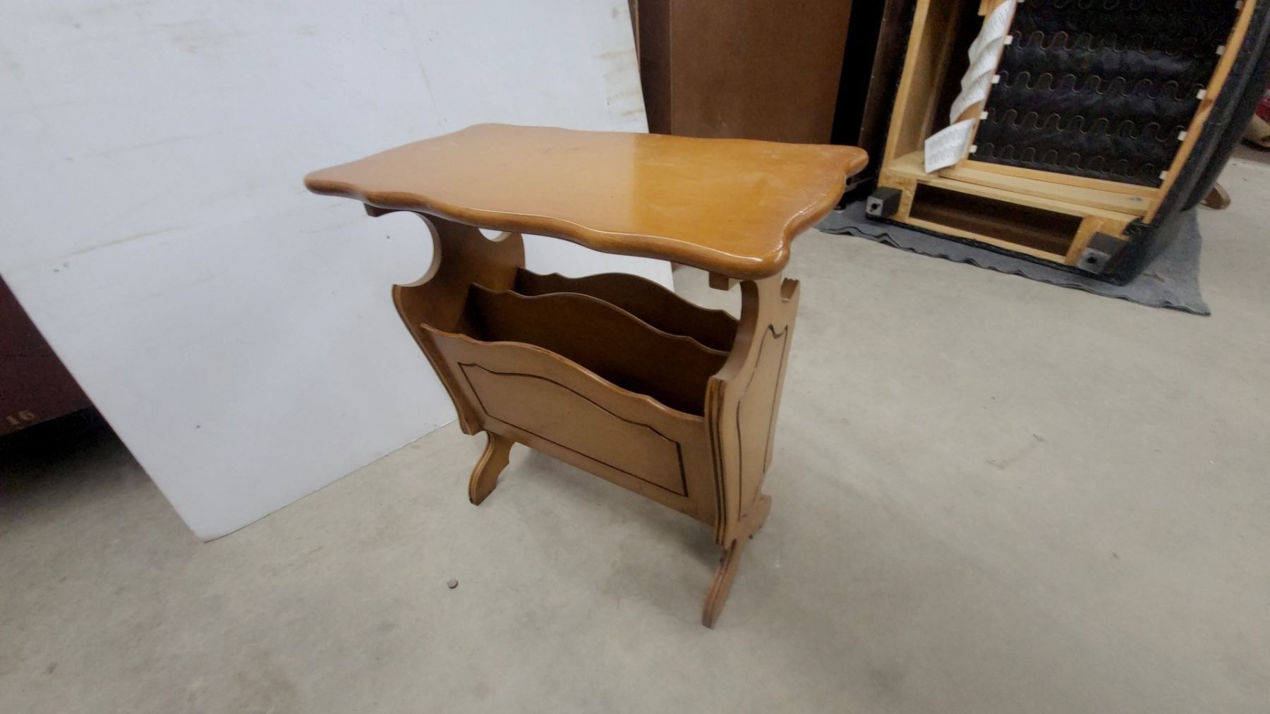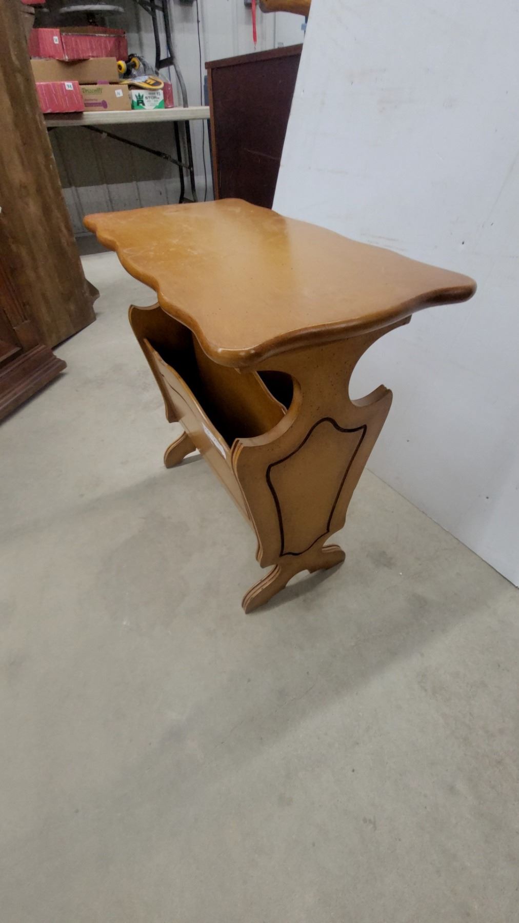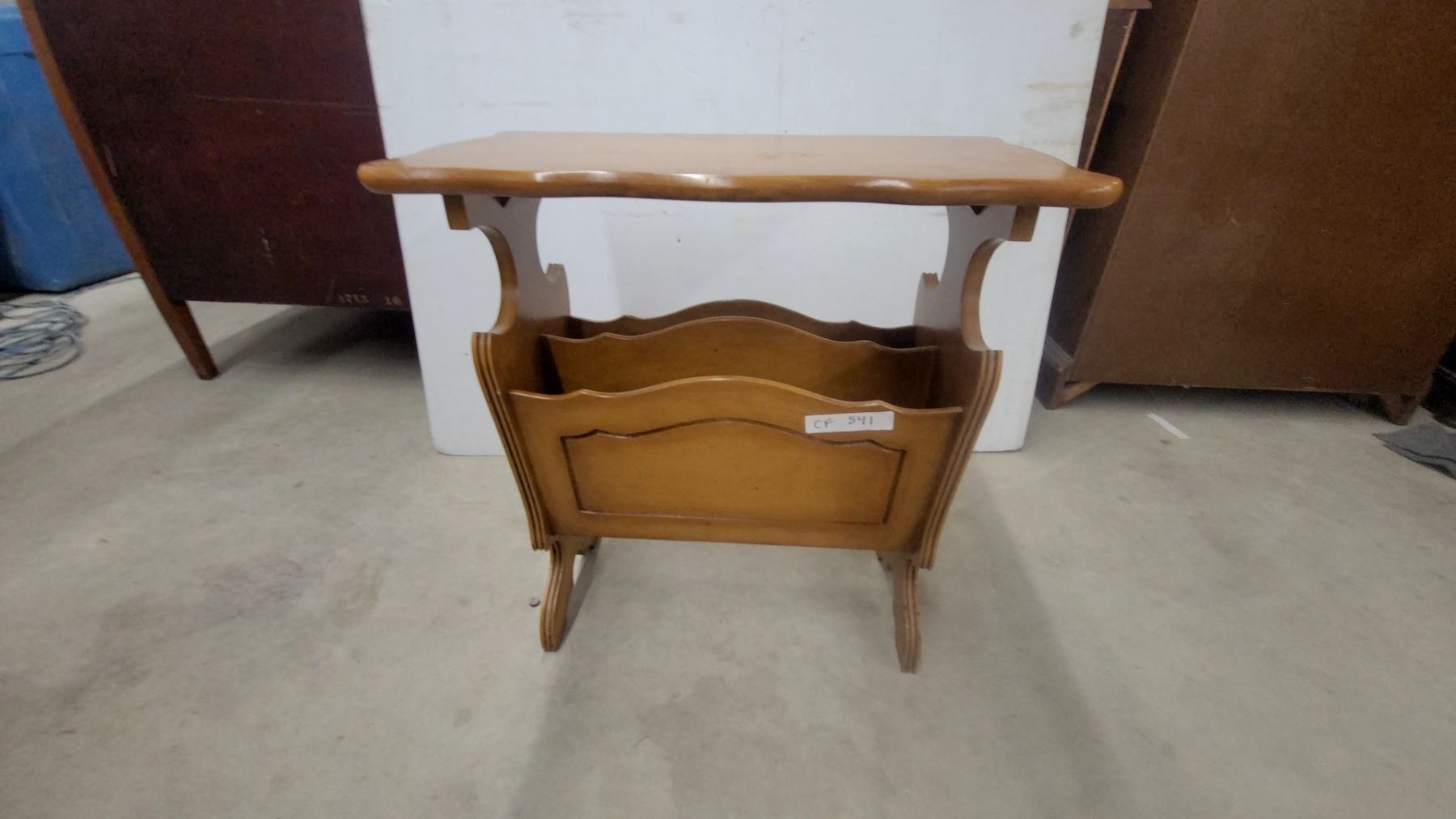 Lot 541 Maple Magazine Rack Side Table with Scalloped Edges and Shield Panel Design 24 x 13 x 24"