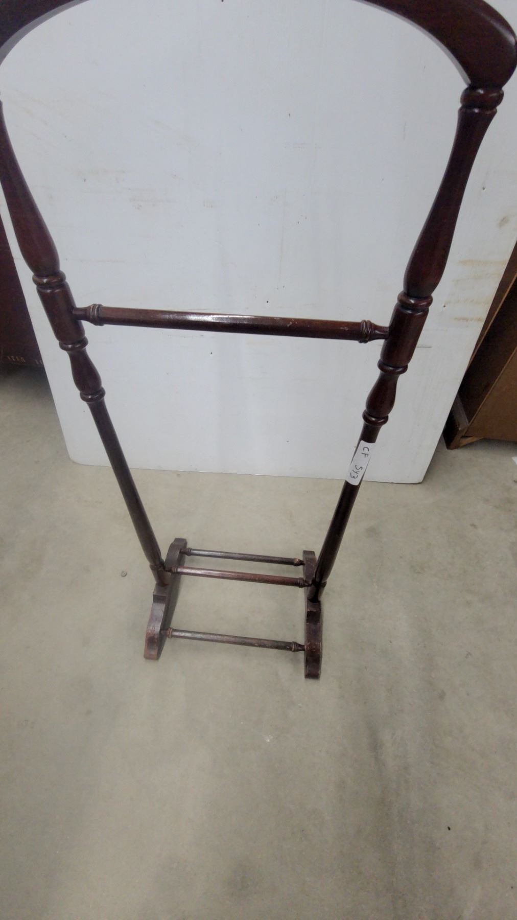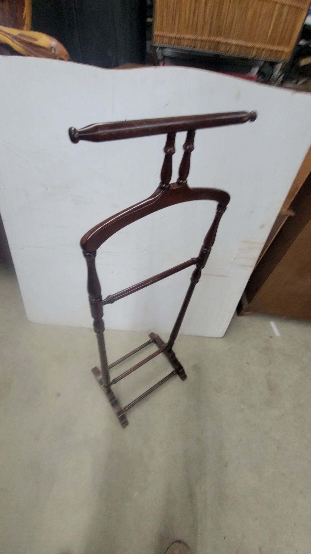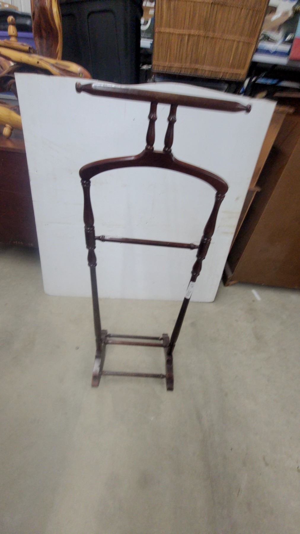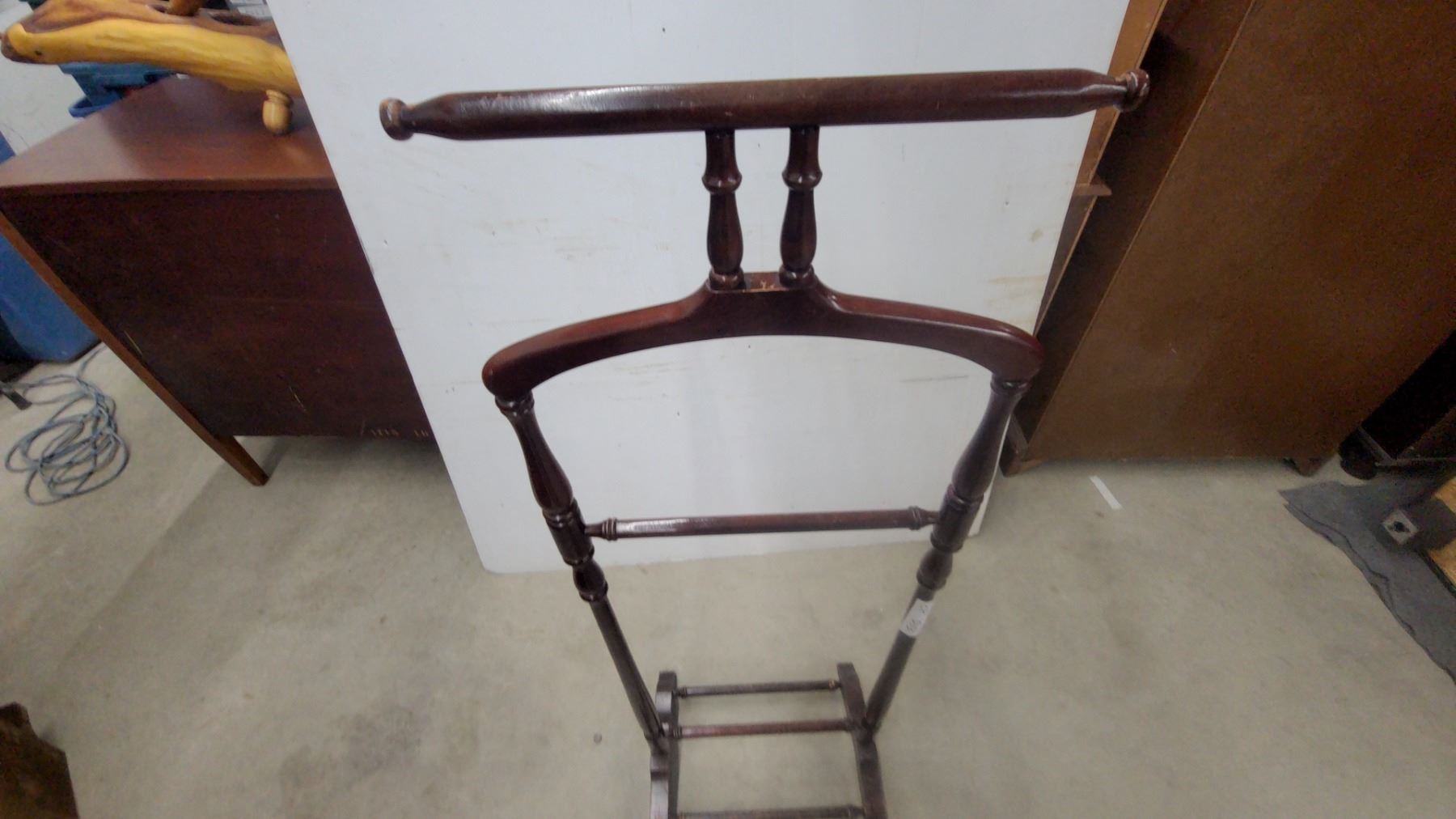 Lot 543 Wooden Valet Stand with Coat Hanger, Trouser Bar, and Shoe Rack Base
