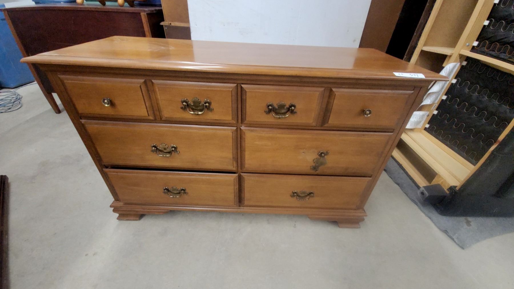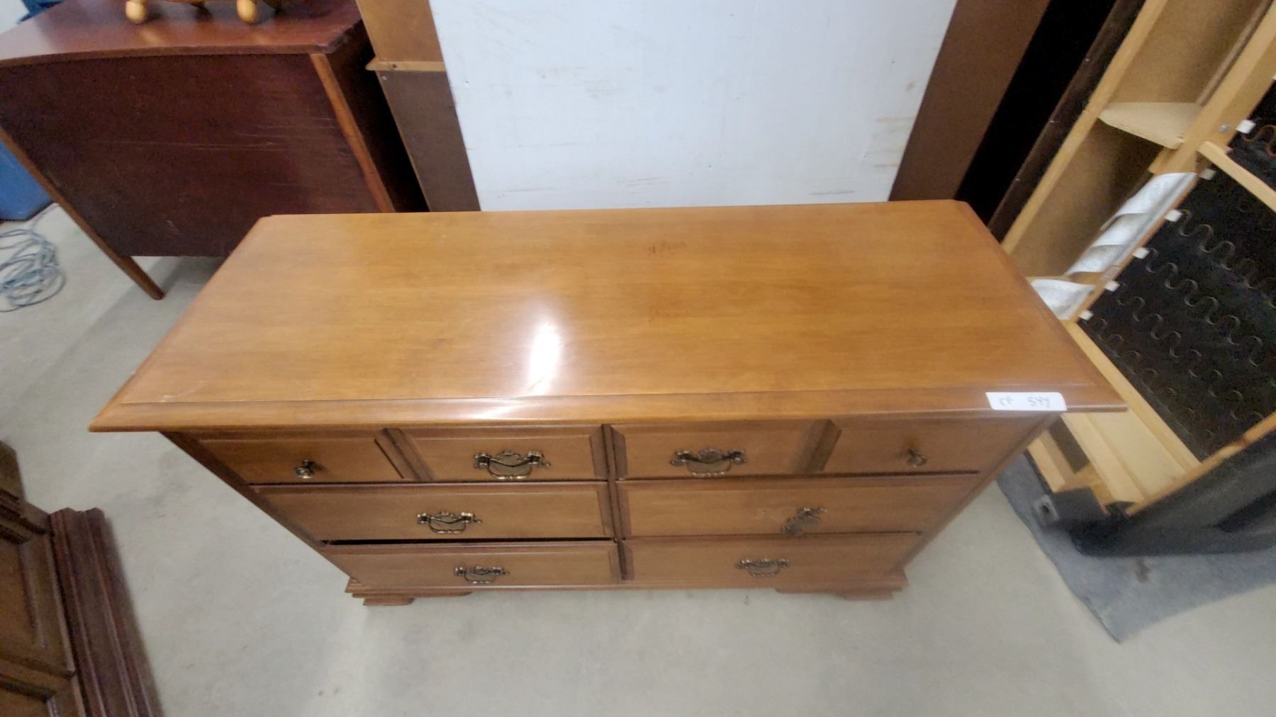 Lot 544 Maple 6-drawer Dresser with Brass Bail Pulls, Colonial Style, Dovetail Drawer Construction 31 x 50