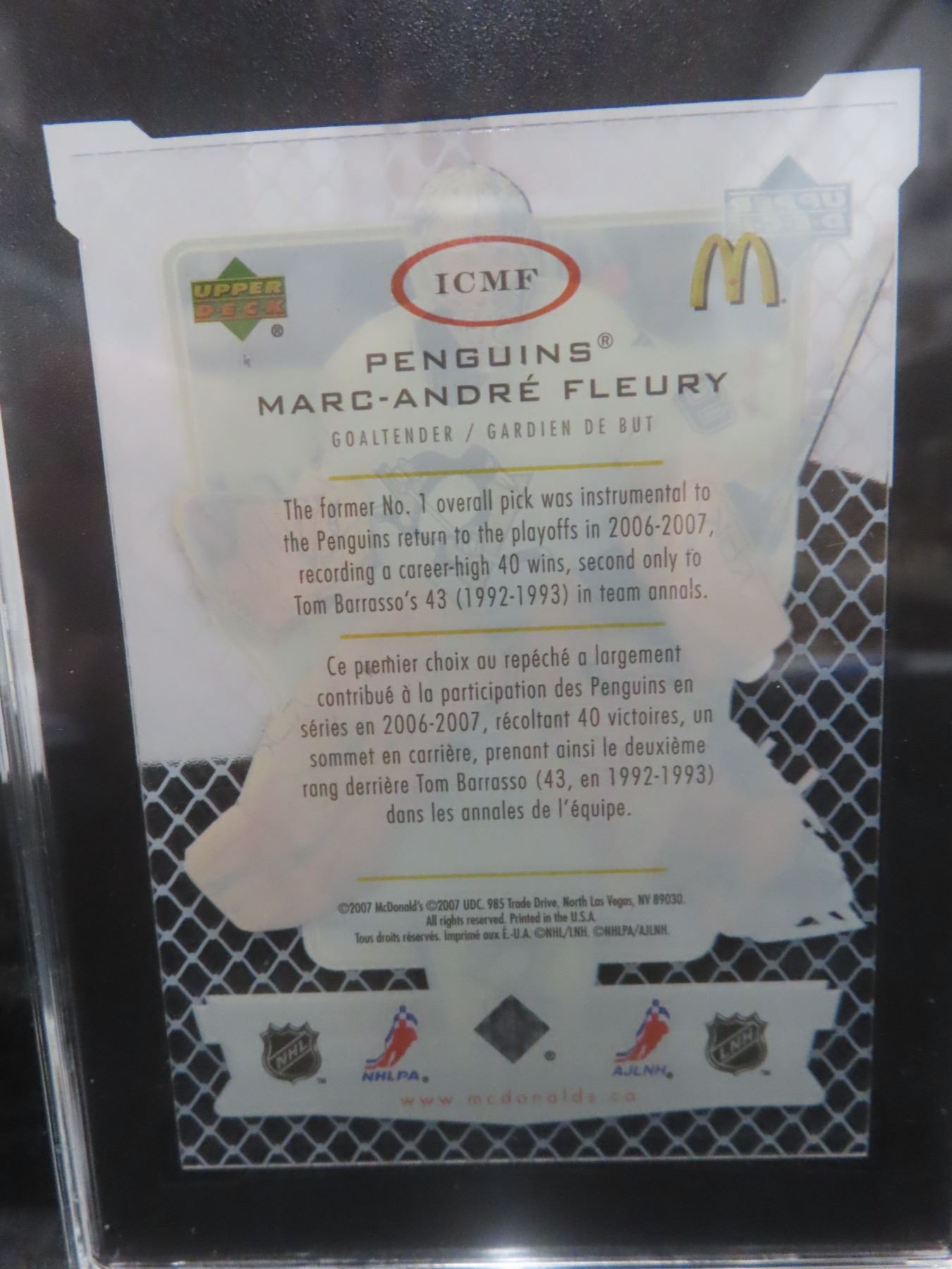 Lot 707b Graded Marc-Andre Fleury Card