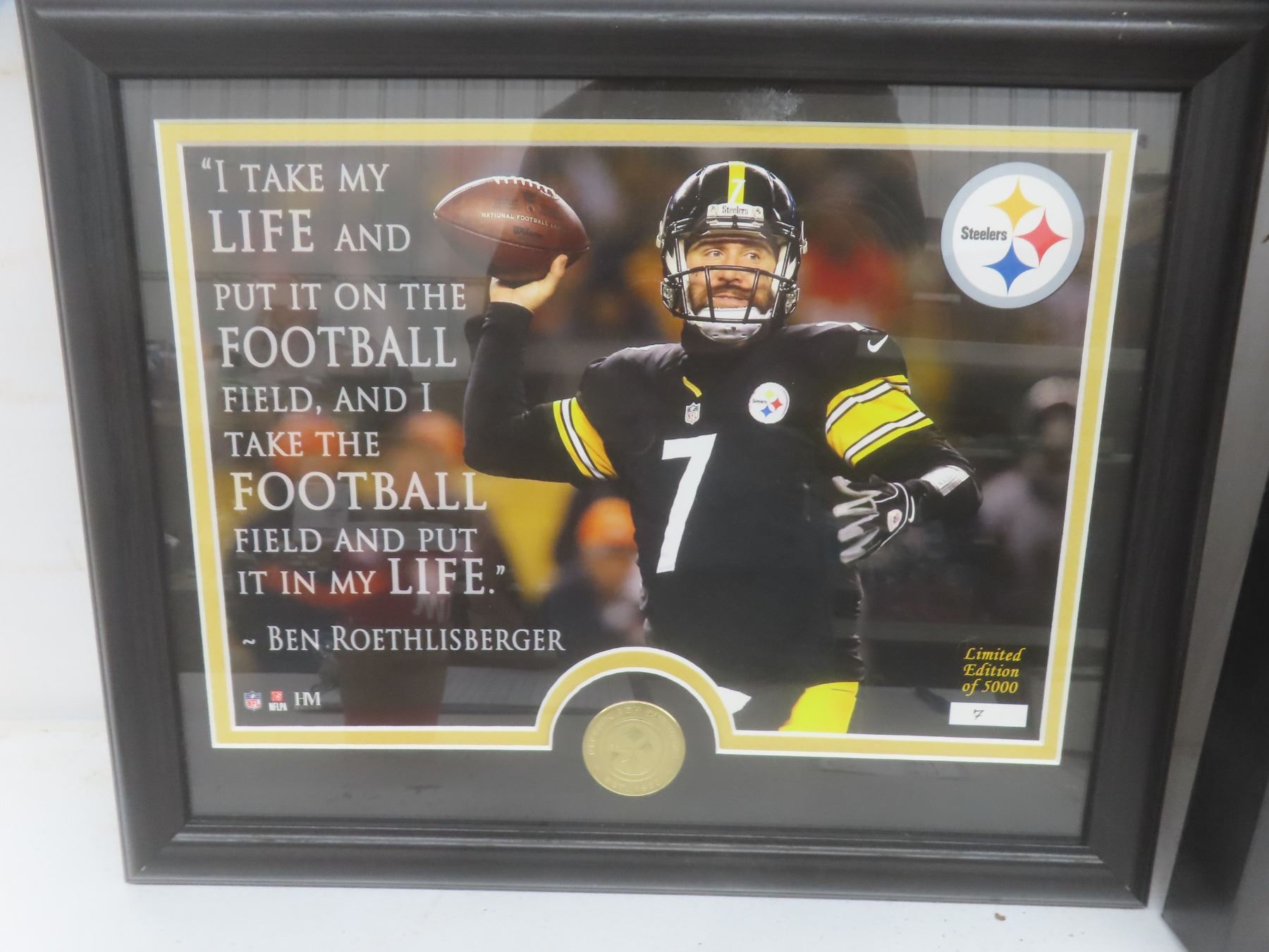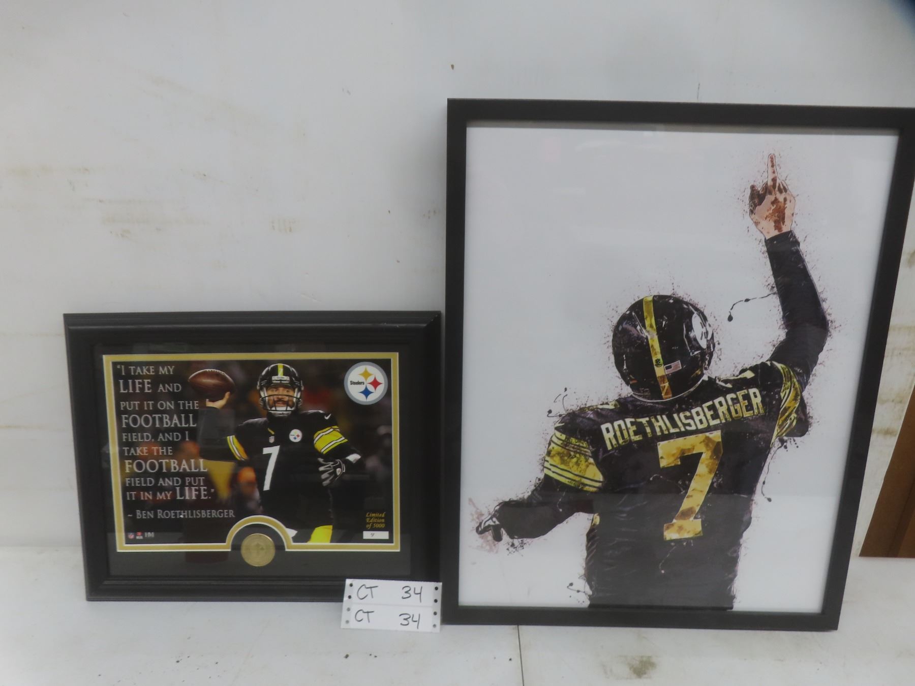 Lot 34 Two Framed Ben Roethlisberger Prints, 16x13" and 17x21"