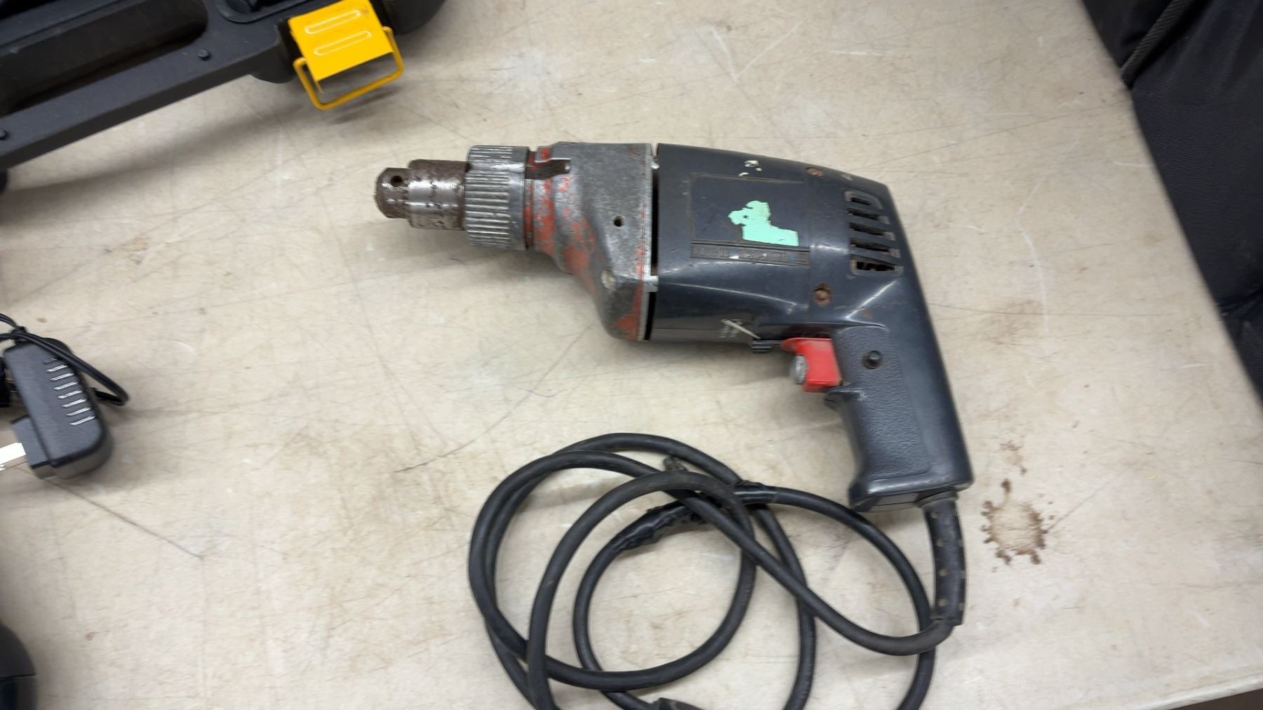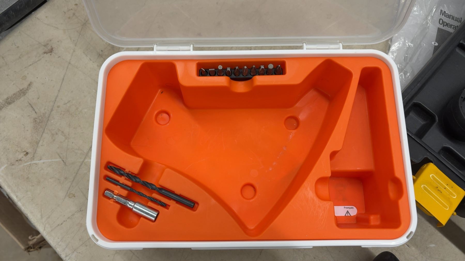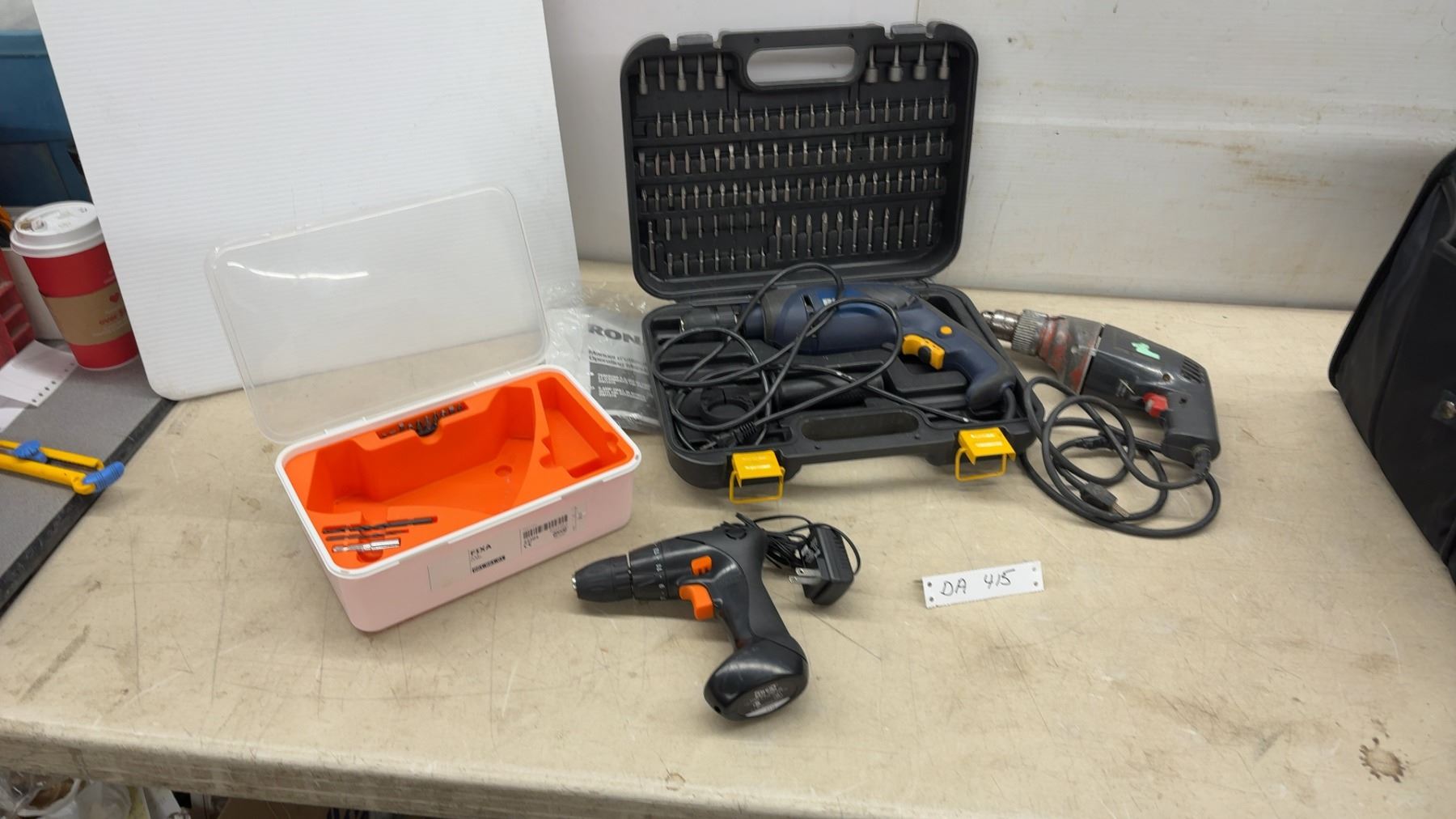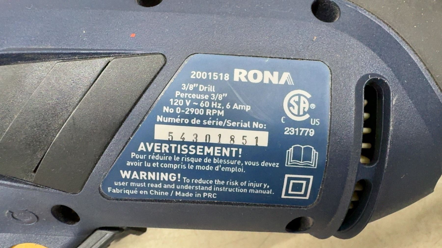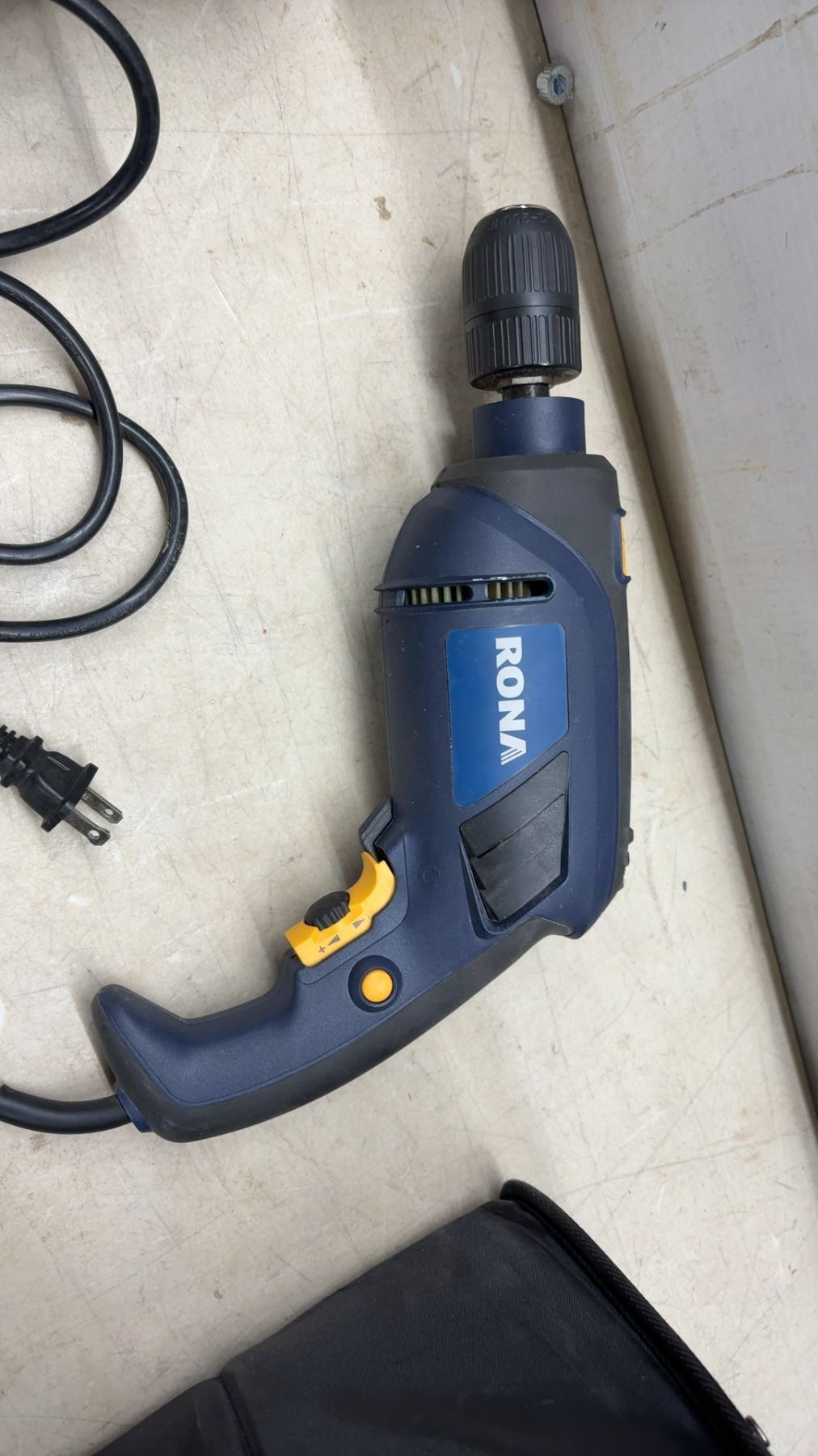 Lot 415 2 Power Tools: RONA 2001518 3/8" Drill 6A with Bit Set, Cordless Screwdriver & Hammer Drill