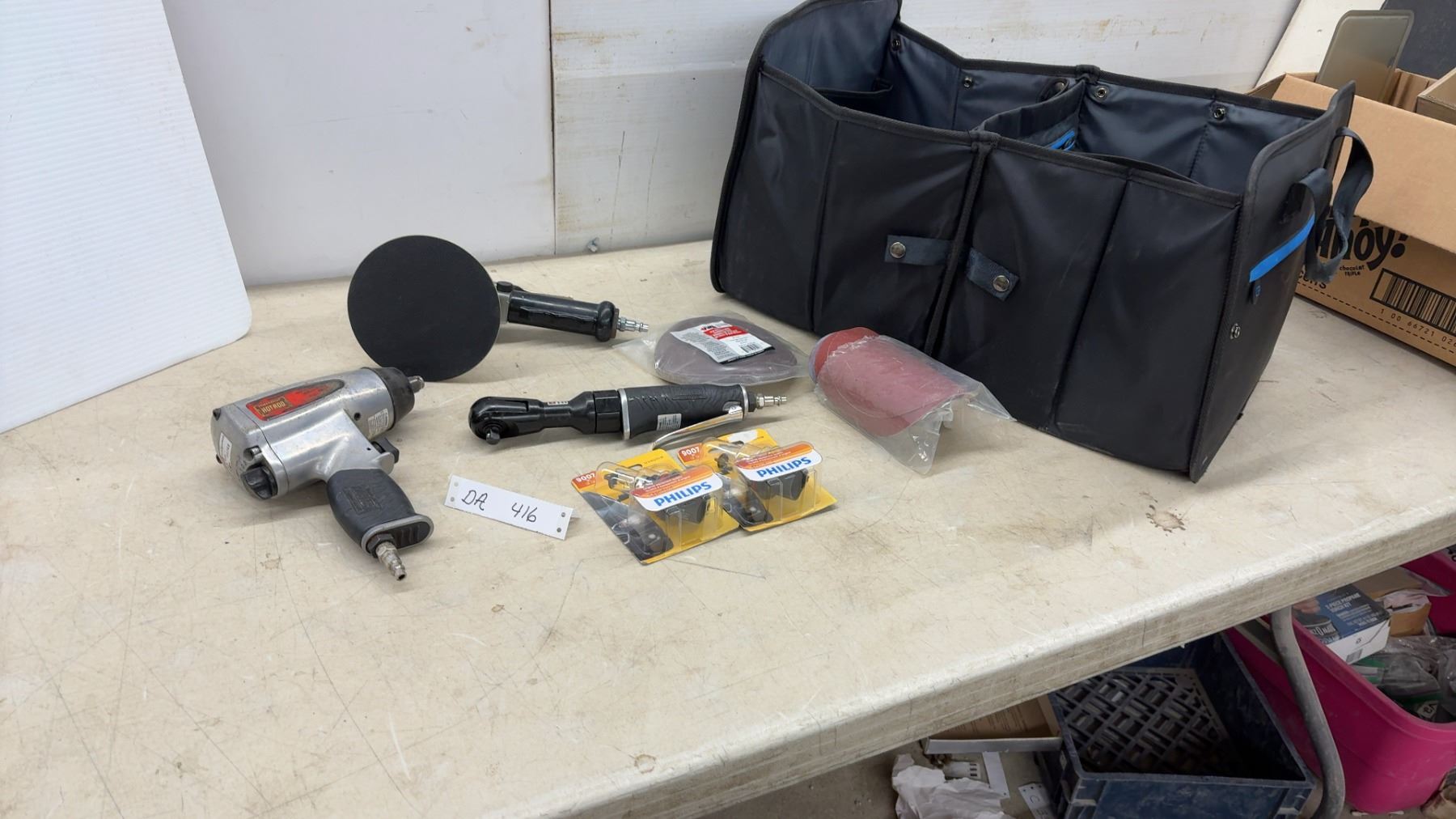 Lot 416 3 Air Tools: Power Fist 6" Dual Action Orbital Sander, Hot Rod 1/2" Air Impact Wrench, Air Ratchet