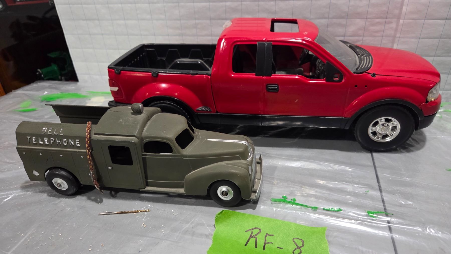 Hubley 9.5" Bell Telephone Truck, Buddy L 15" Ford F150 Truck
