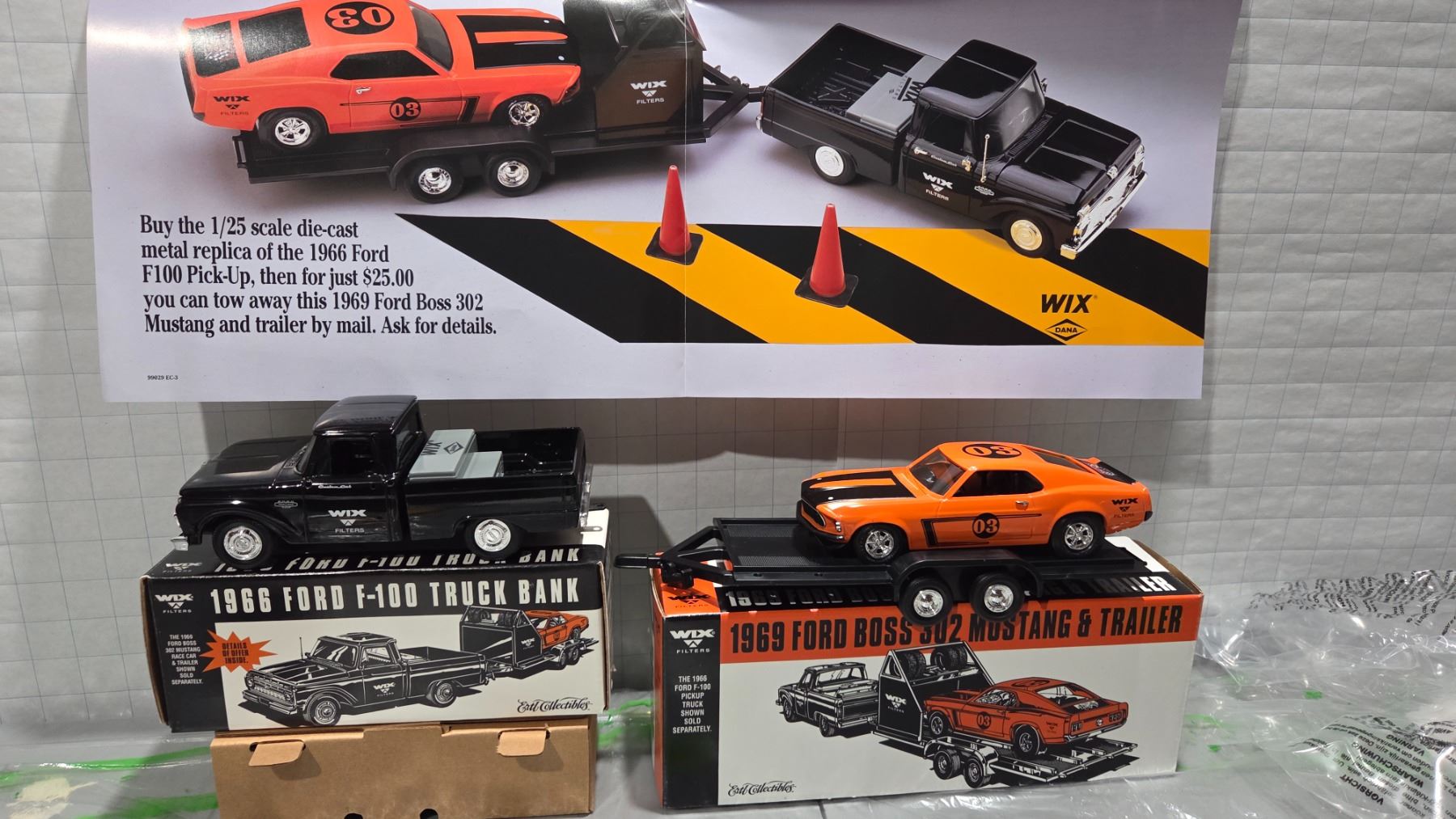 Lot 146 Wix 1966 Ford F-100, 1969 Ford Mustang Boss 302 with Trailer, 1/25th Die-Cast