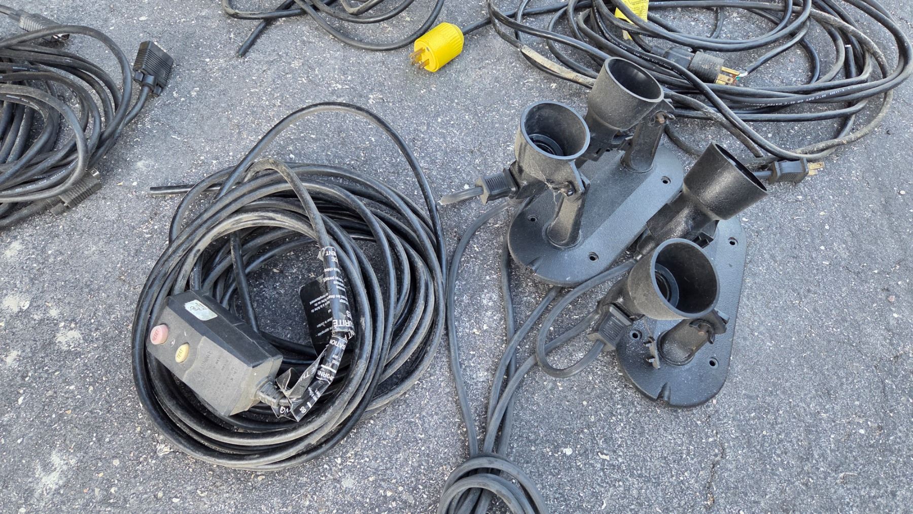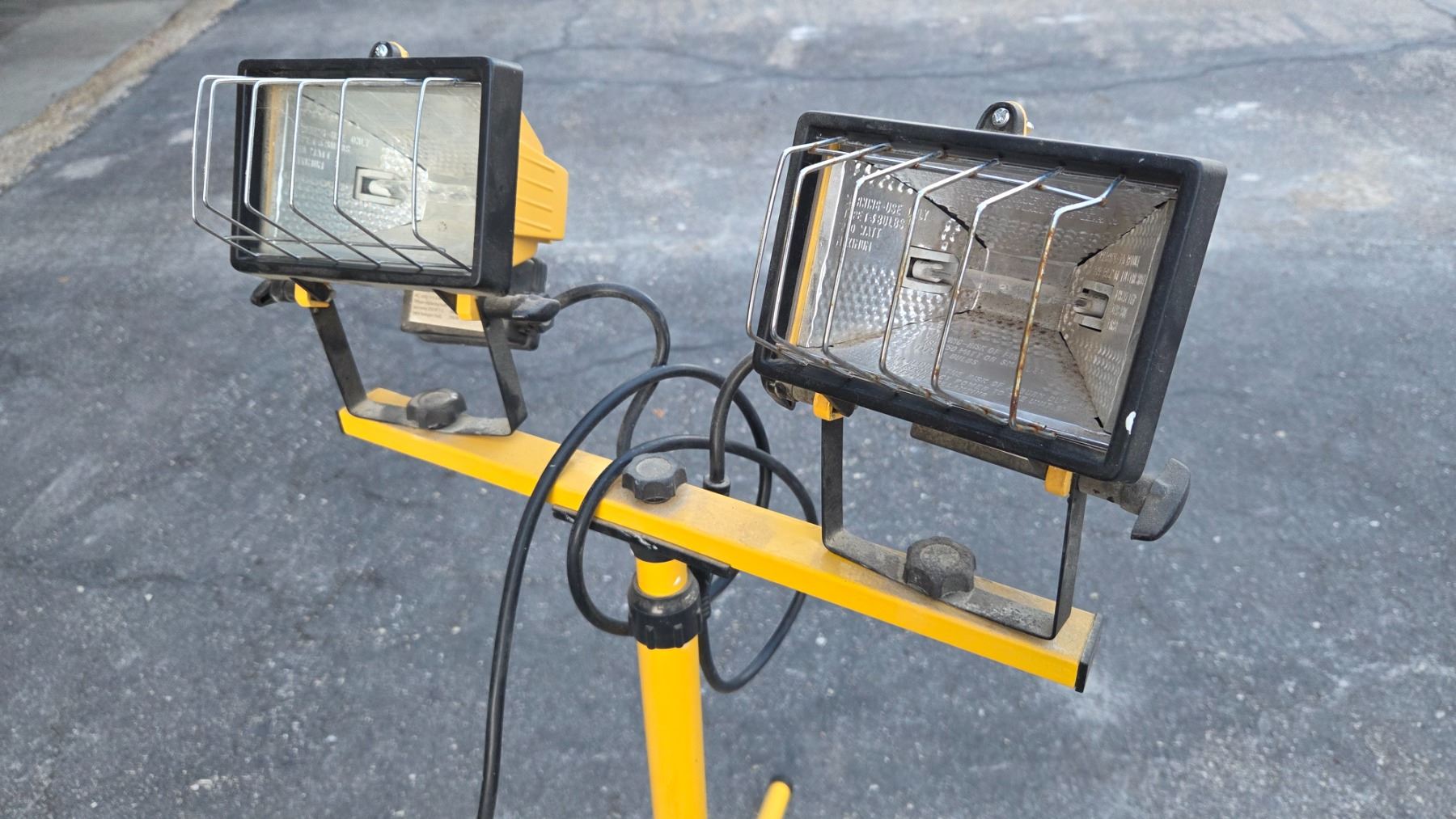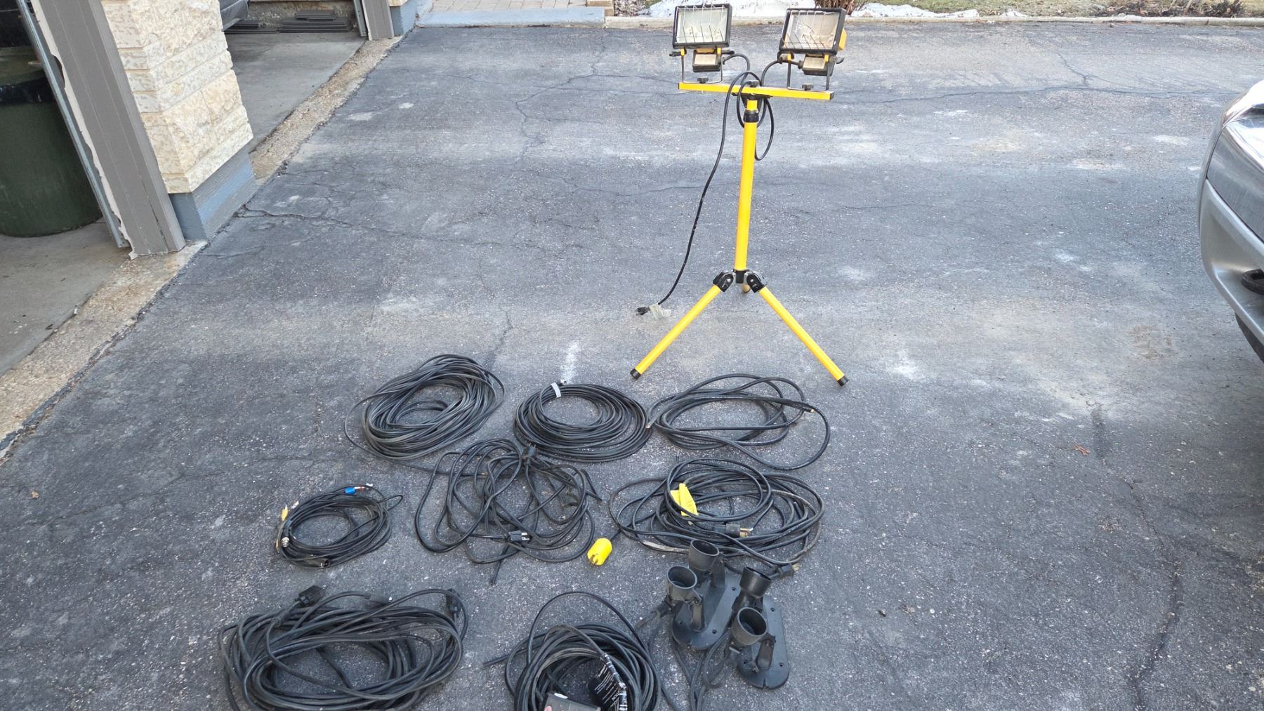 Approx 25 Lbs Misc Wire, Cords, Cable, Double Halogen Work Light/Stand