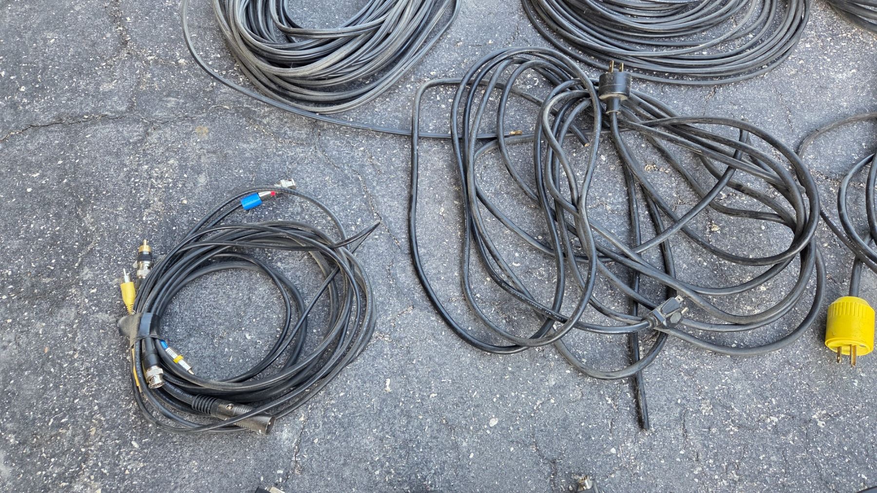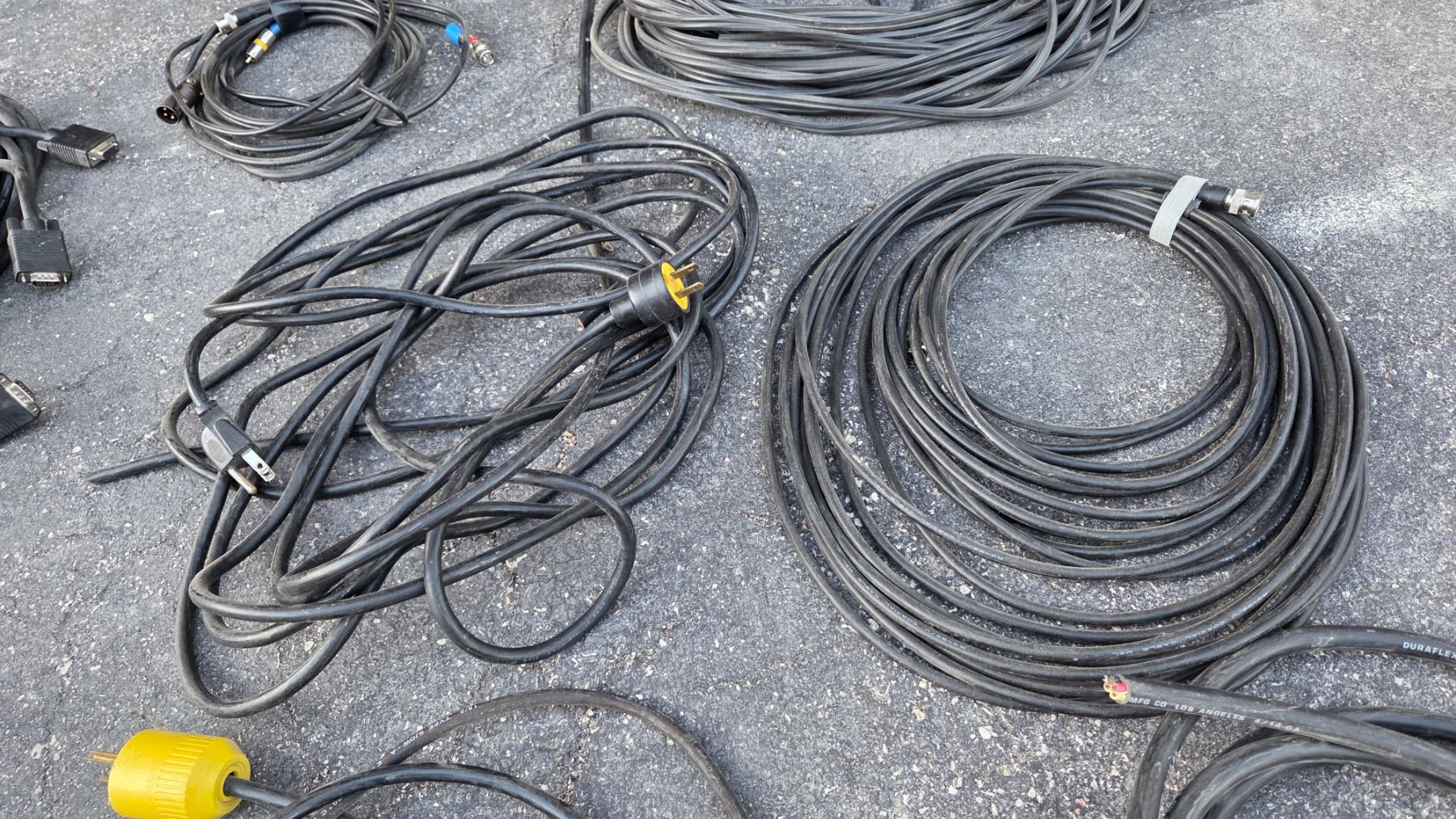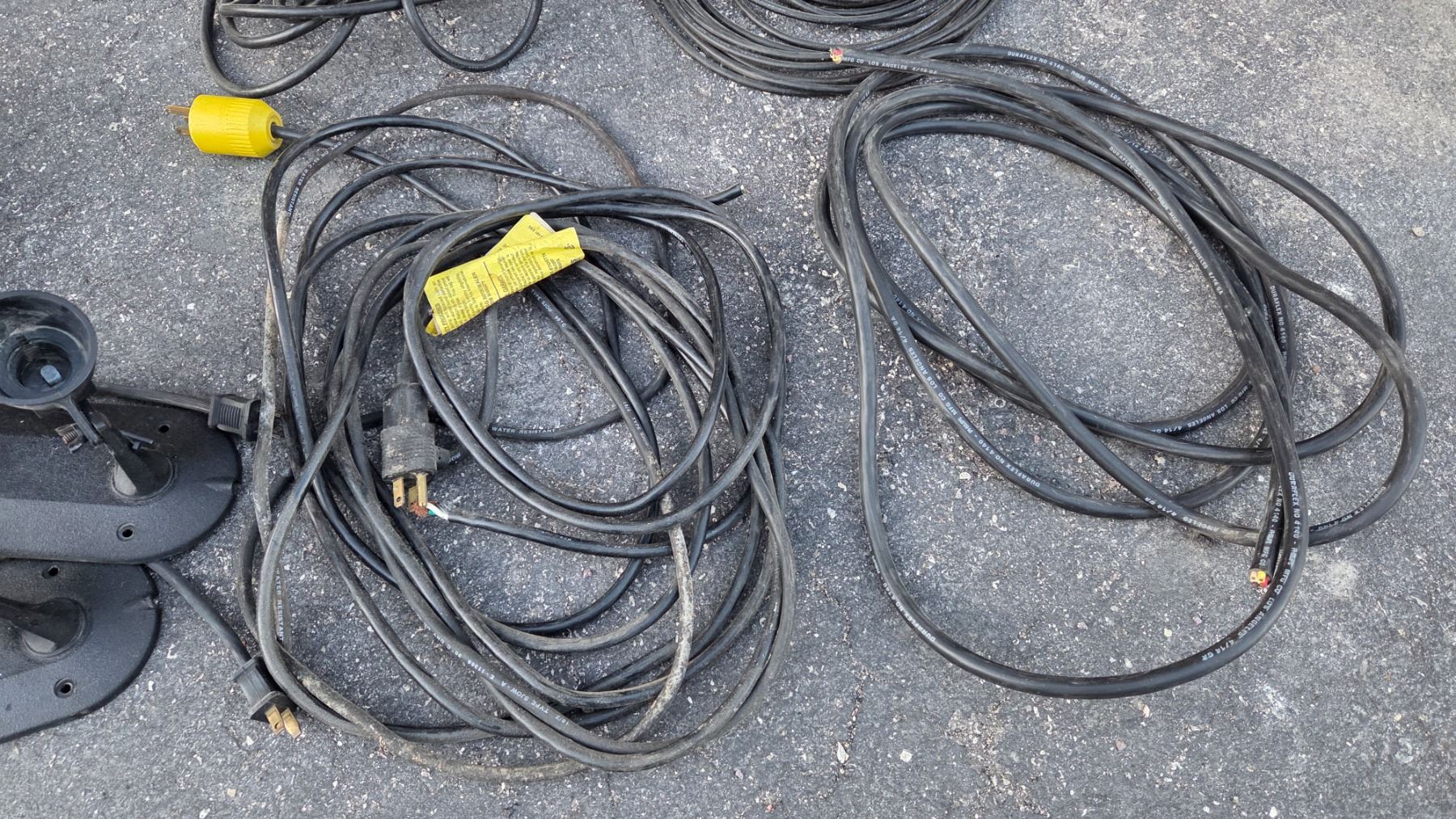 Lot 154 Approx 25 Lbs Misc Wire, Cords, Cable, Double Halogen Work Light/Stand