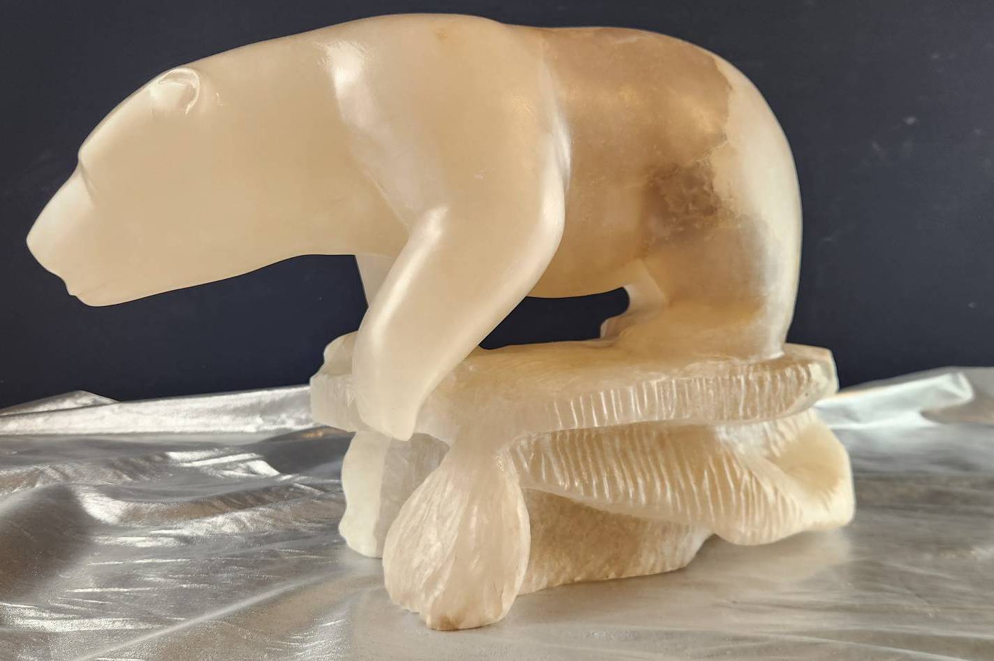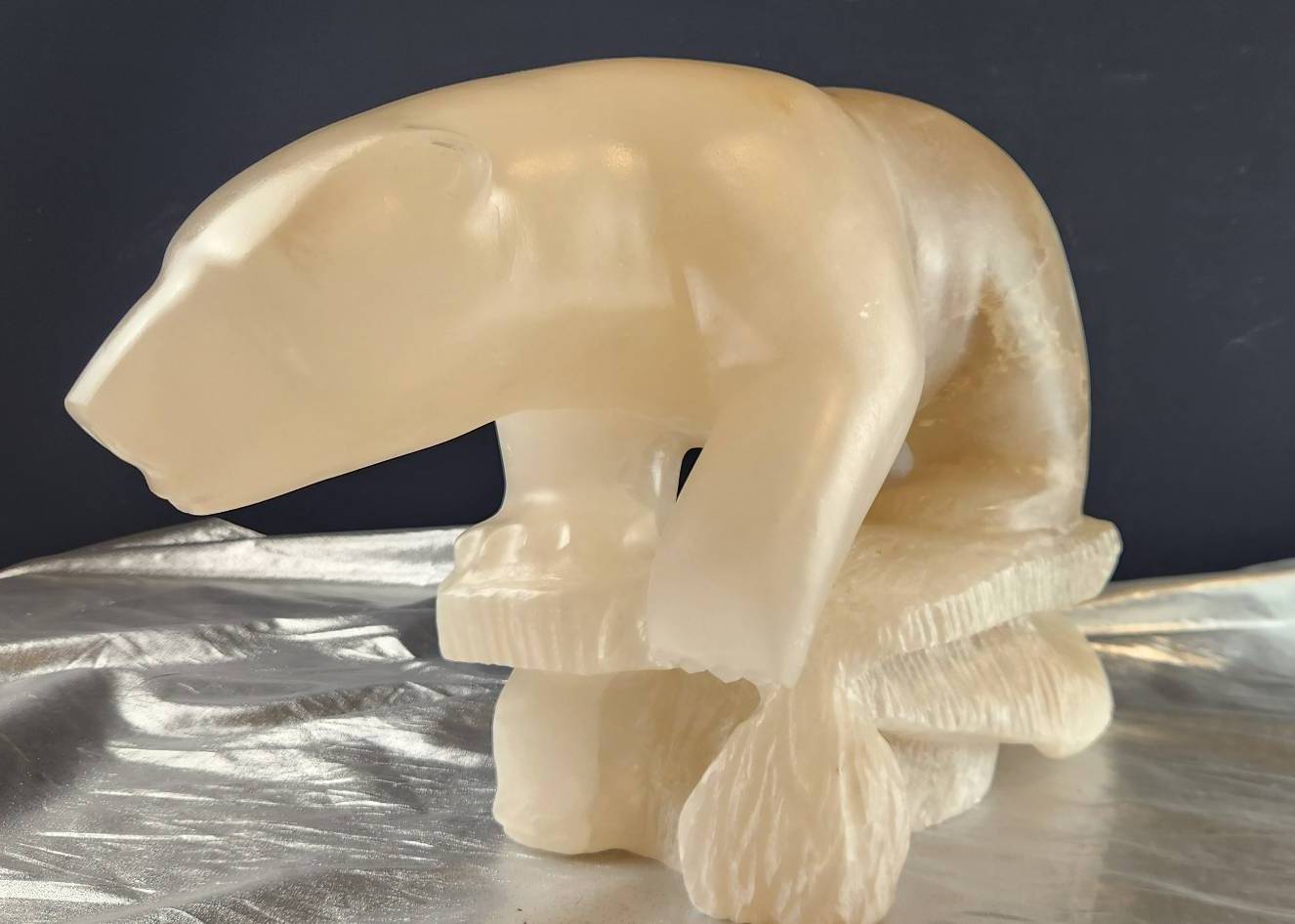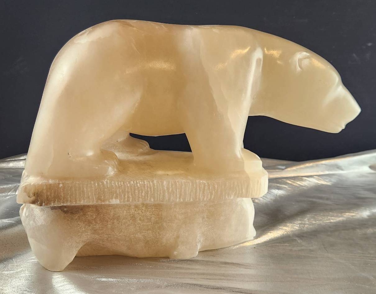 Lot 1 Hand-Carved Bear Sculpture in Quartz-Like Stone, 23" x 14", Over 50 lbs- Artist Signed