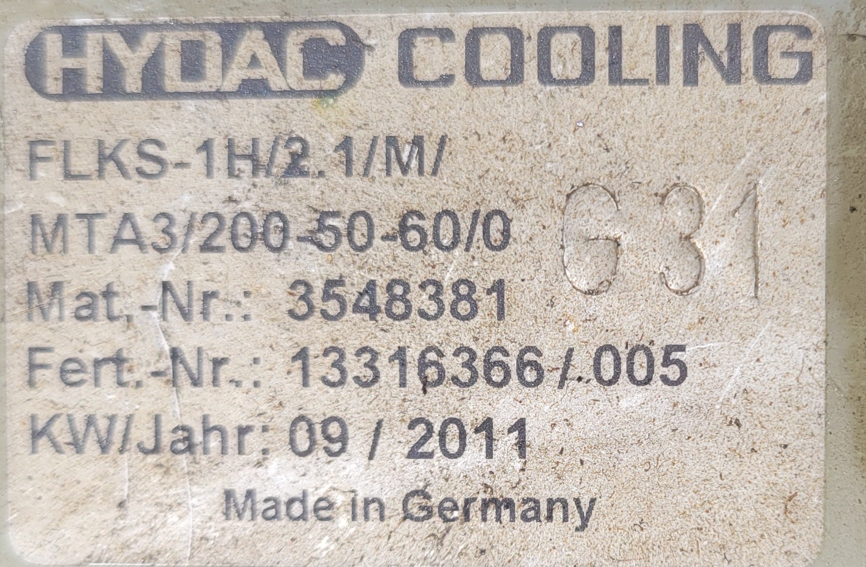 Lot 560 HYDAC FLKS FLUID AIR COOLING SYSTEM
