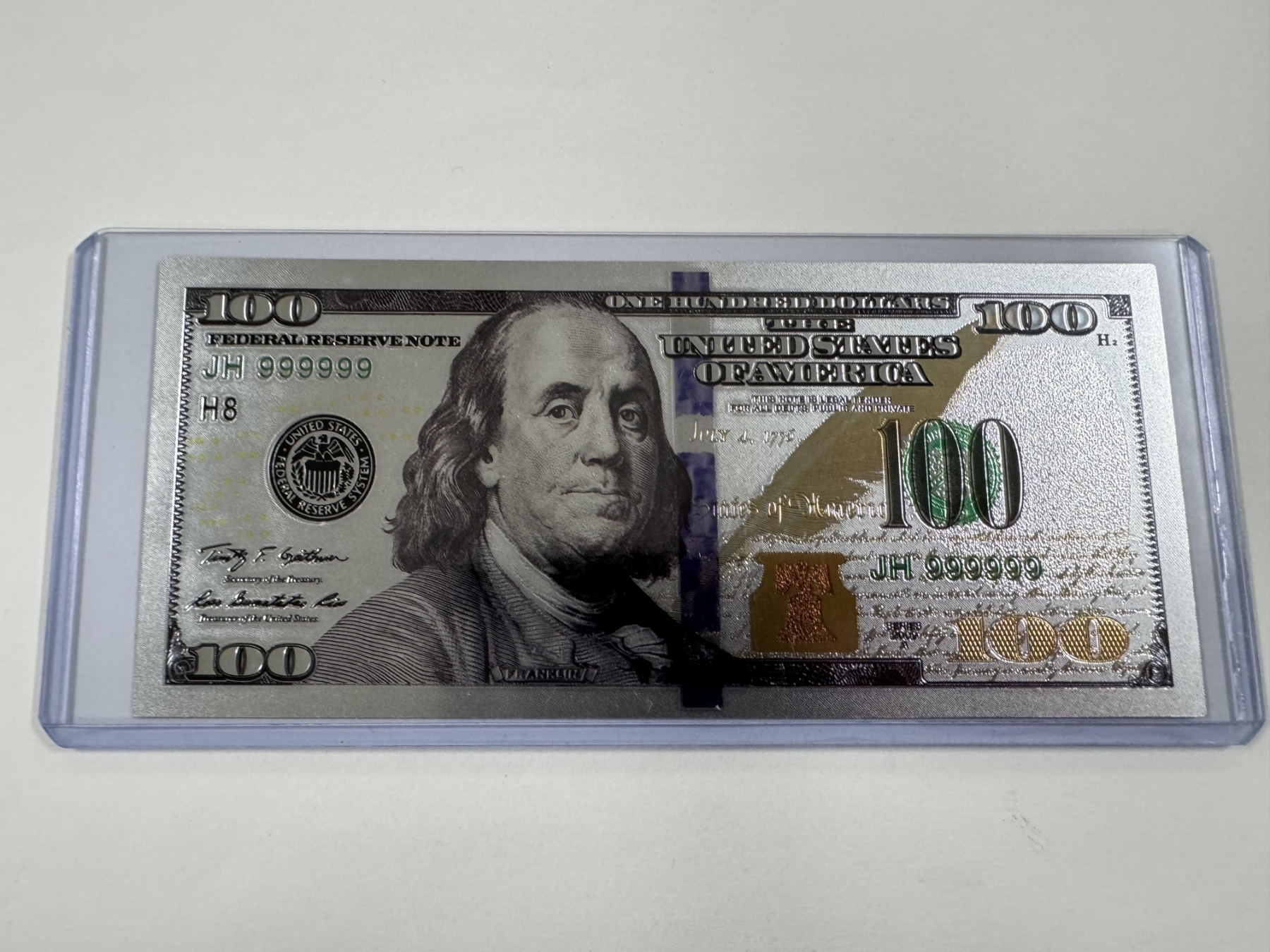Incredible $100 Ben Franklin .99999 Silver Foil Note In Protective Holder - Mint Condition