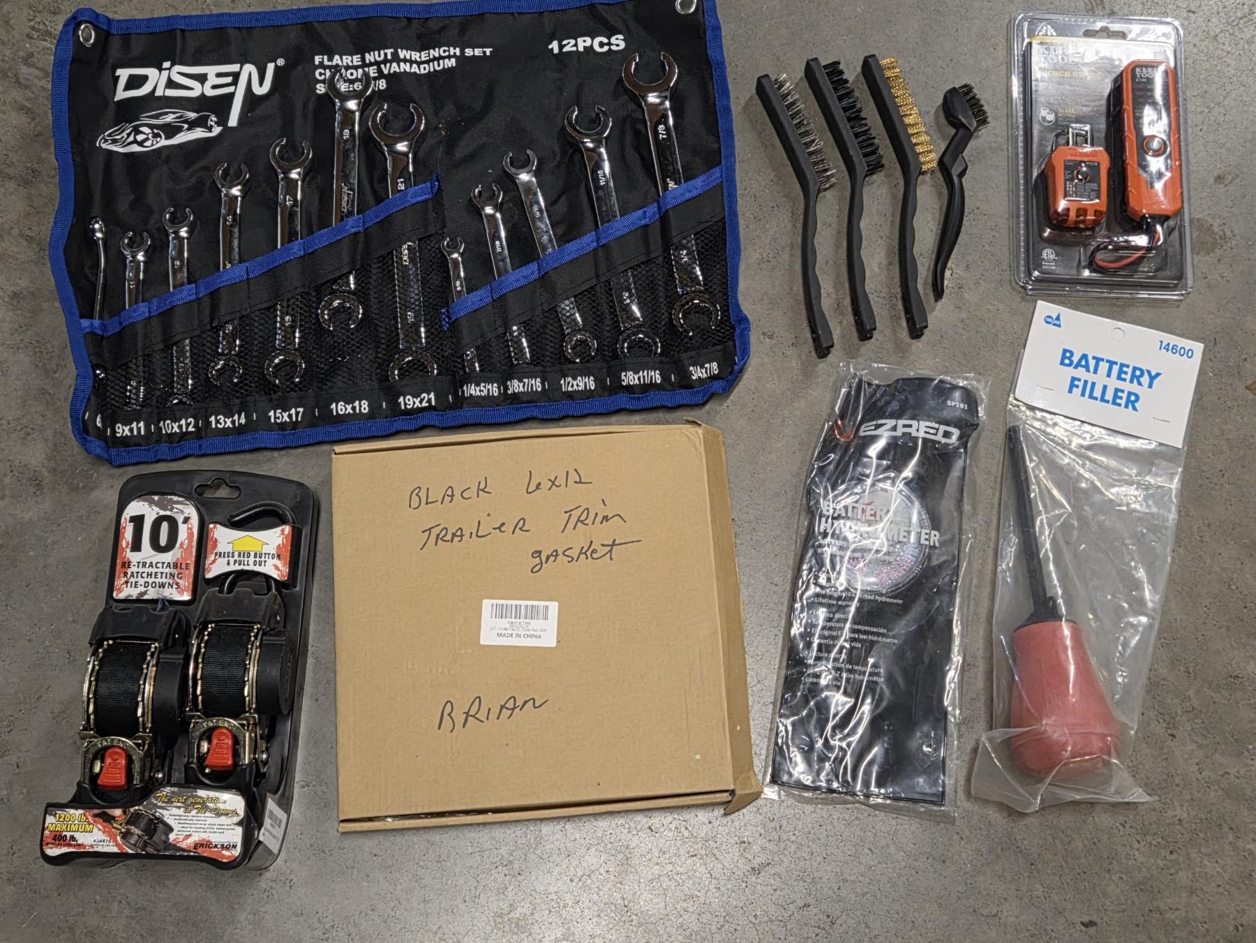 All New! Wrench Set, Battery Filler, Battery Hydrometer, Electrical Tester, Trailer Trim Gasket & More
