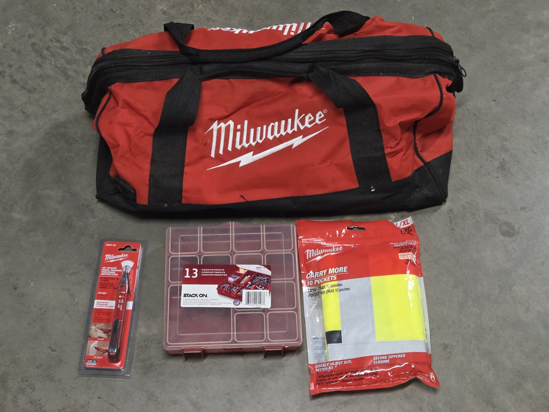 Lot 158 Brand New! Milwaukee Voltage Detector, XL Vest And 22'' Tote/Tool Bag