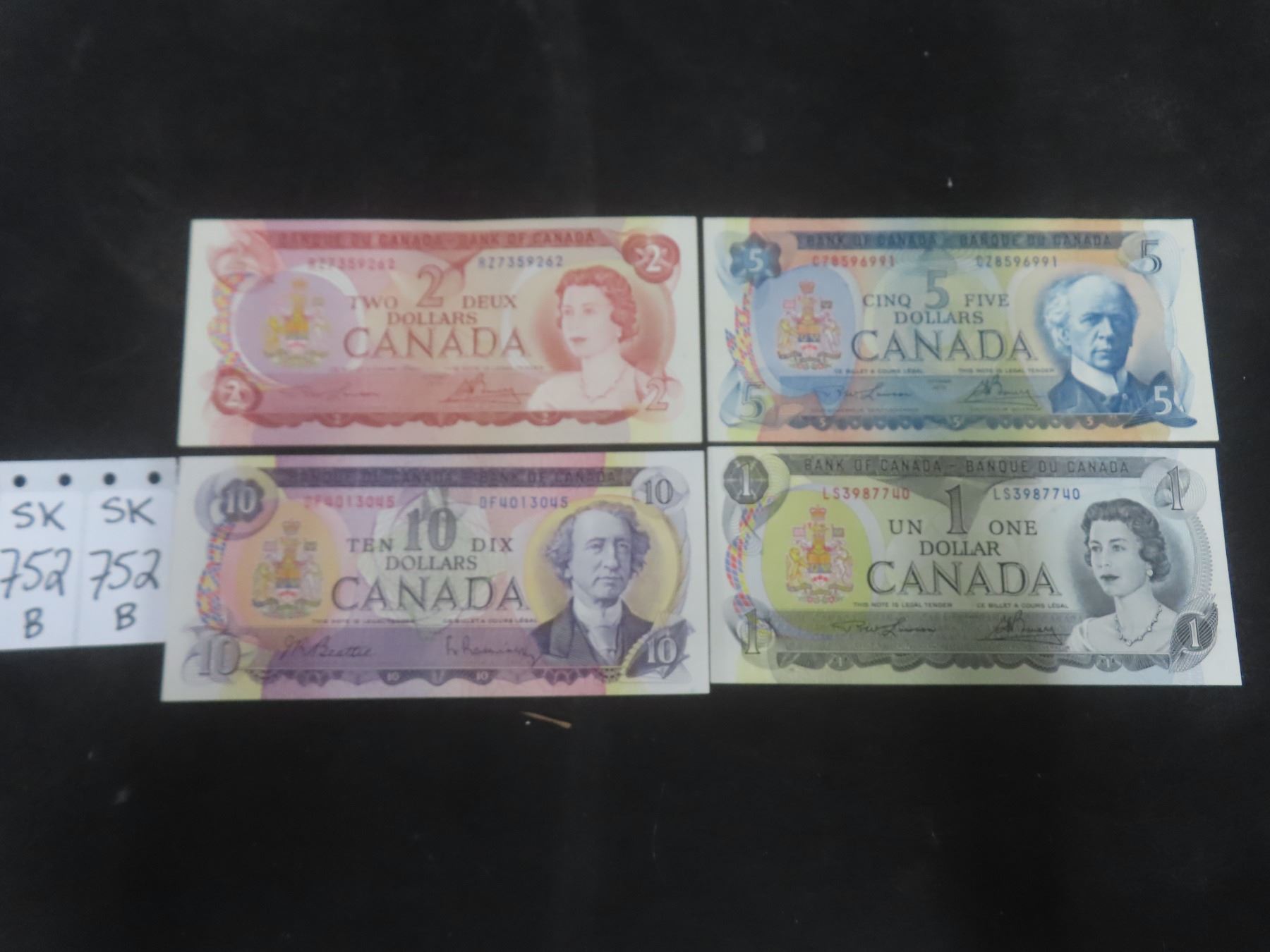 Lot 752b Set of UNC 1973 $1 Bill, UNC 1974 $2 Bill, AU 1975 $5 Bill, UNC 1971 $10 Bill
