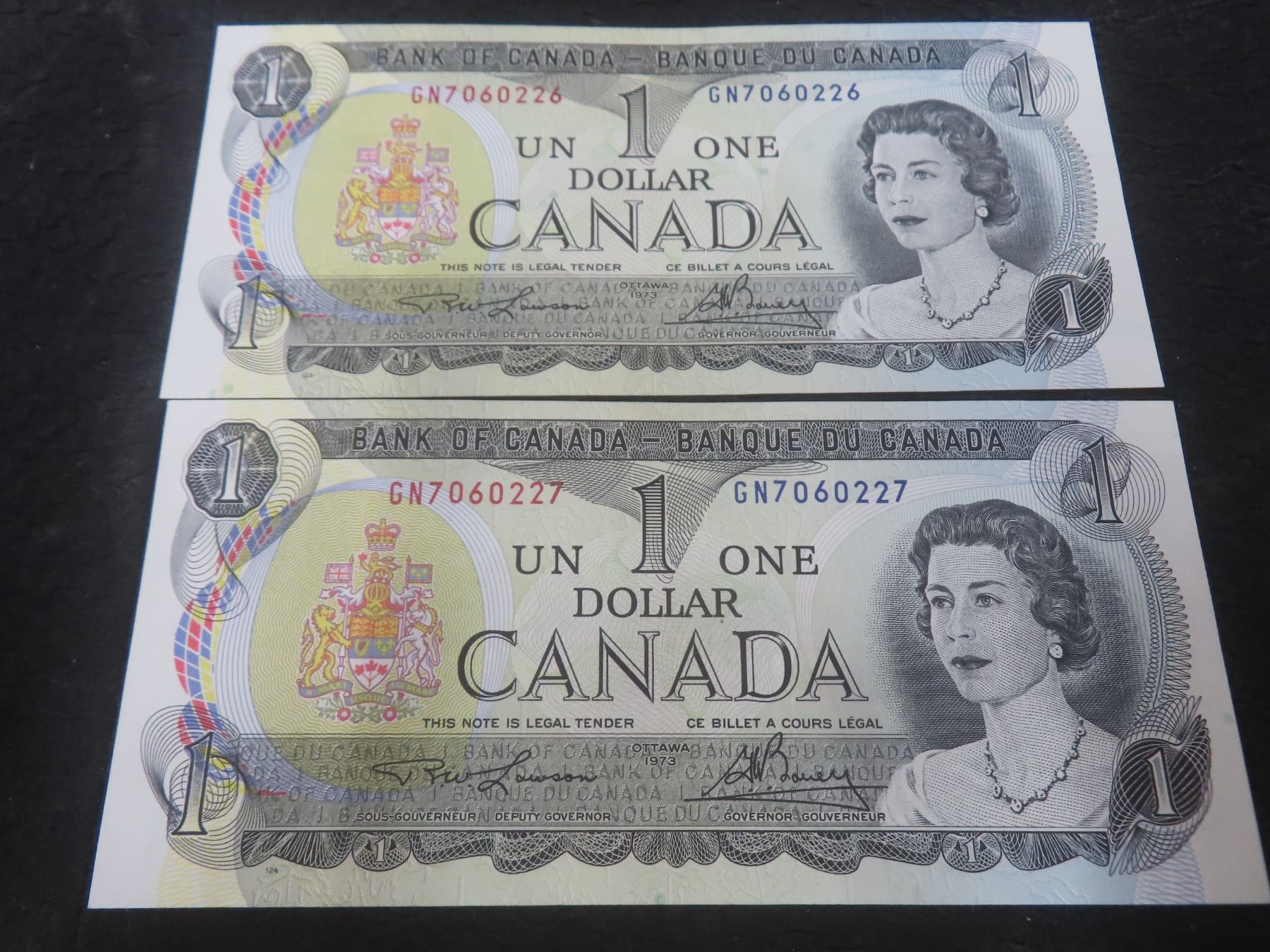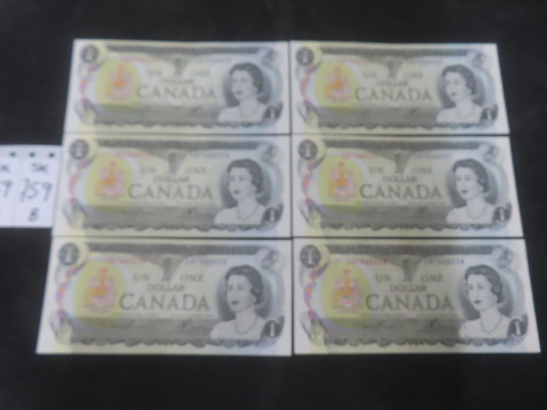 Six Uncirculated 1973 $1 Bills with Consecutive Serial No.