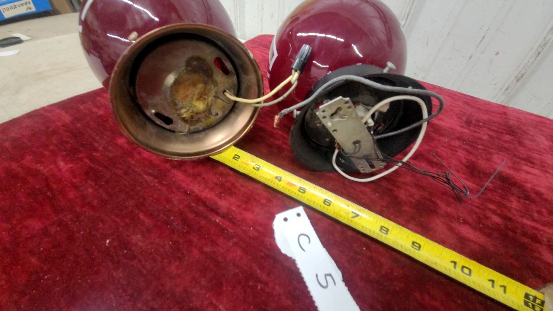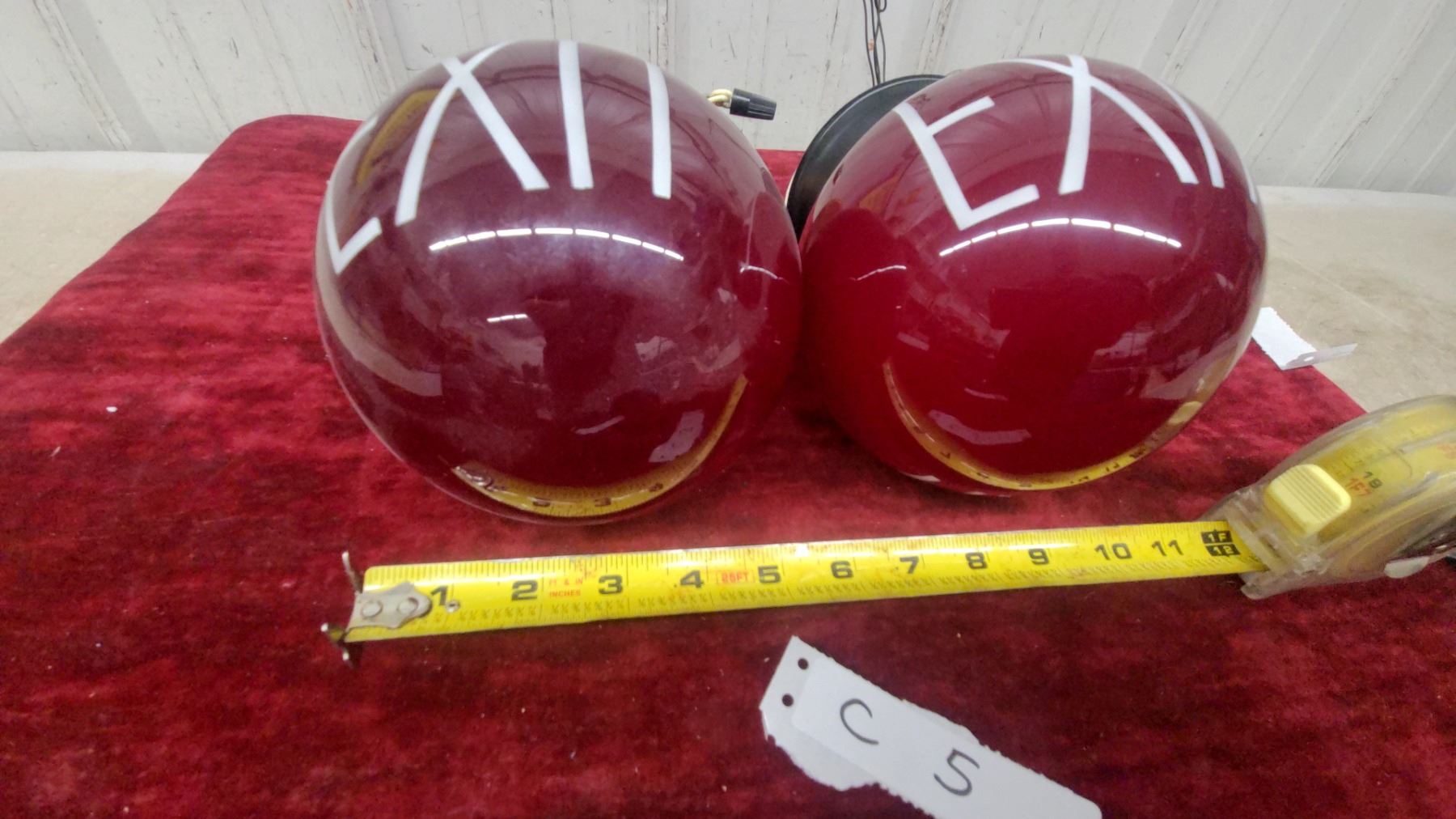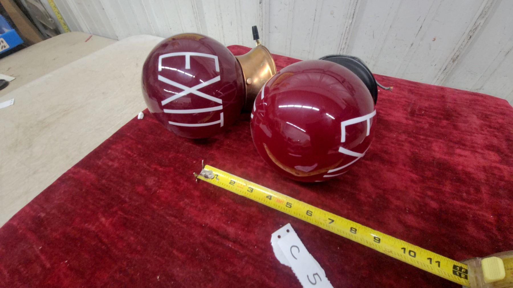 Lot 5 Pair of Vintage Ruby Red Glass Globe EXIT Sign Lights with Metal Fittings, Approx 6" Diameter