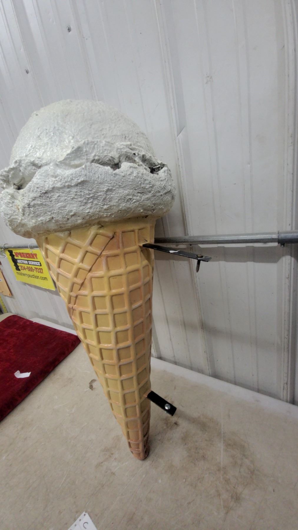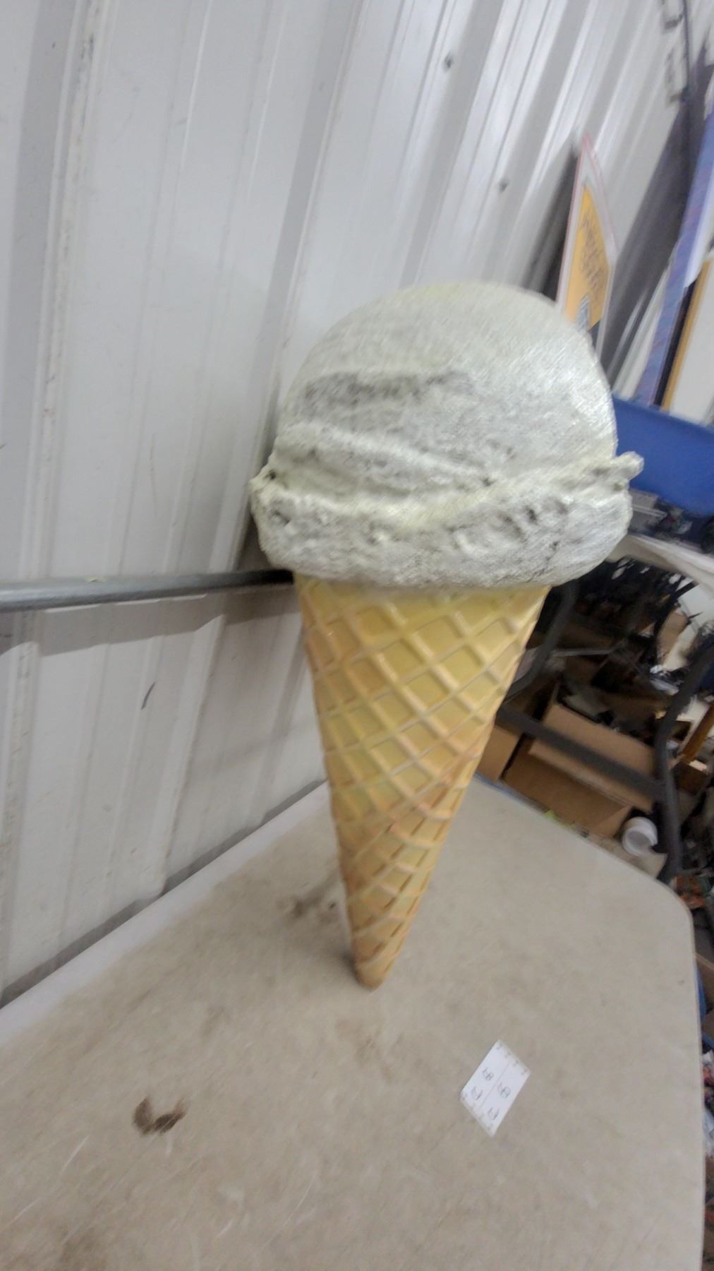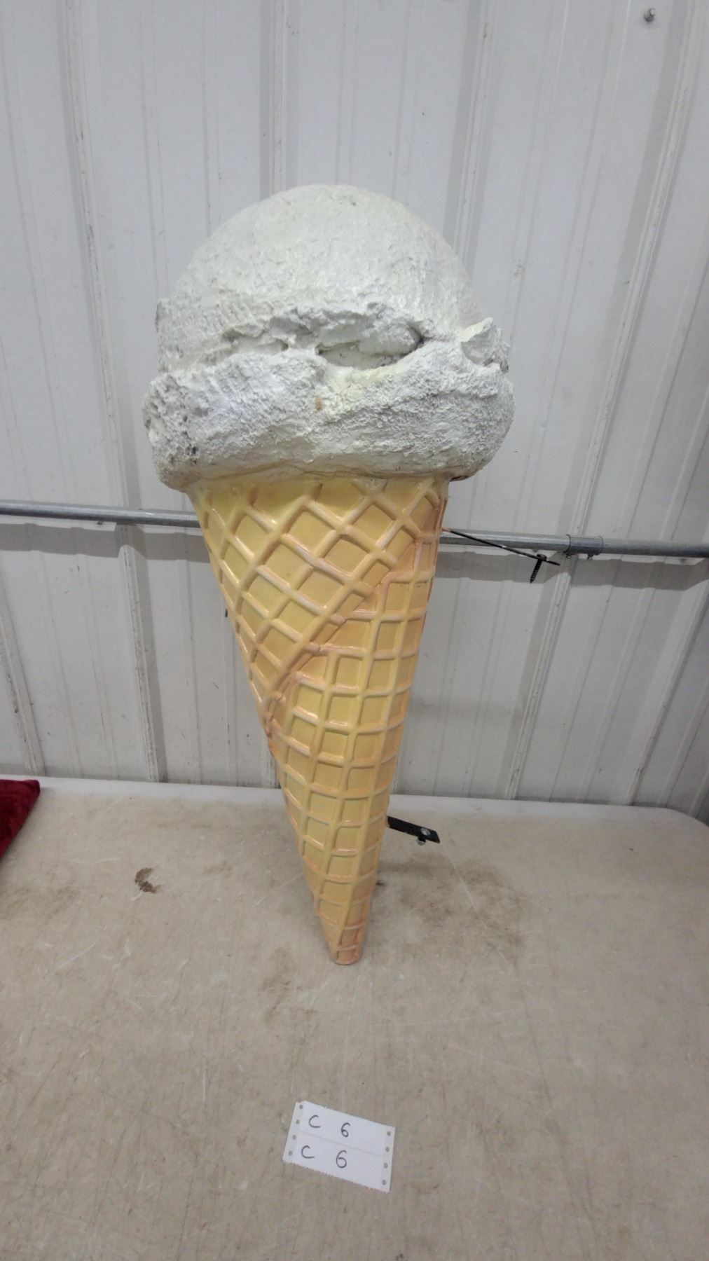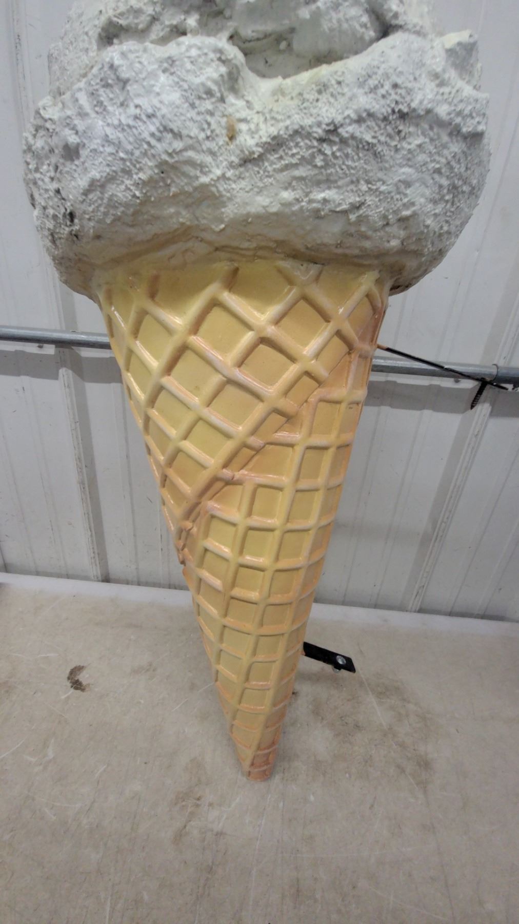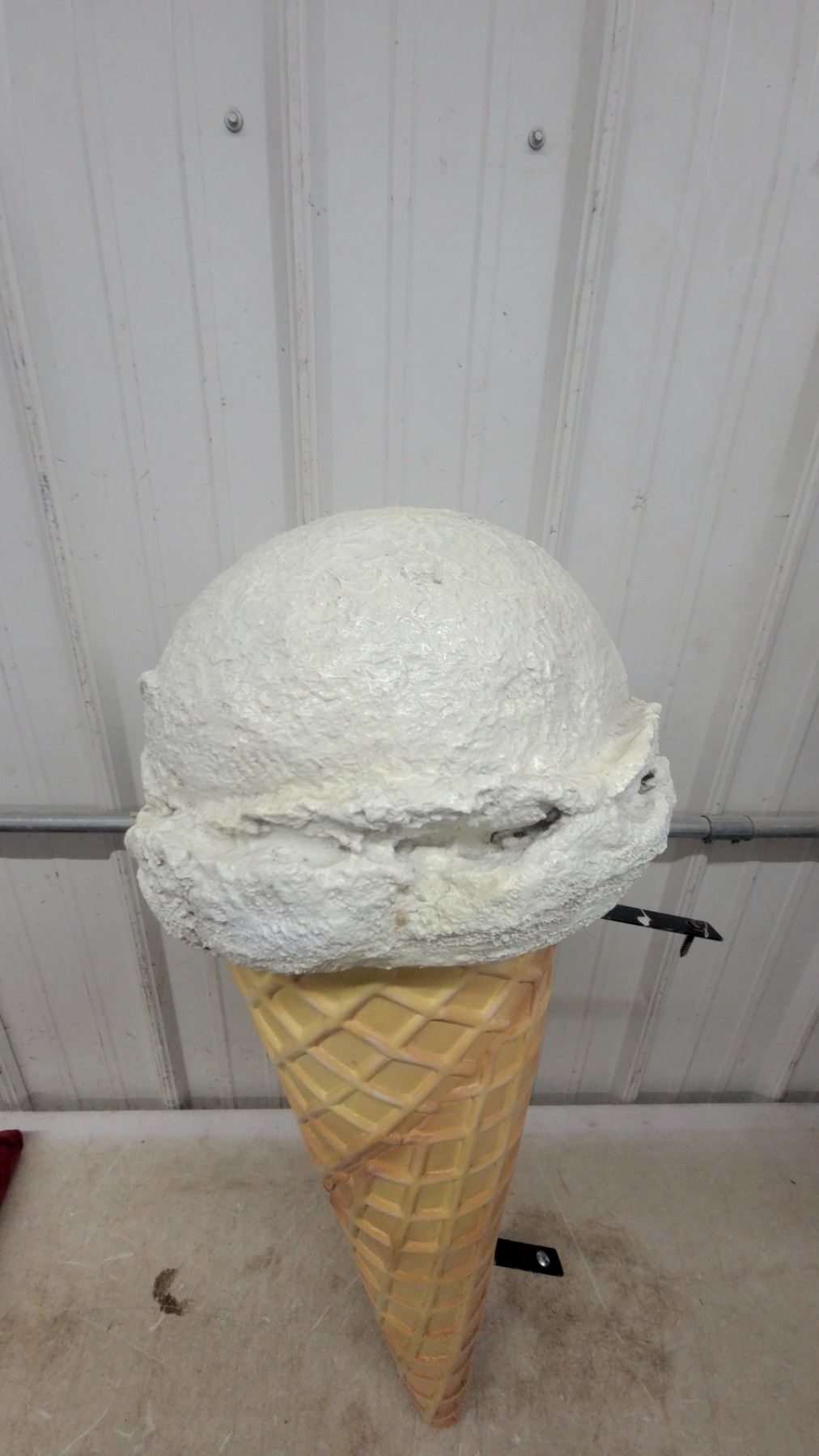 Lot 6 Large Fiberglass Ice Cream Cone Display Sign with Vanilla Scoop, Wall-Mount Bracket Flange Style
