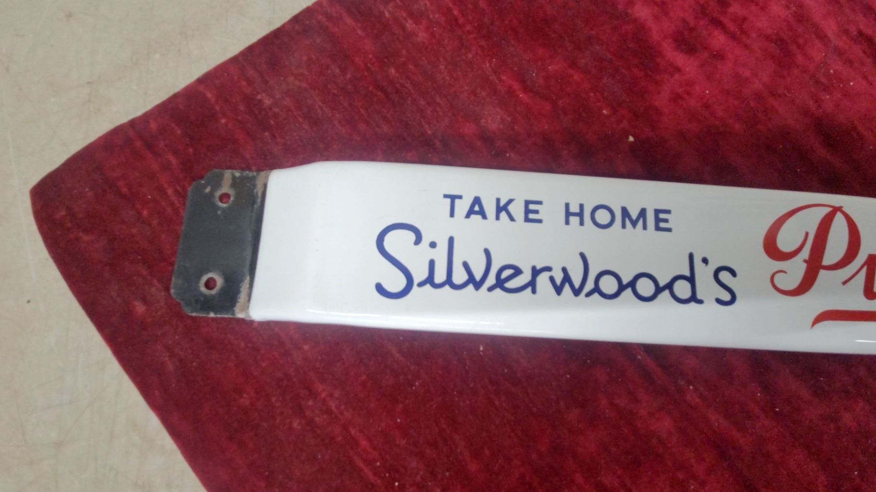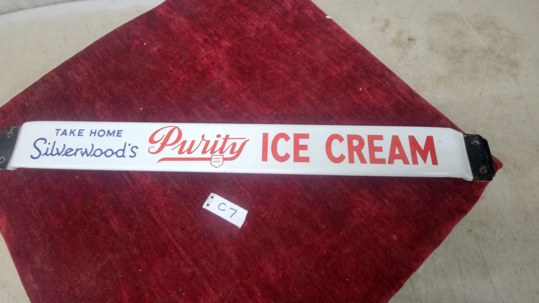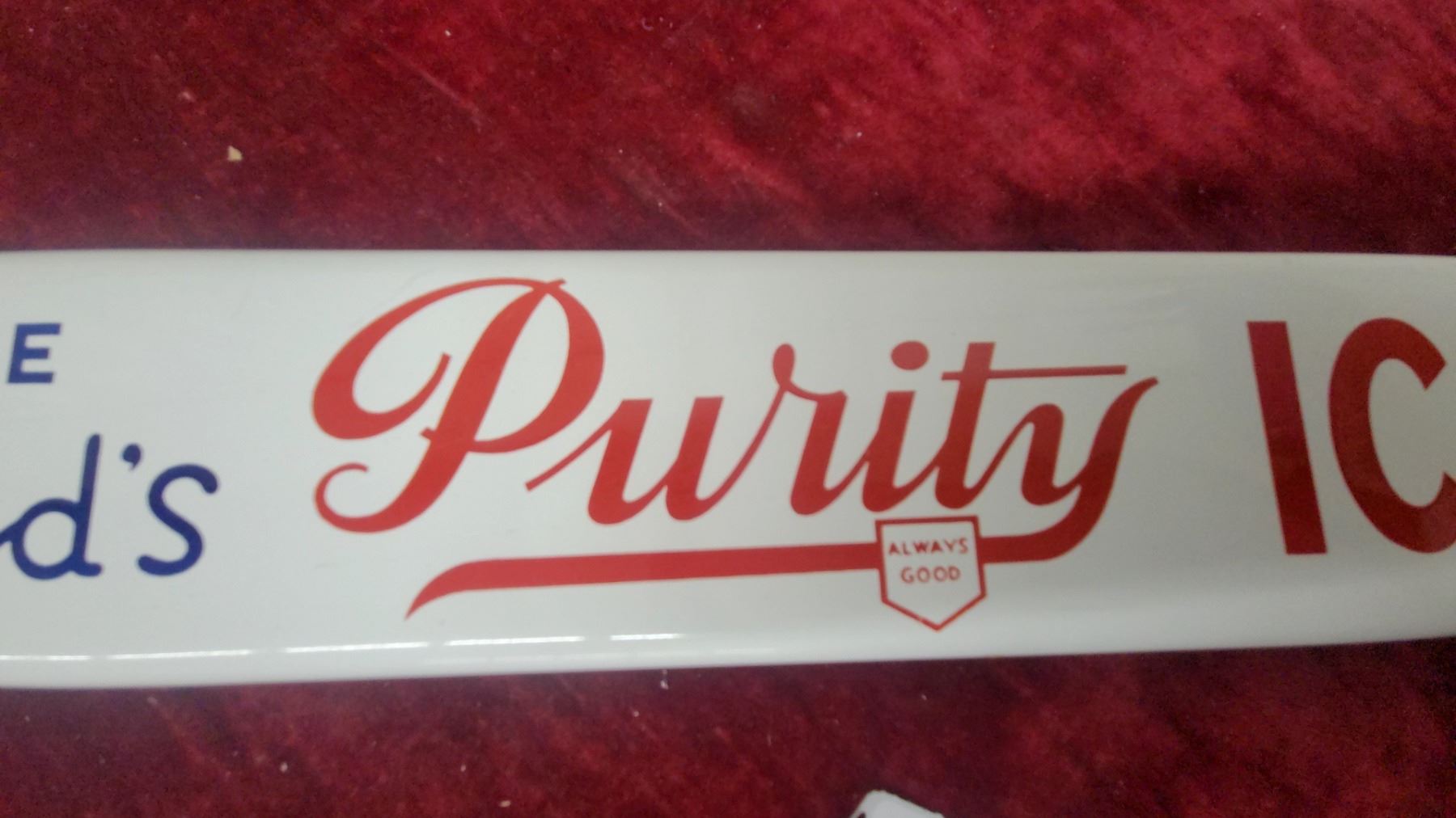 Lot 7 Silverwood's Purity Ice Cream Porcelain Door Bar 3 x 32" Vintage