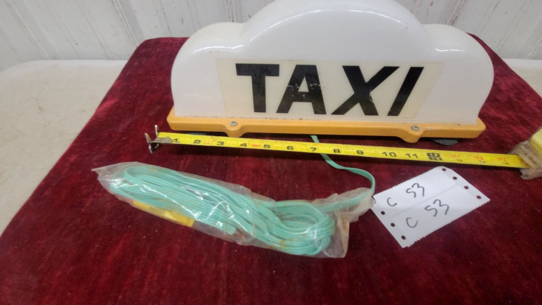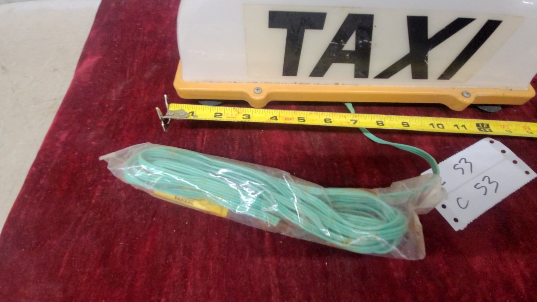 Lot 53 Taxi Roof Light Sign with Yellow Base and Green Wiring Cable, Approx 12" Length