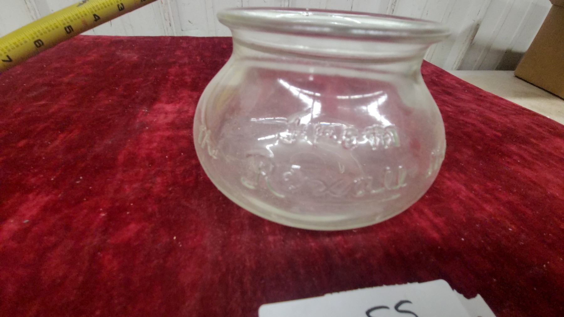 Lot 55 Rexall Counter Glass candyJar, Round Globe Style, Embossed Logo, Approx 6" Diameter Vintage