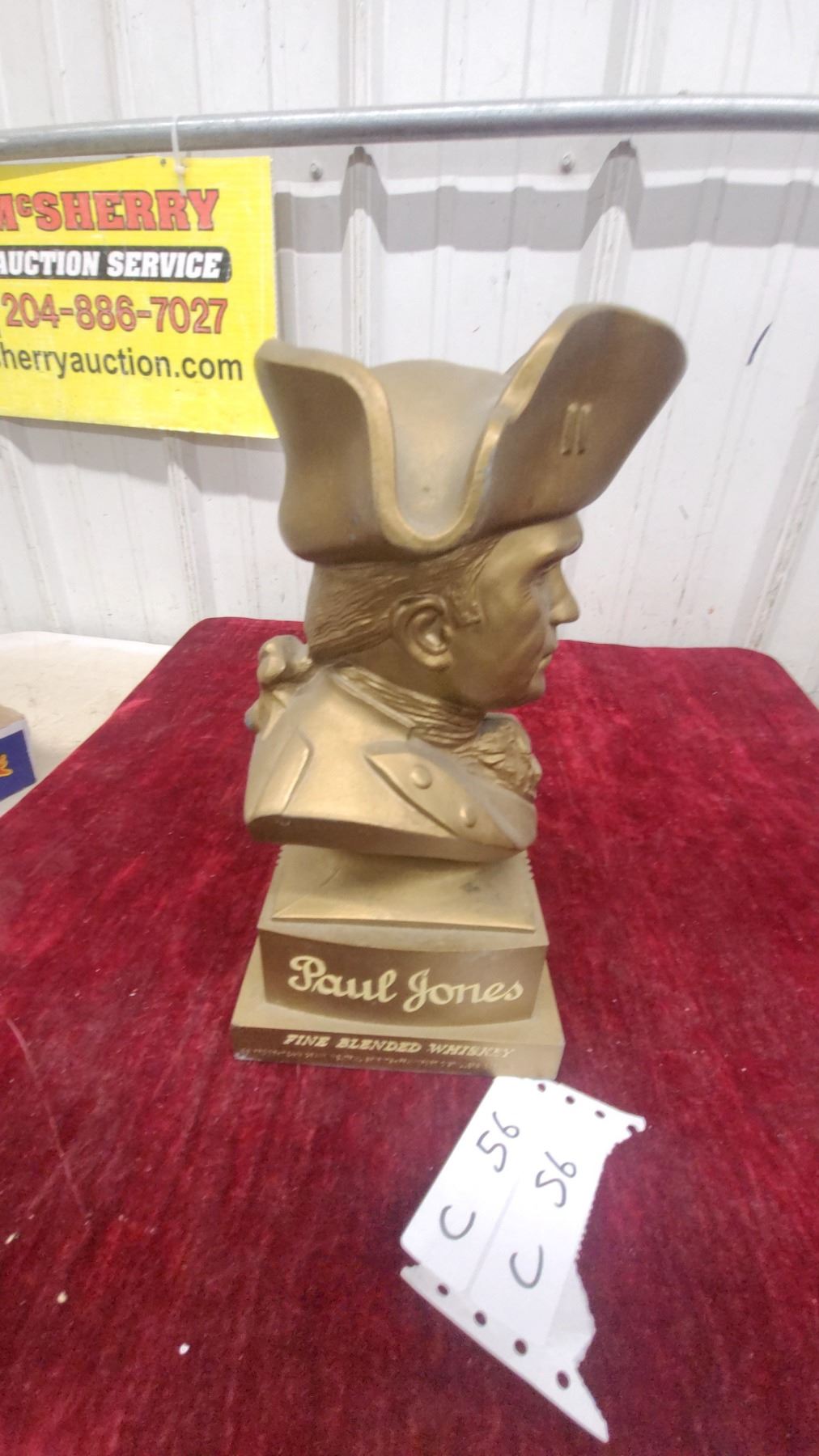 Lot 56 Paul Jones Fine Blended Whiskey Advertising Bust Display Figure Metal Sculpture Vintage 11" Tall