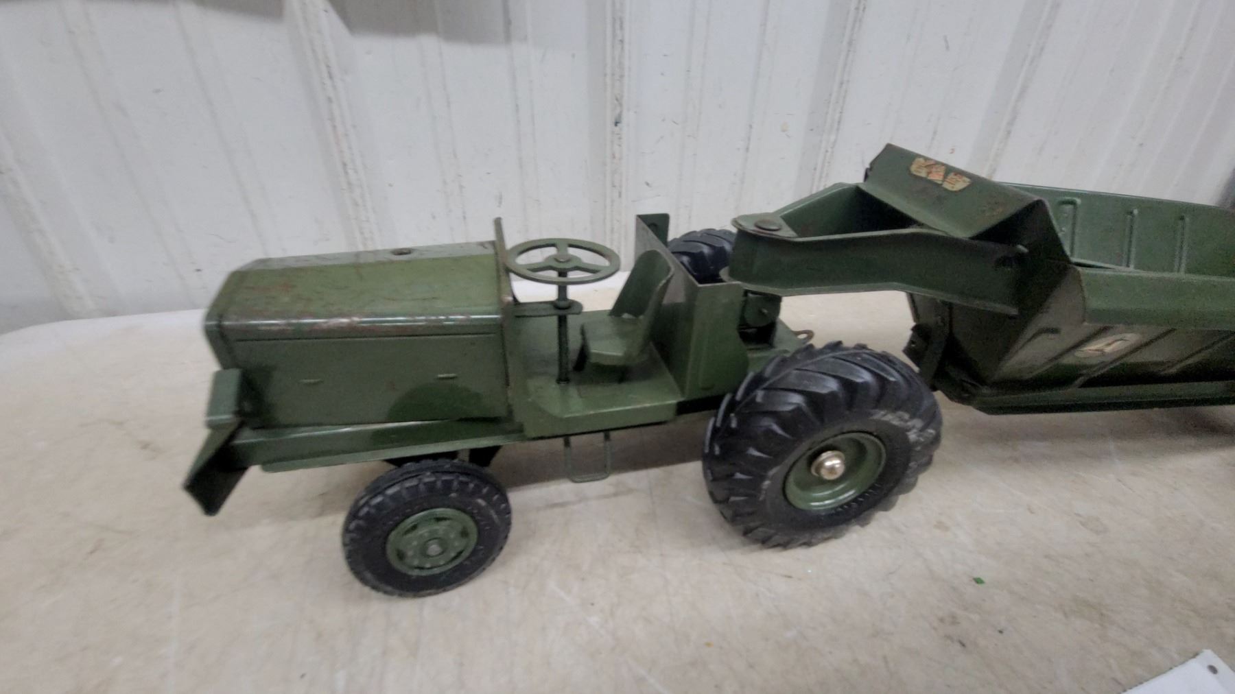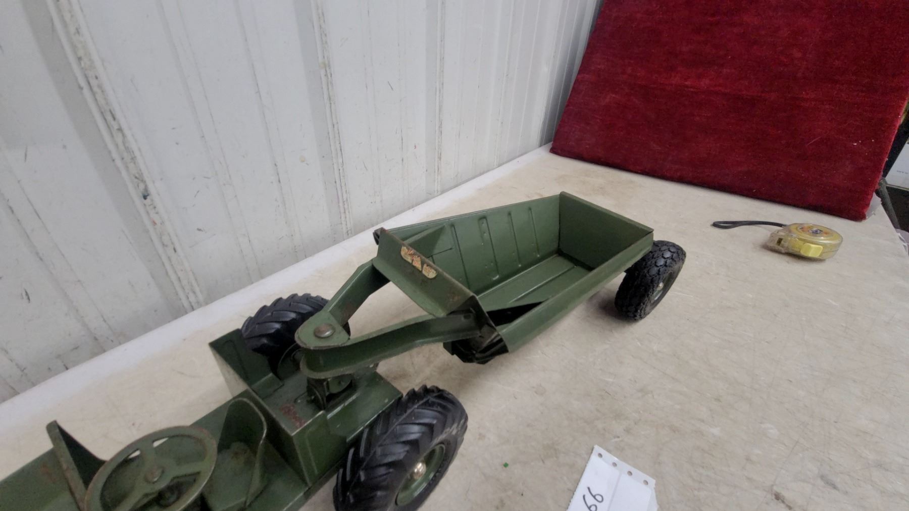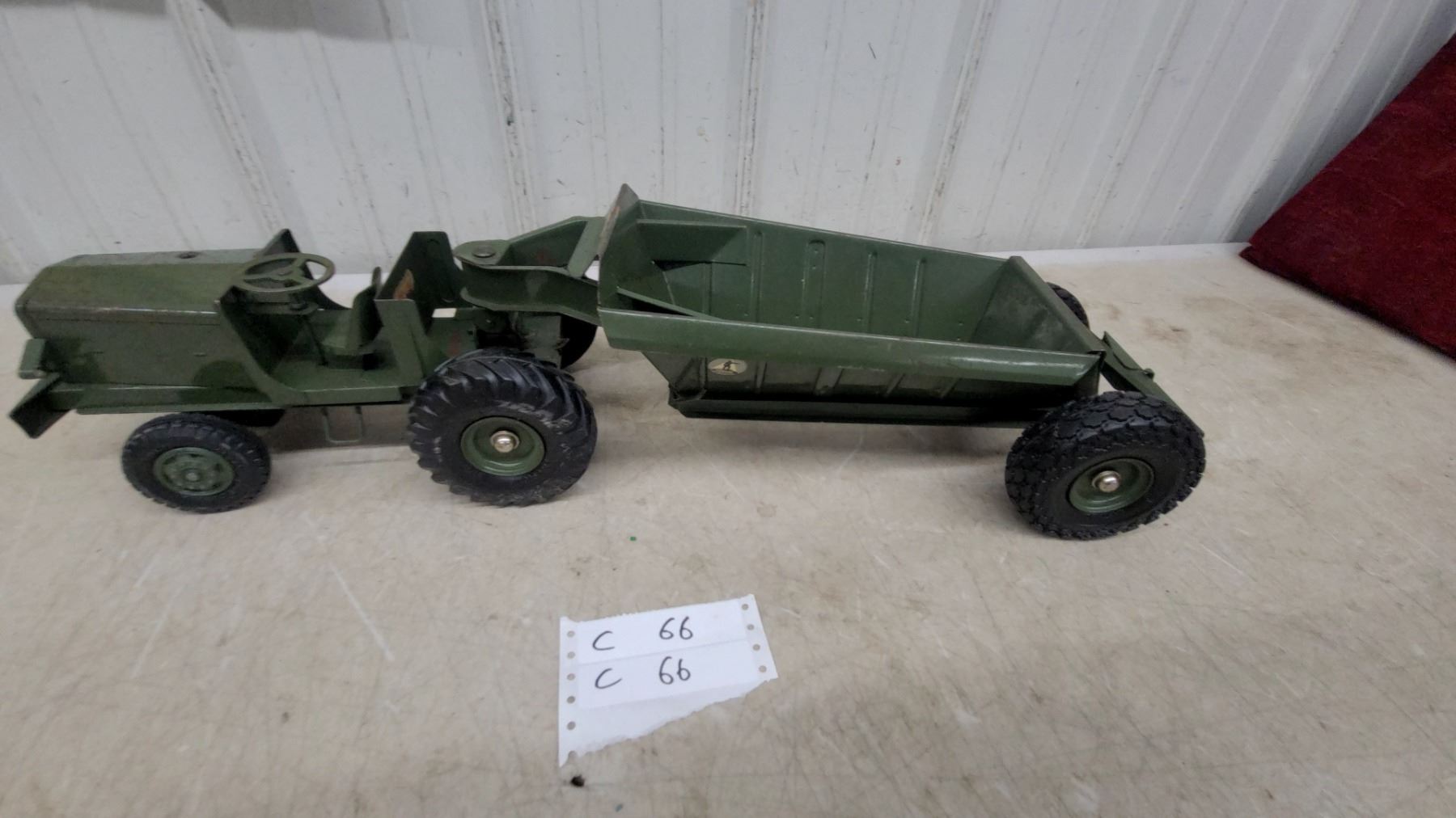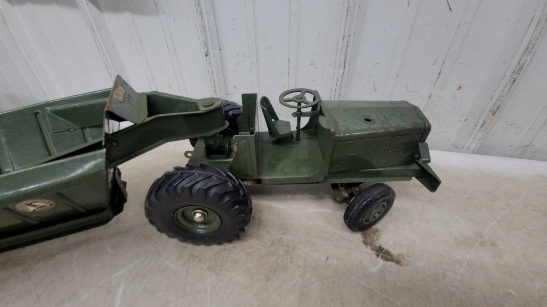 Lot 66 Vintage Modle Toy Pressed Metal Olive Green Scraper, Rubber Tires 27"