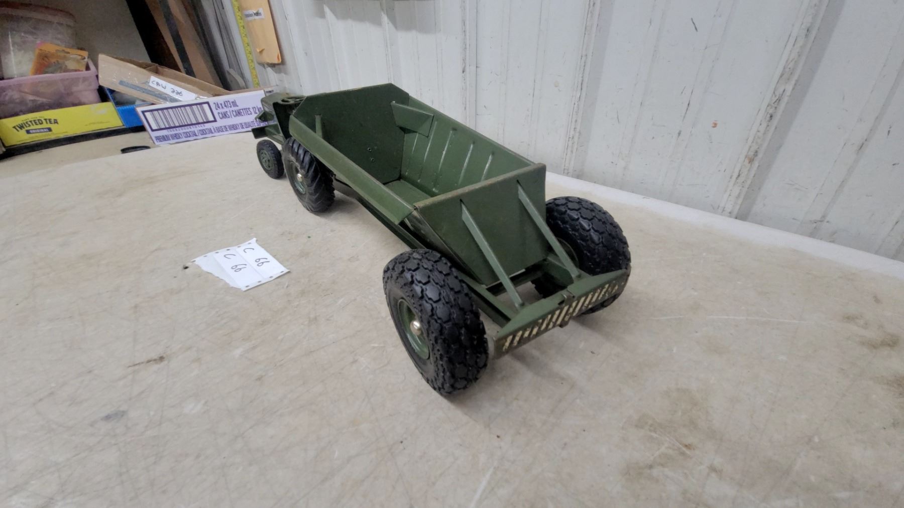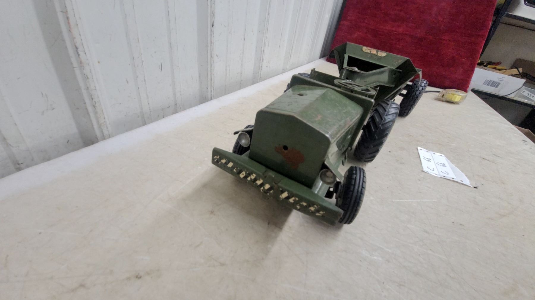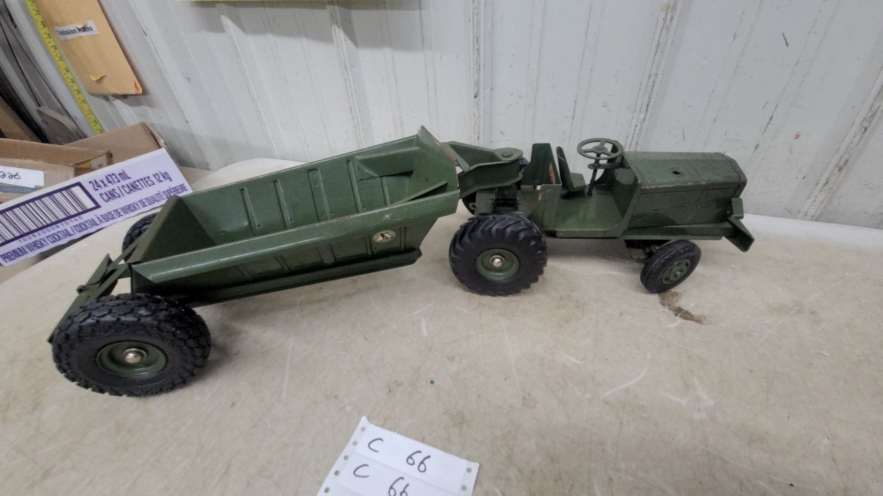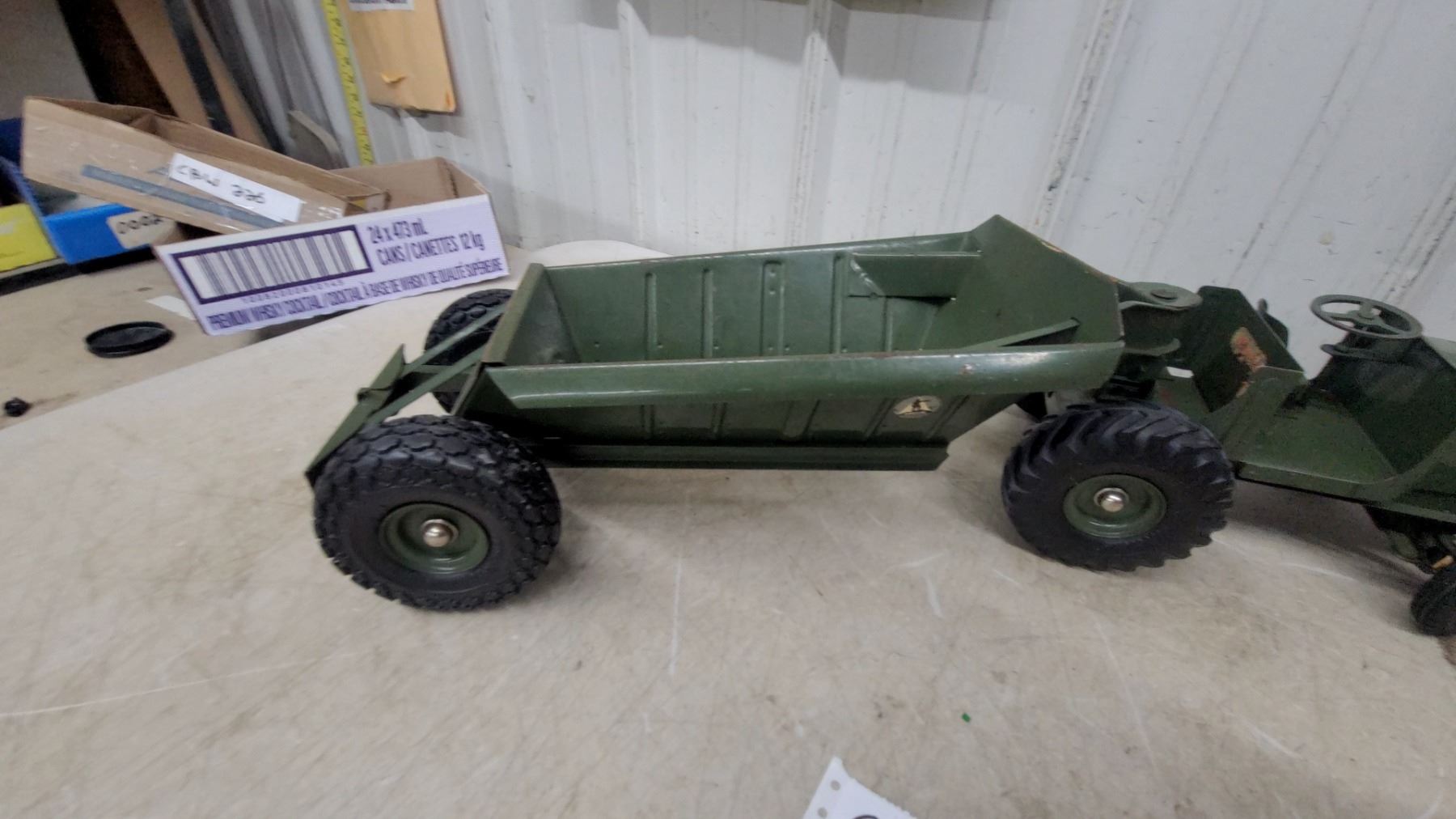 Lot 66 Vintage Modle Toy Pressed Metal Olive Green Scraper, Rubber Tires 27"
