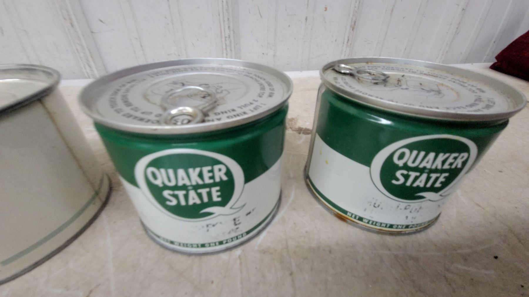 Roco Grease Tin and Two Quaker State Superfine Lubricant Tins, Vintage Automotive Grease Cans 1lb