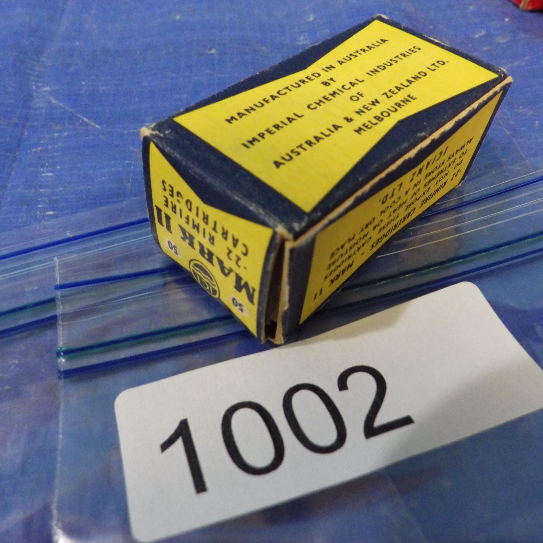 Lot 1002 COLLECTOR BOX OF .22 AMMO -- count and contents not confirmed.