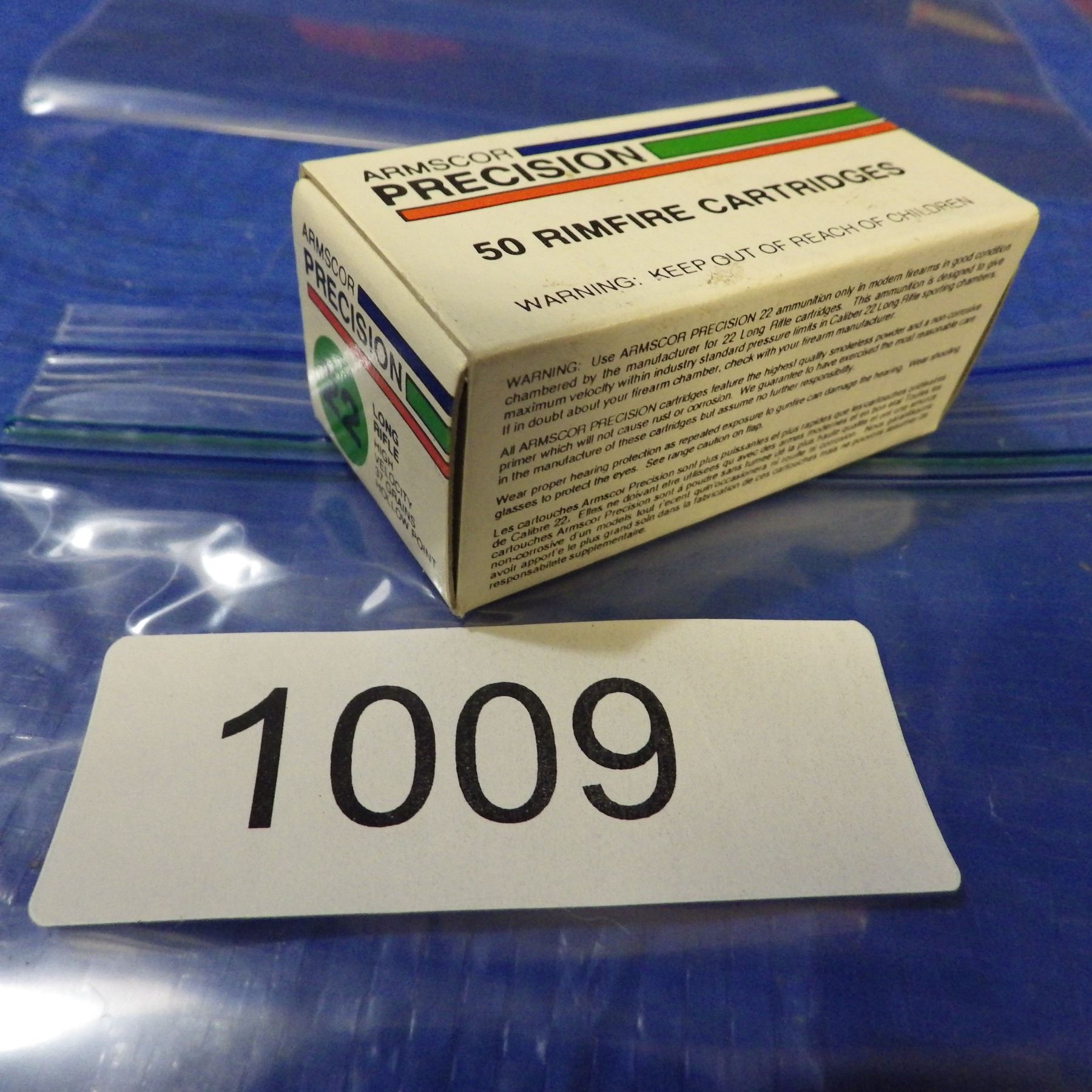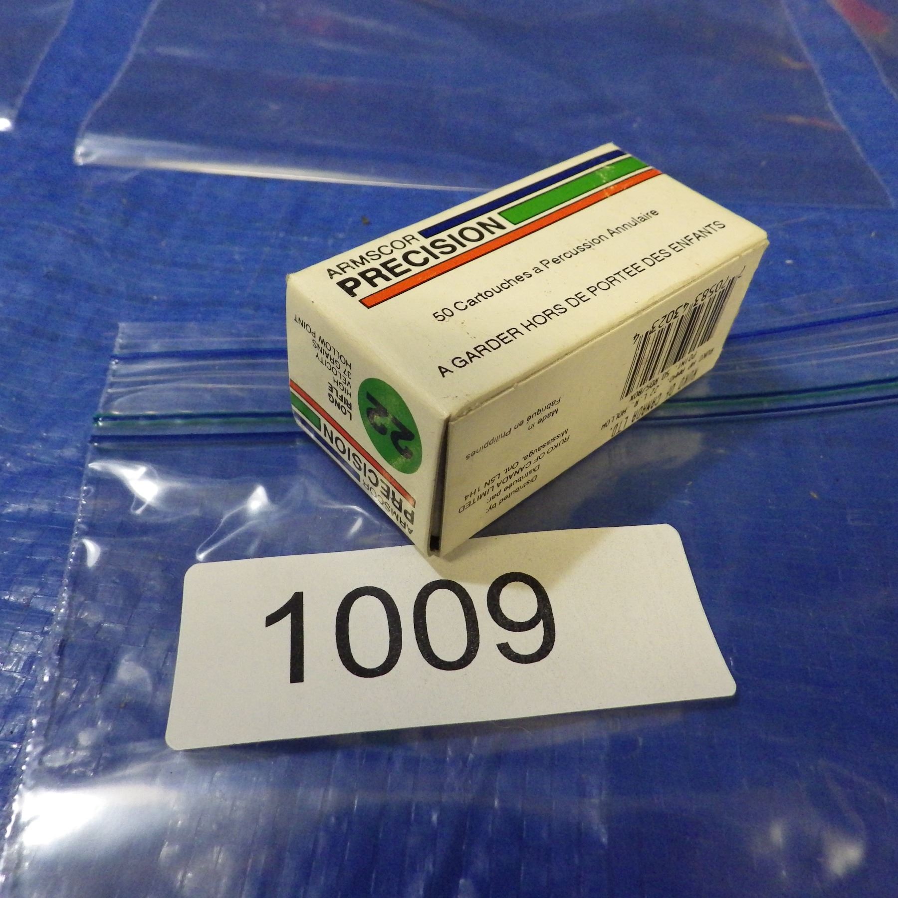 Lot 1009 COLLECTOR BOX OF .22 AMMO -- count and contents not confirmed.