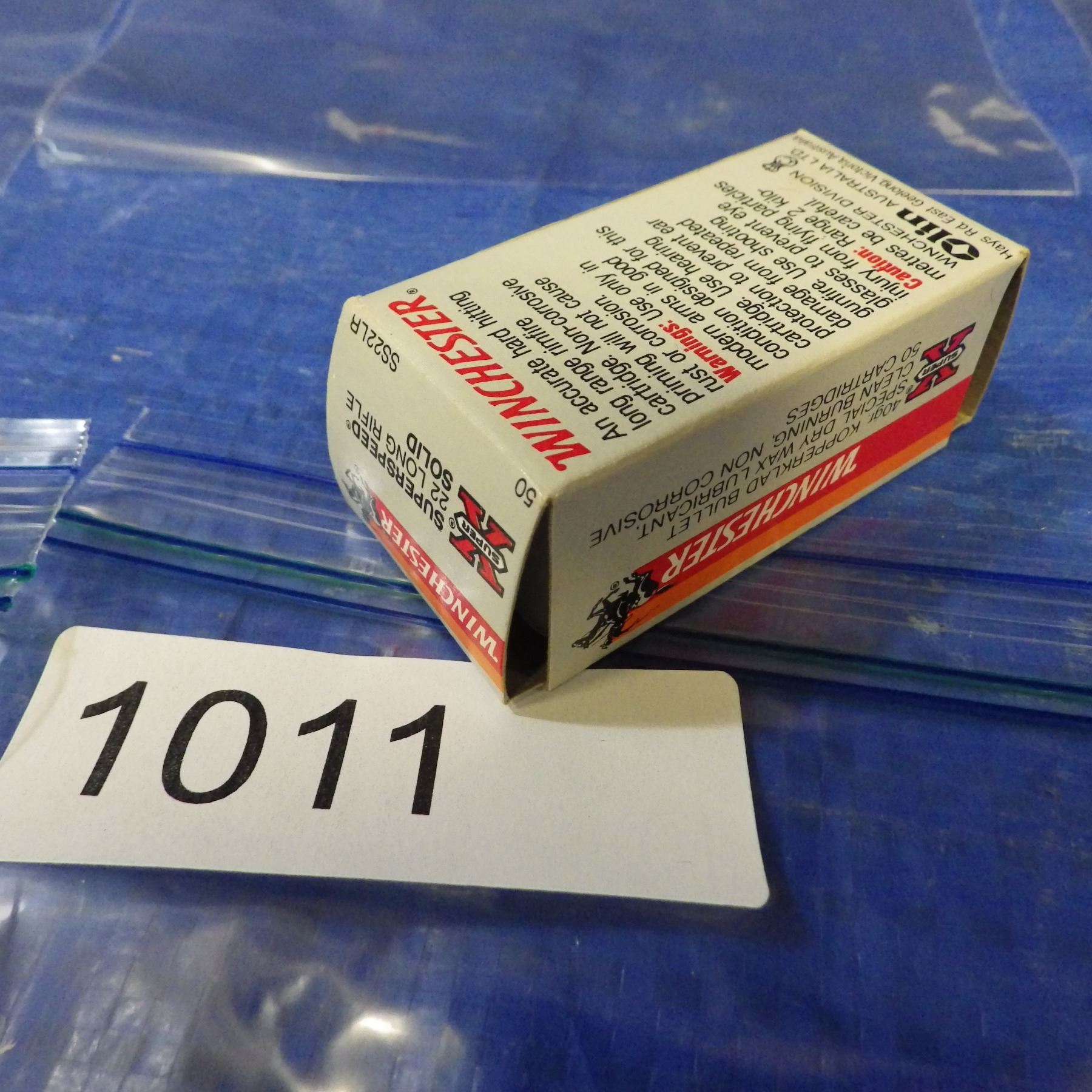 NOTE: THIS .22 AMMO IS FROM AN GENTLEMAN'S ESTATE THAT HE COLLECTED OVER MANY YEARS. HIS SON TOLD US THAT THERE ARE MULTIPULE BOXES OF MANY BRANDS WHERE THERE IS A SLIGHT DIFFERANCE IN THE MARKING ON THE BOXES OR SOMETHING UNIQUE THAT MAKES EACH BOX A LITTLE DIFFERANT FROM THE OTHERS. COLLECTOR BOX OF .22 AMMO - appears to be full -- we did not open each box to confirm counts or that the brand that is on the box matches the contents. Some boxes wrapped in cellophane - did not unwrap - does give some flash back in the photos - ALL SOLD AS IS WITH NO GUARANTEE ON CONTENTS.