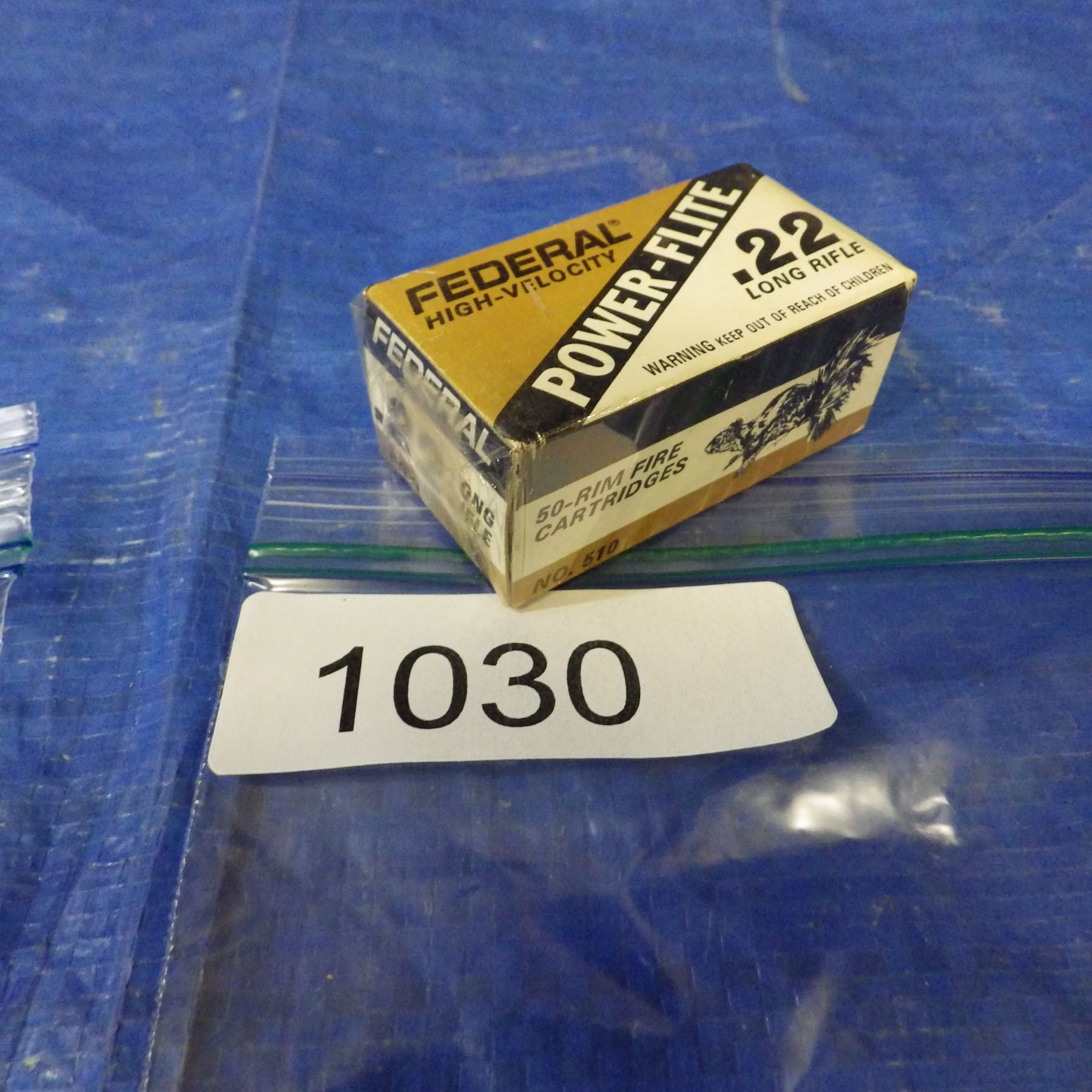 Lot 1030 COLLECTOR BOX OF .22 AMMO -- count and contents not confirmed.